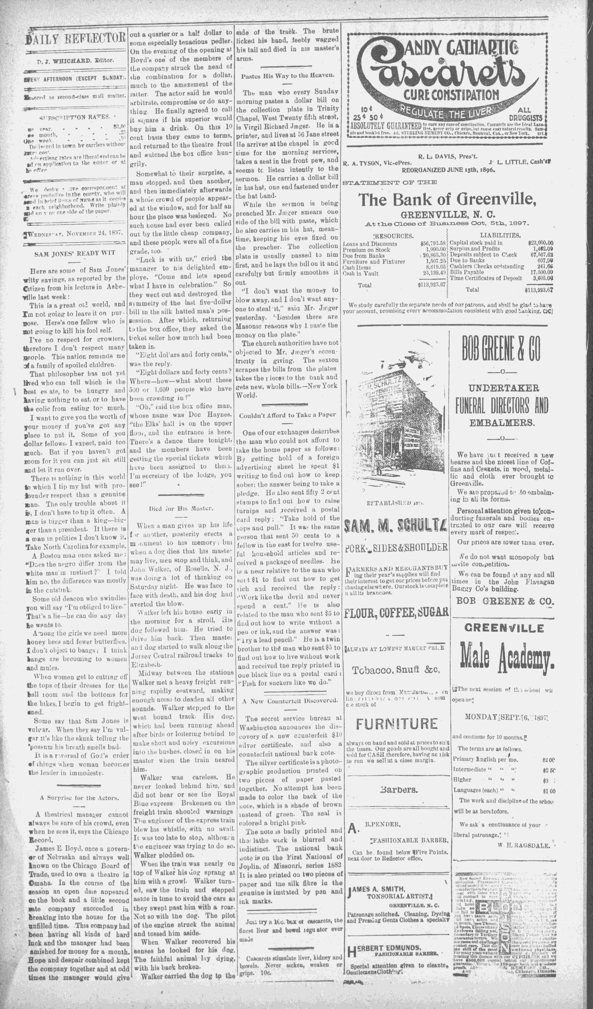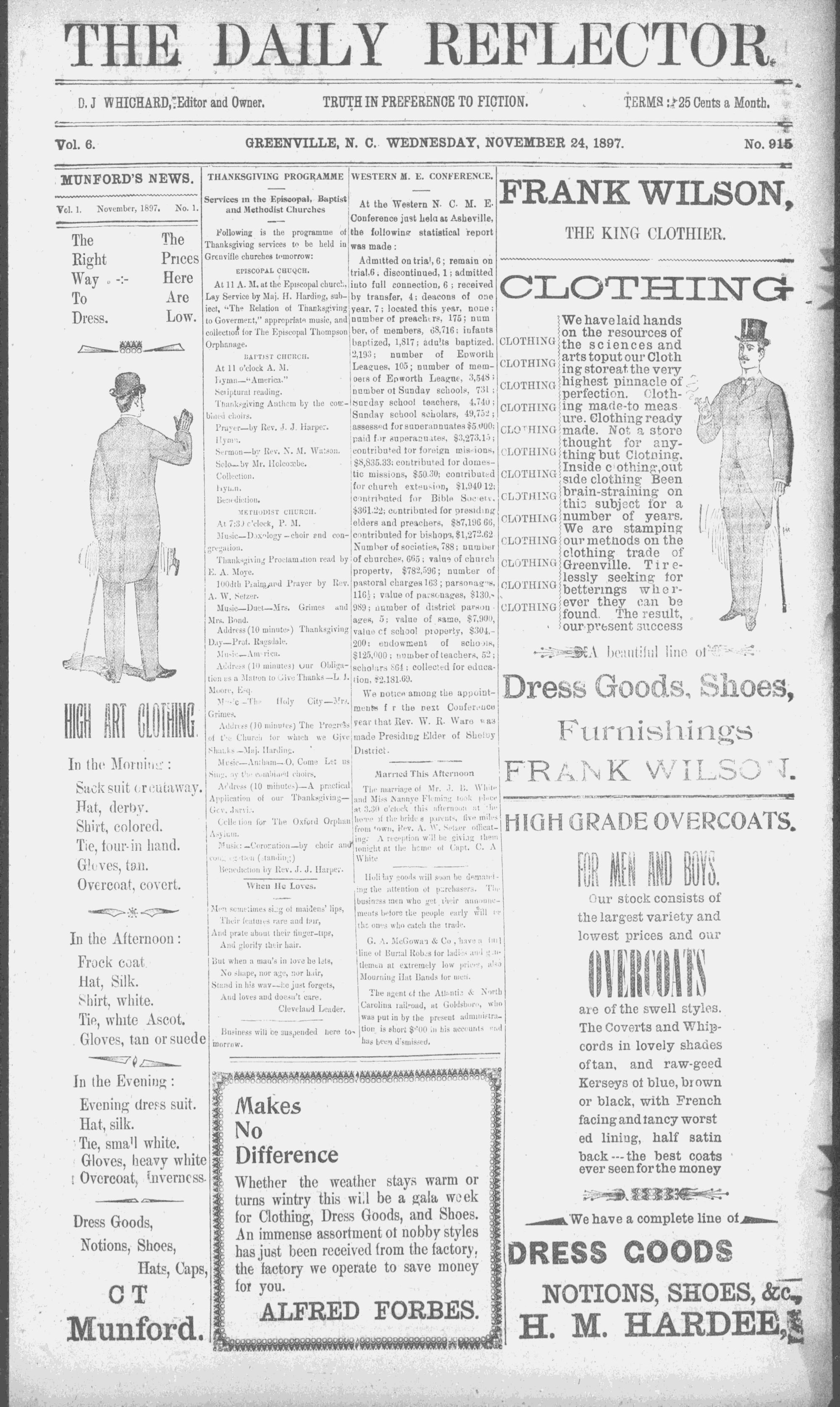 GREENVILLE, N. C.. WEDNESDAY, NOVEMBER 24, 1897.