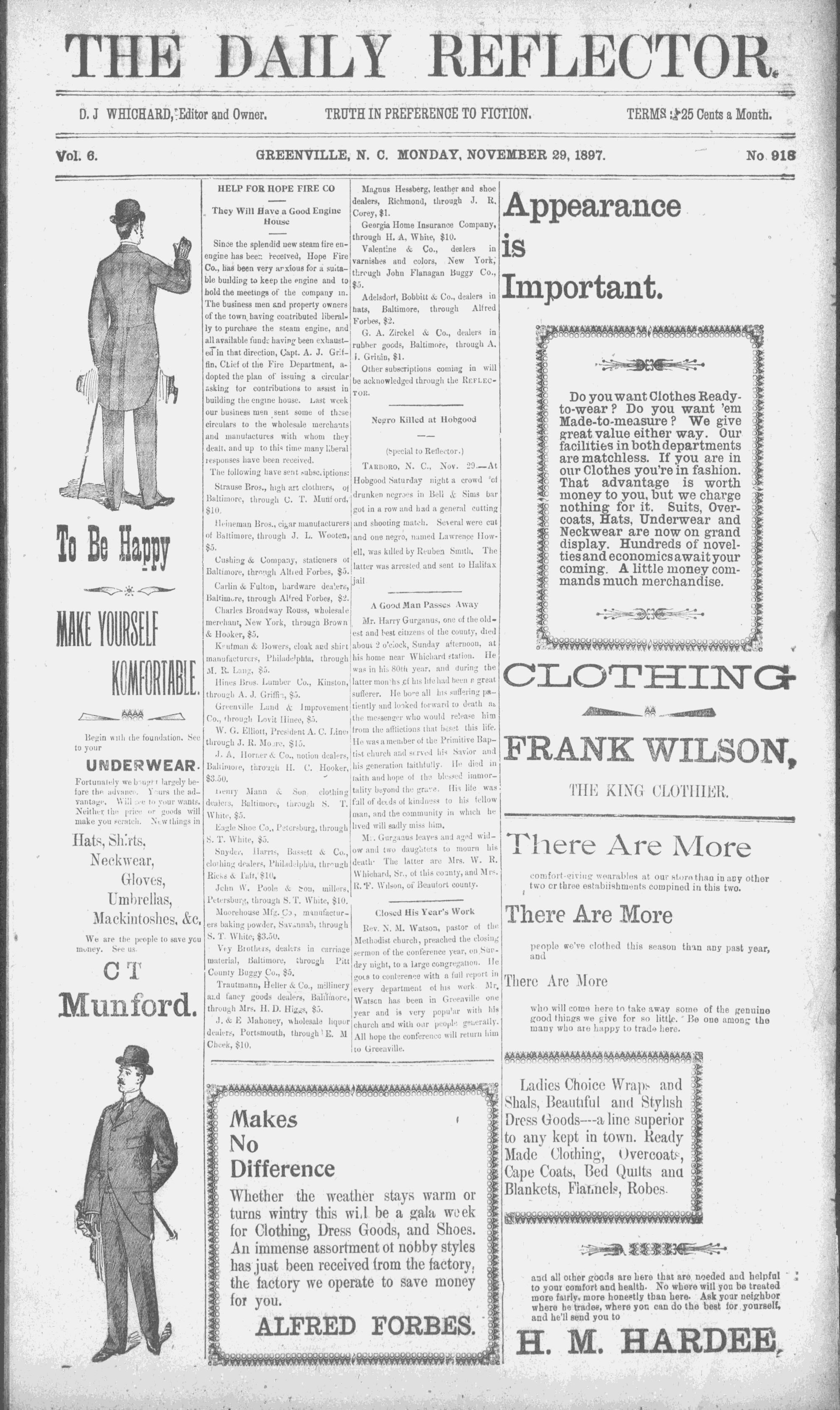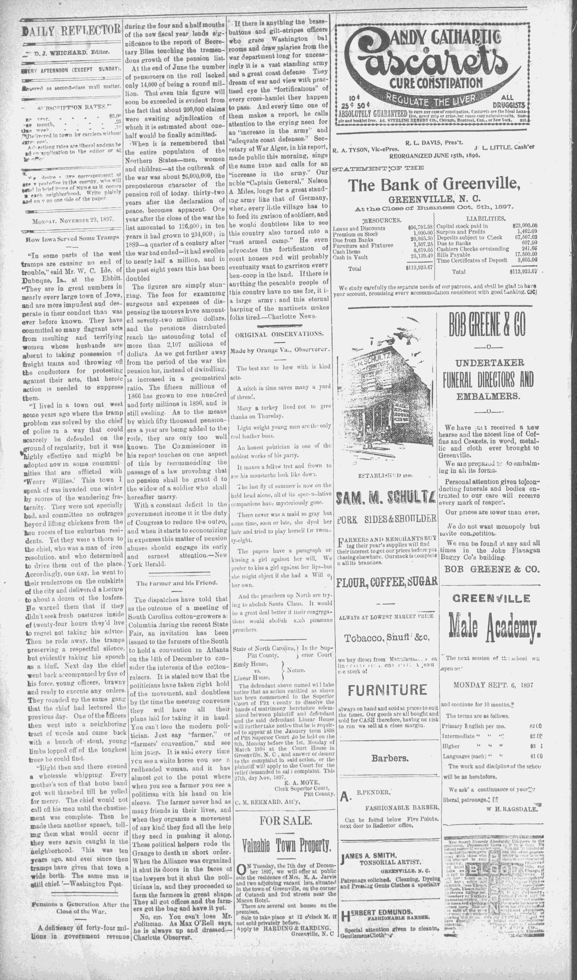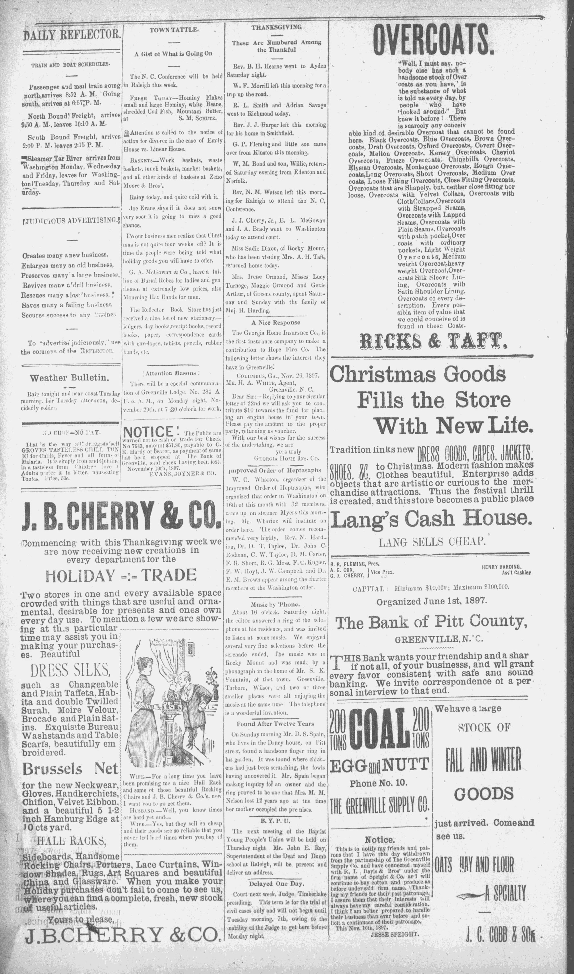 GREENVILLE, N. C. MONDAY, NOVEMBER 29, 1897. -