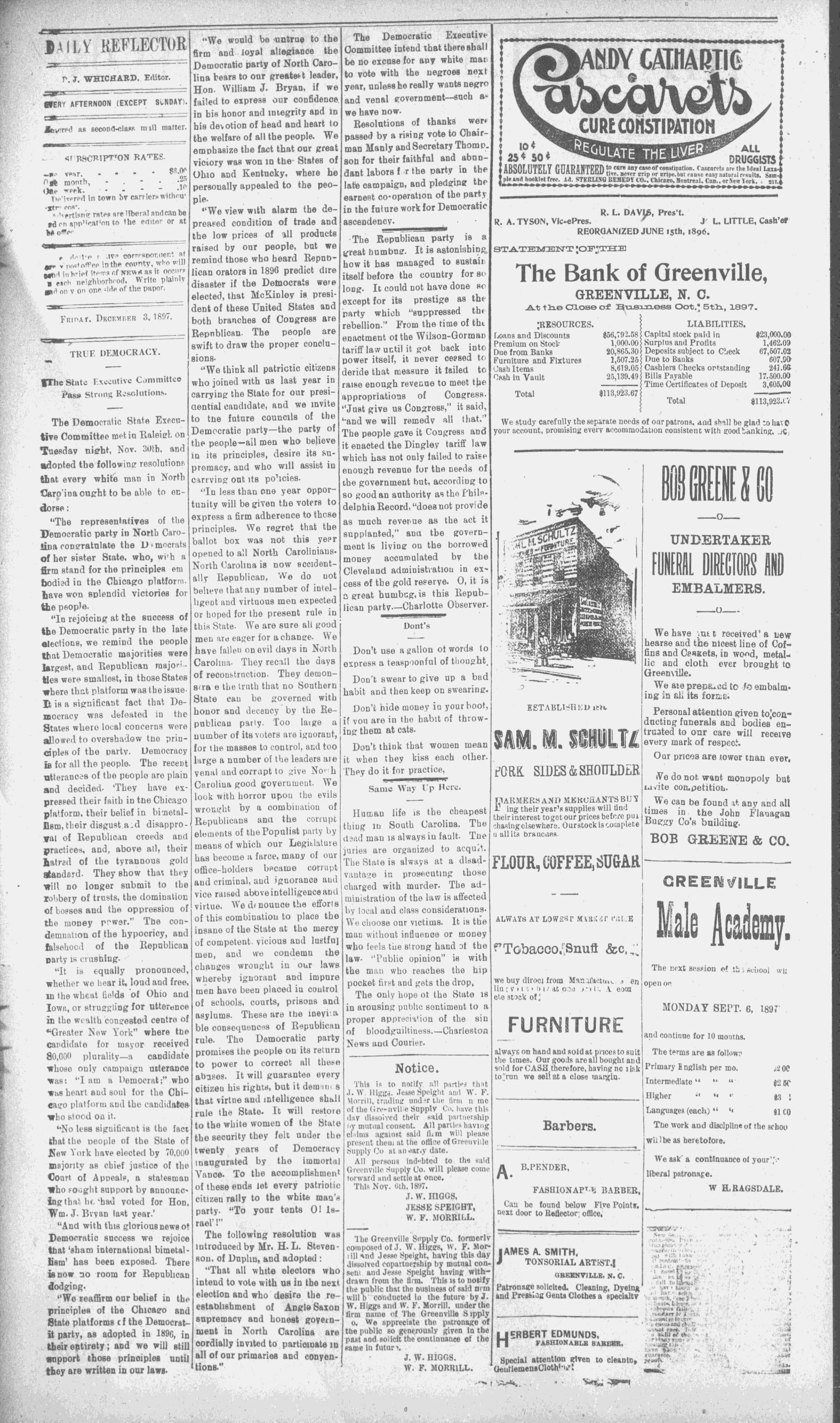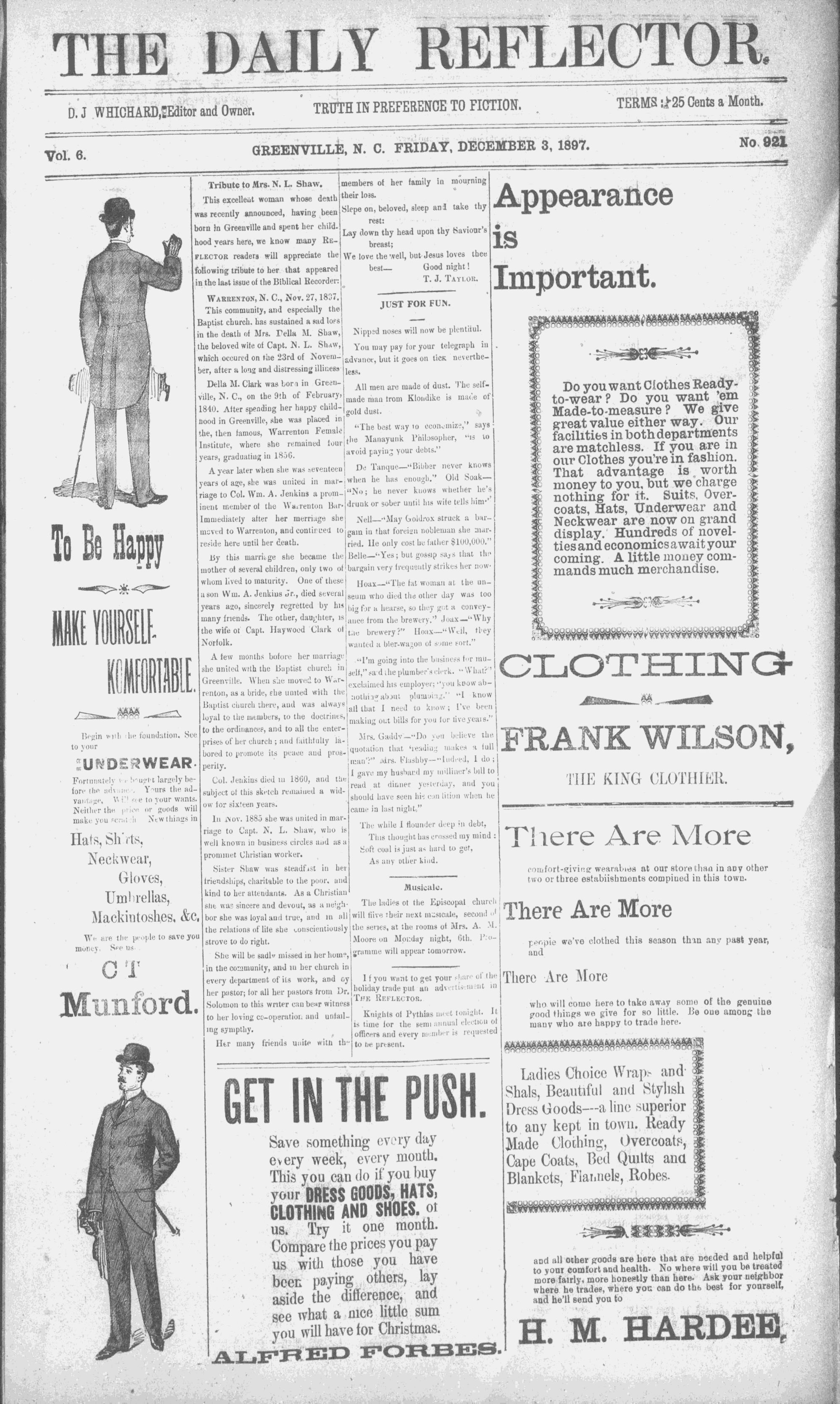 Vol. 6. GREENVILLE, N. C. FRIDAY, DECEMBER 3, 1897. No. 921