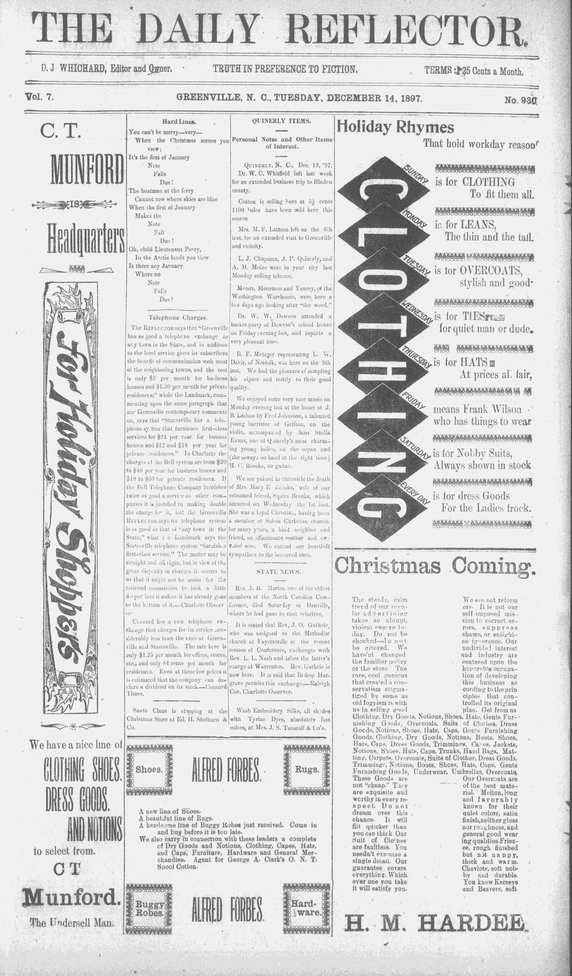 GREENVILLE, N. C., TUESDAY, DECEMBER 14, 1897.