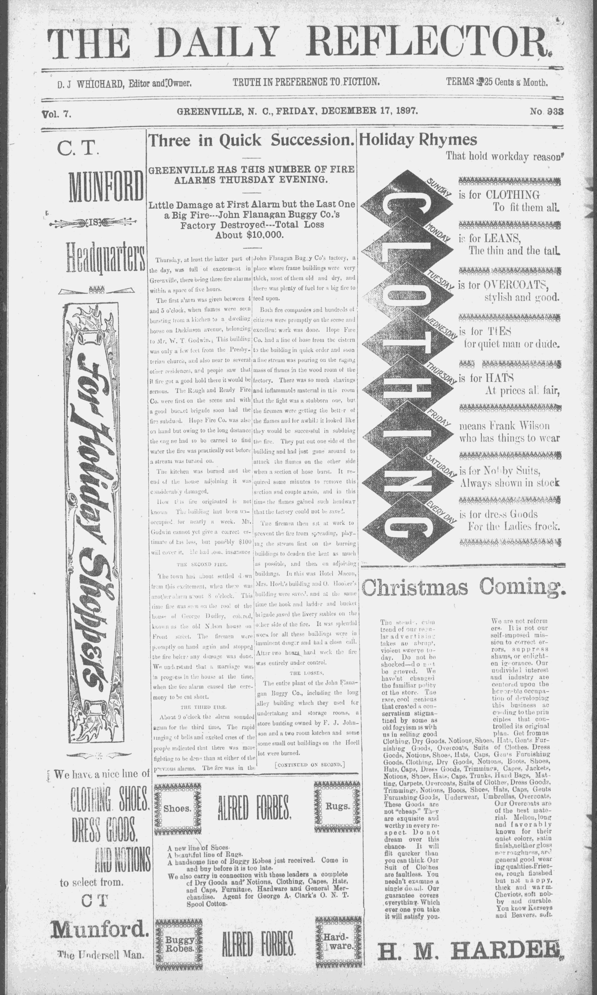 | Vol. 7. GREENVILLE, N. C., FRIDAY, DECEMBER 17, 1897. No. 238