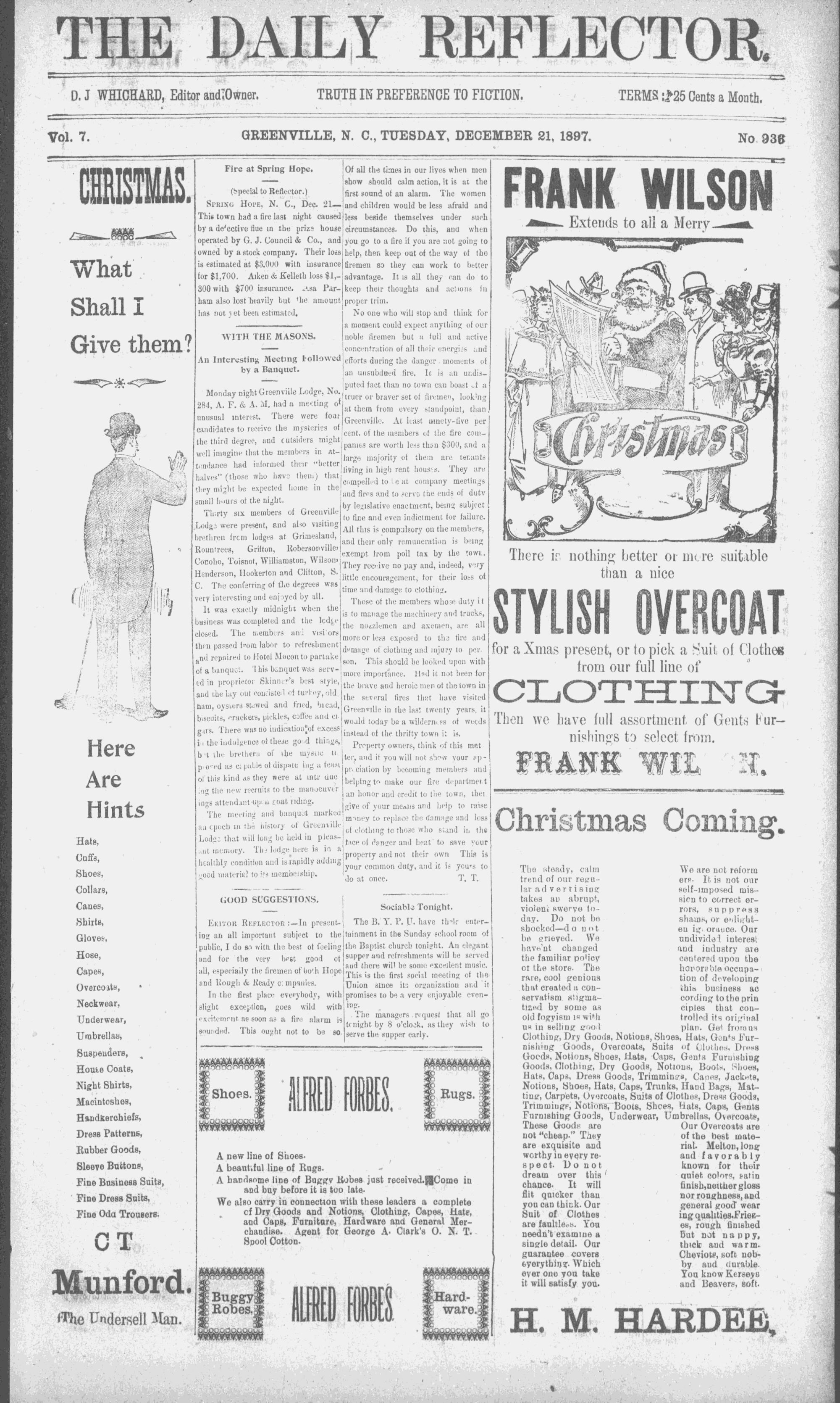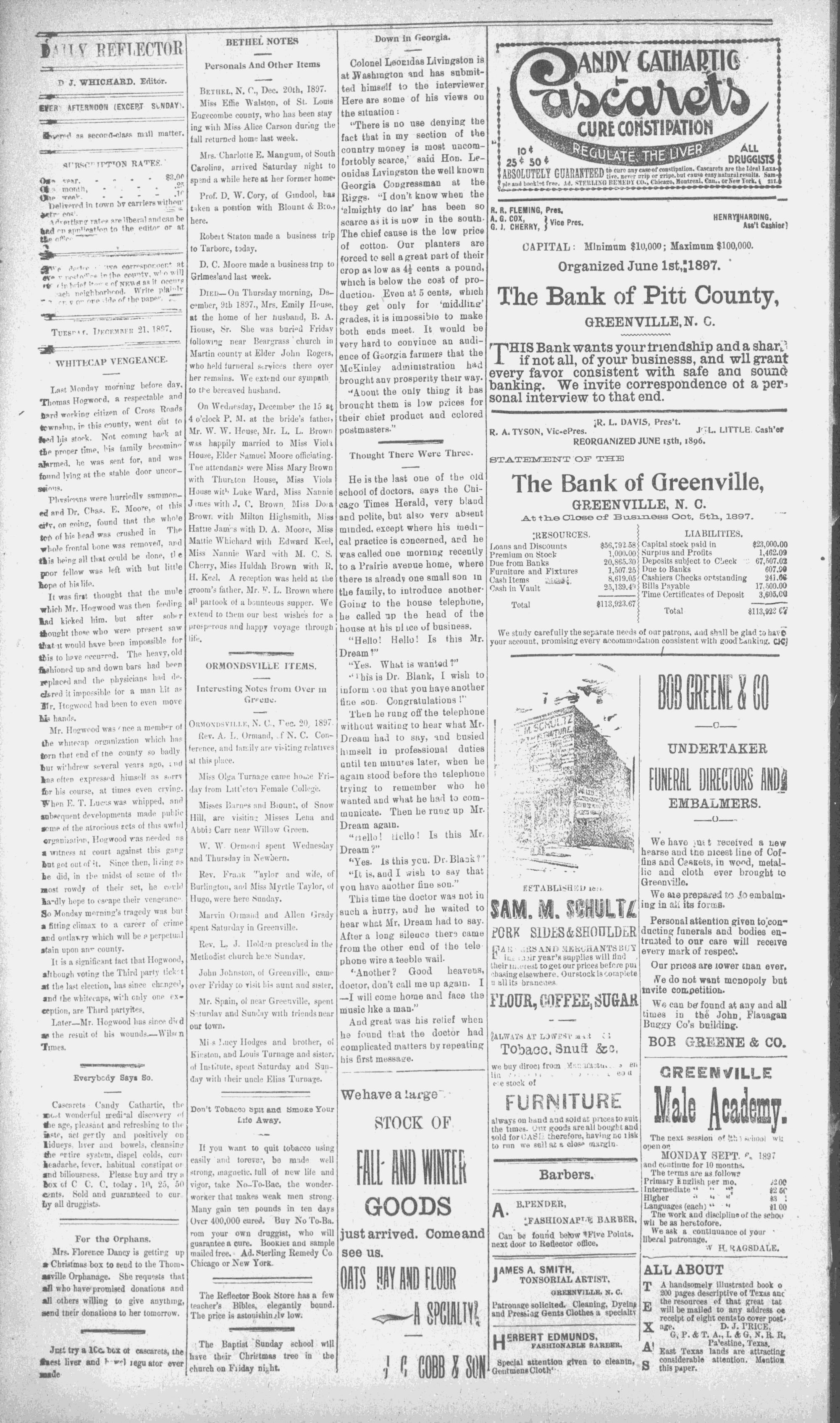 GREENVILLE, N. C., TUESDAY, DECEMBER 21, 1897.