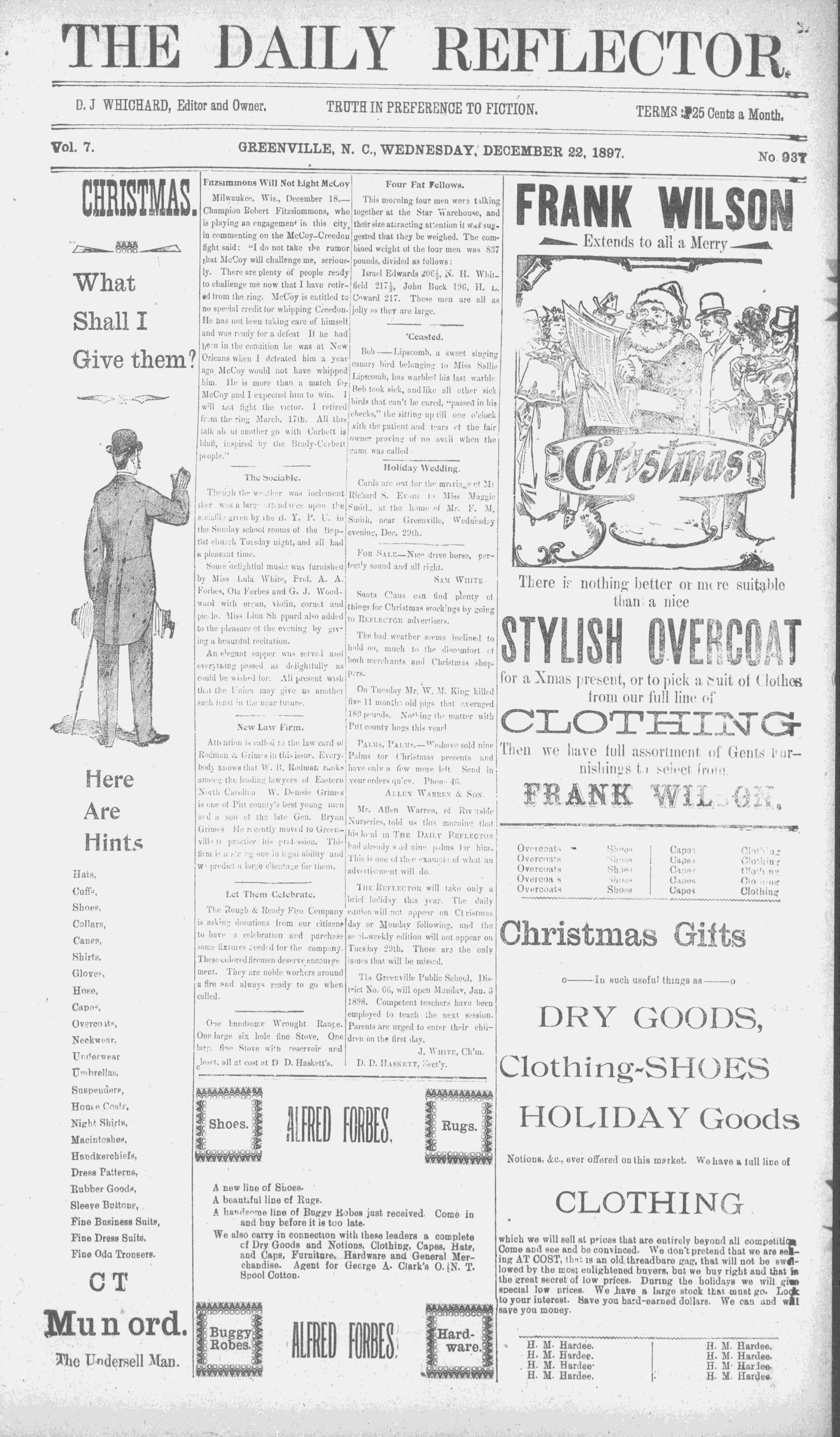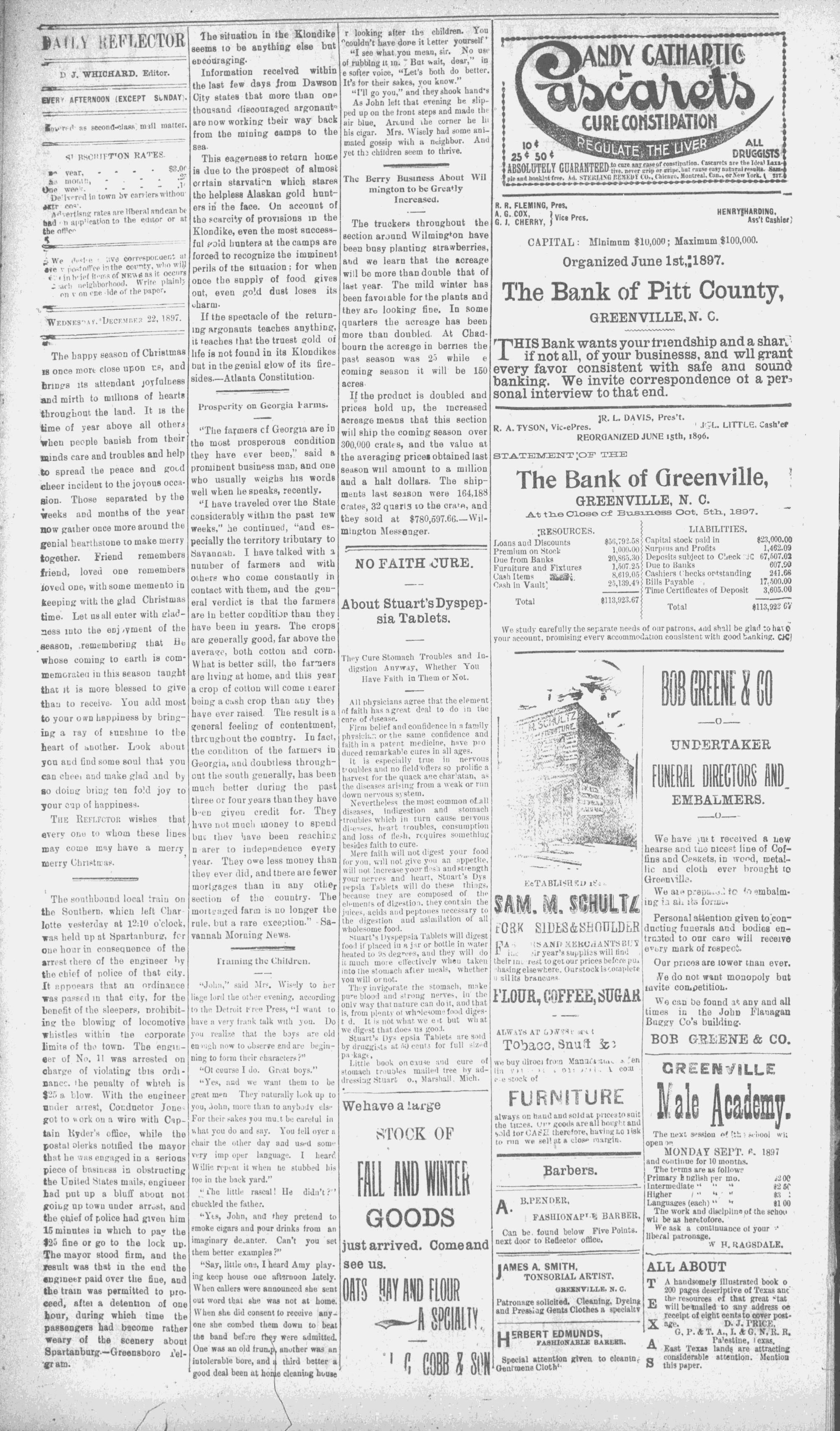 Vol. 7. _. GREENVILLE, N. C., WEDNESDAY, DECEMBER 22, 1897. No. 93%