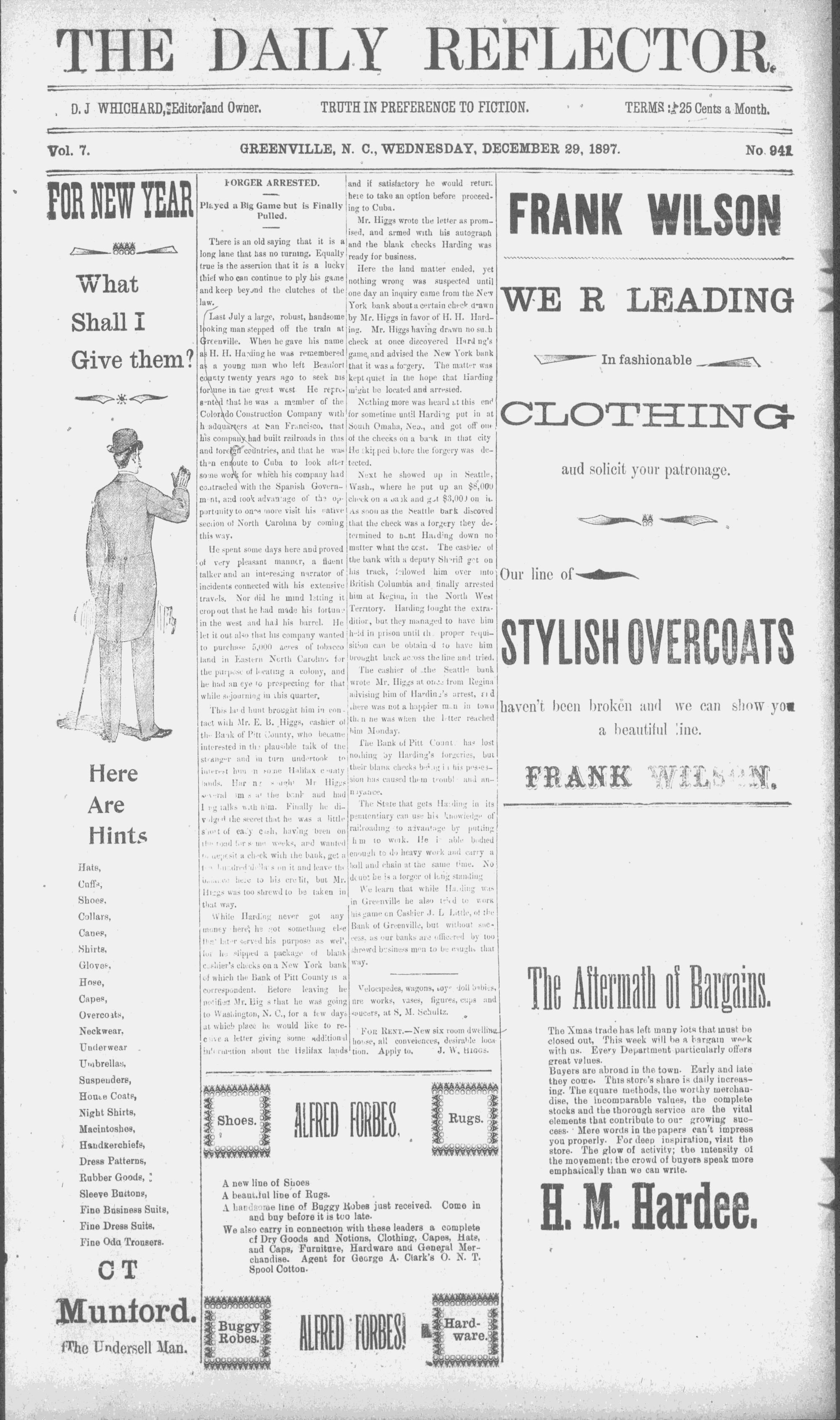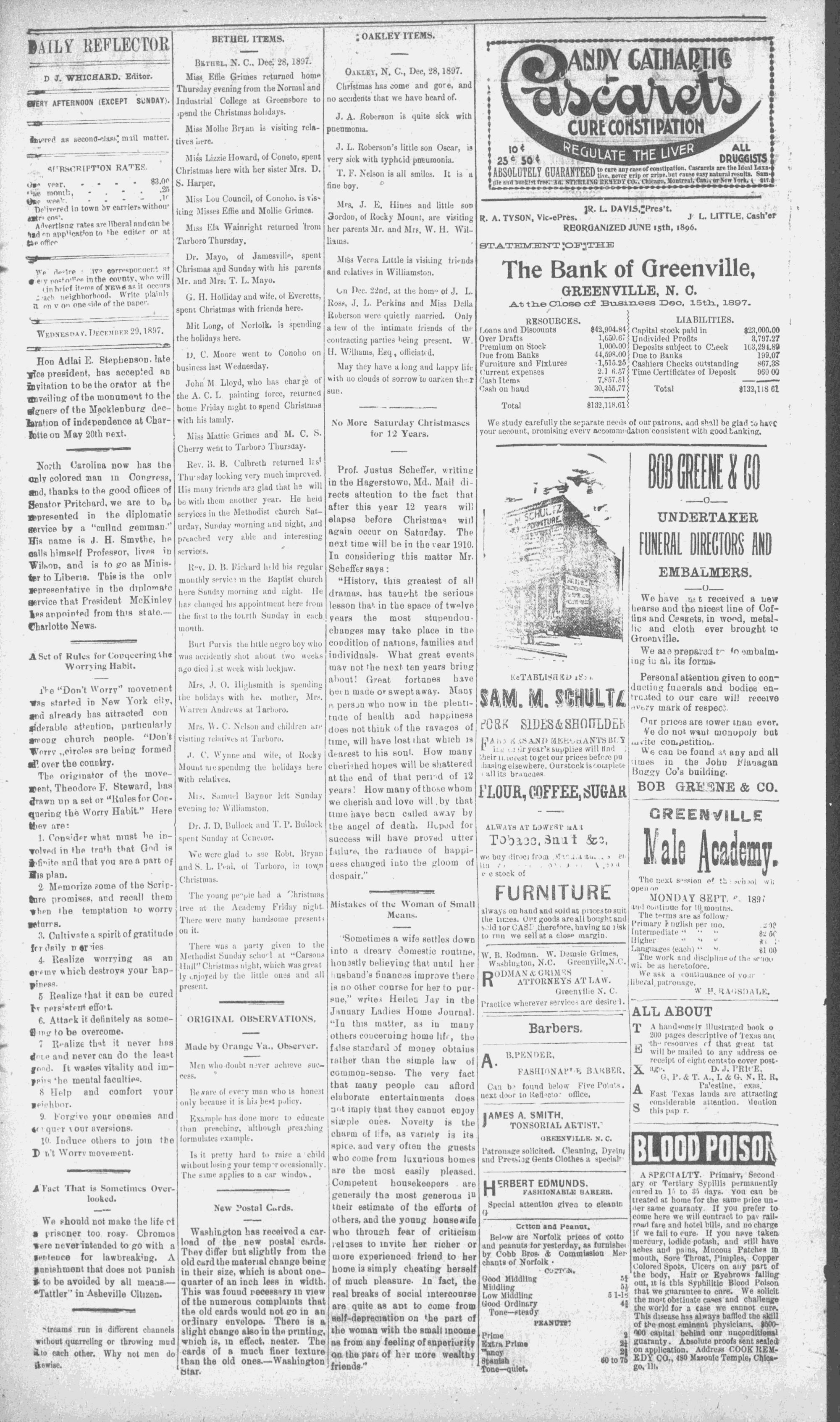 Vol. 7. _--"-s« @REENVILLE, N. C., WEDNESDAY, DECEMBER 29, 1897. No. 948