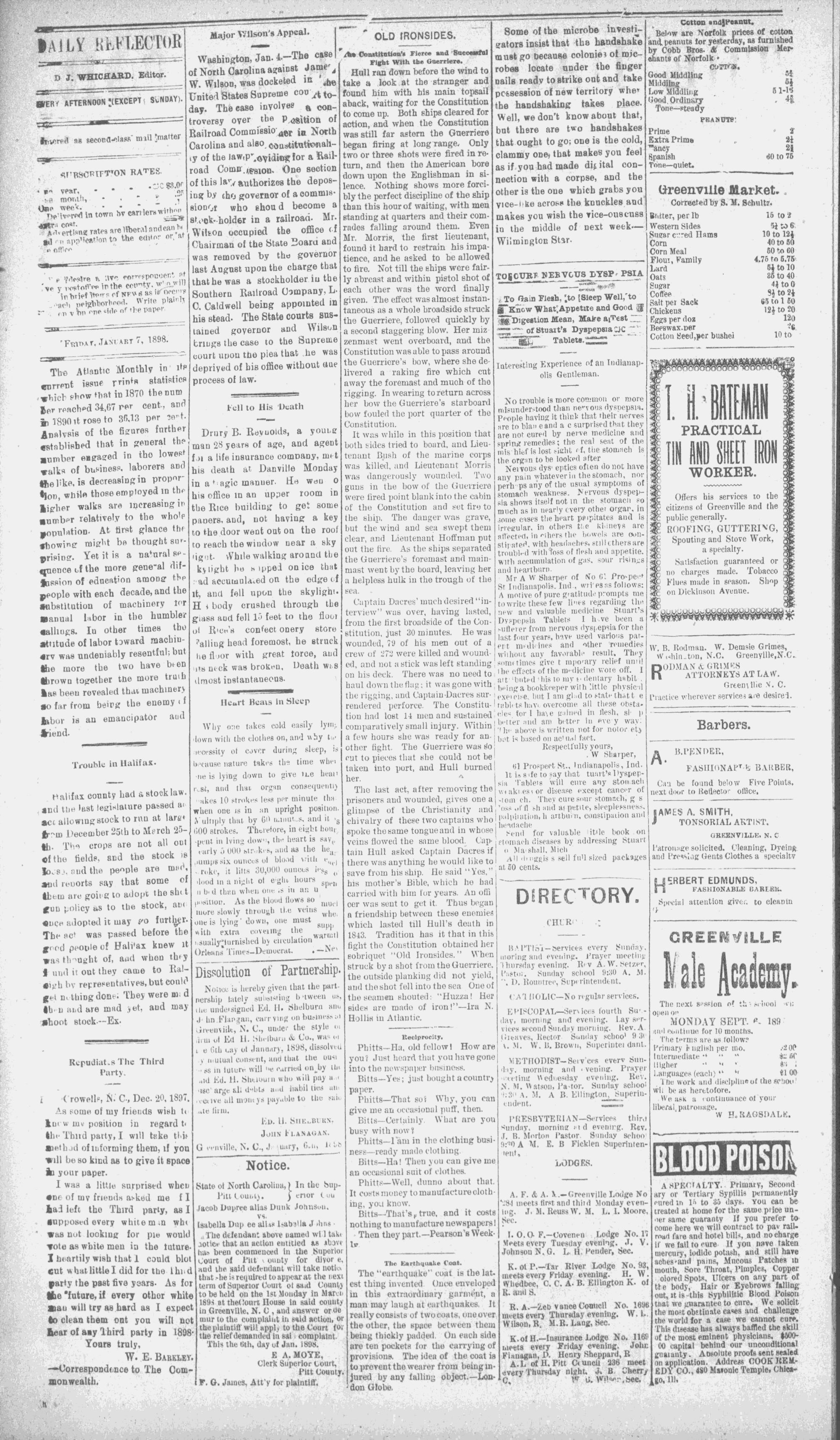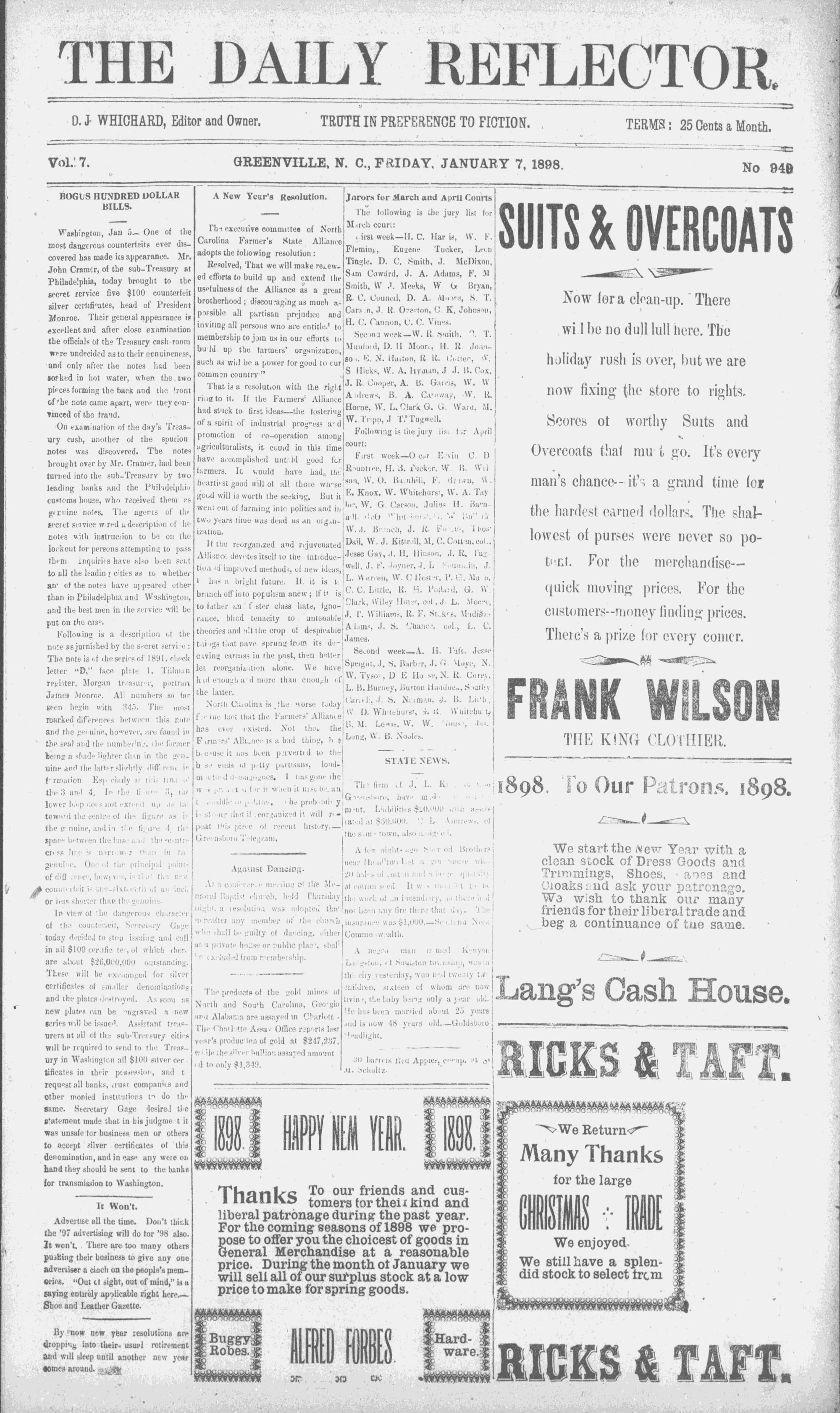 Vol.! 7. GREENVILLE, N. C., FRIDAY, JANUARY 7, 1898. No 940
