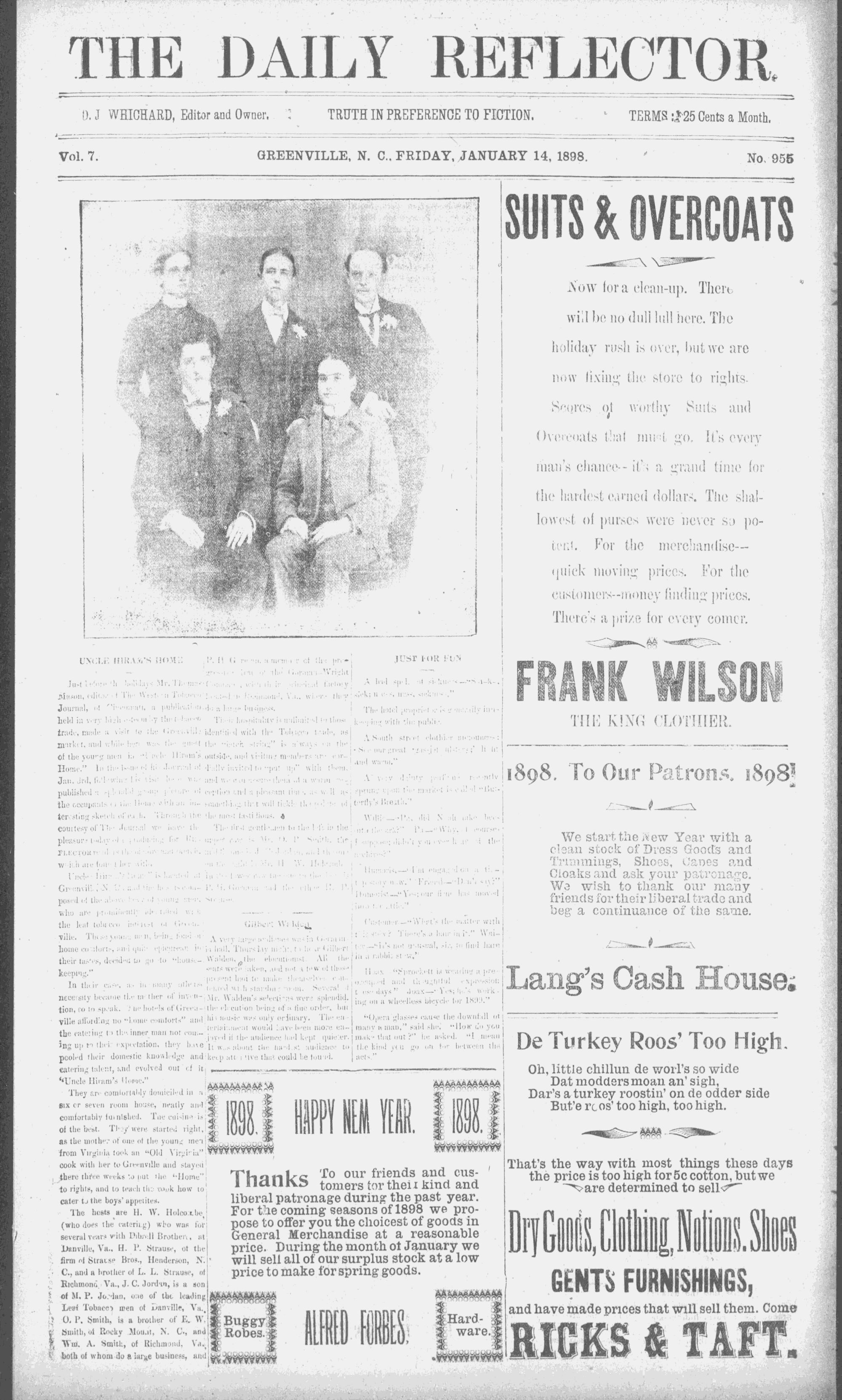 GREENVILLE, N. C., FRIDAY, JANUARY 14, 1898. . ,