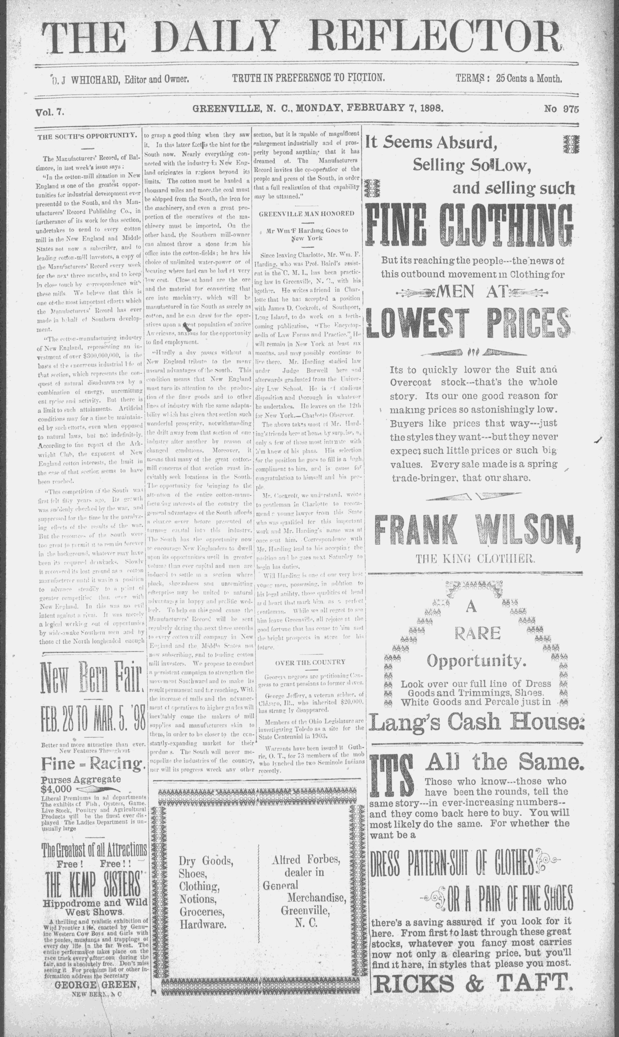 GREENVILLE, N. C., avons FEBRUARY 7, 1898.