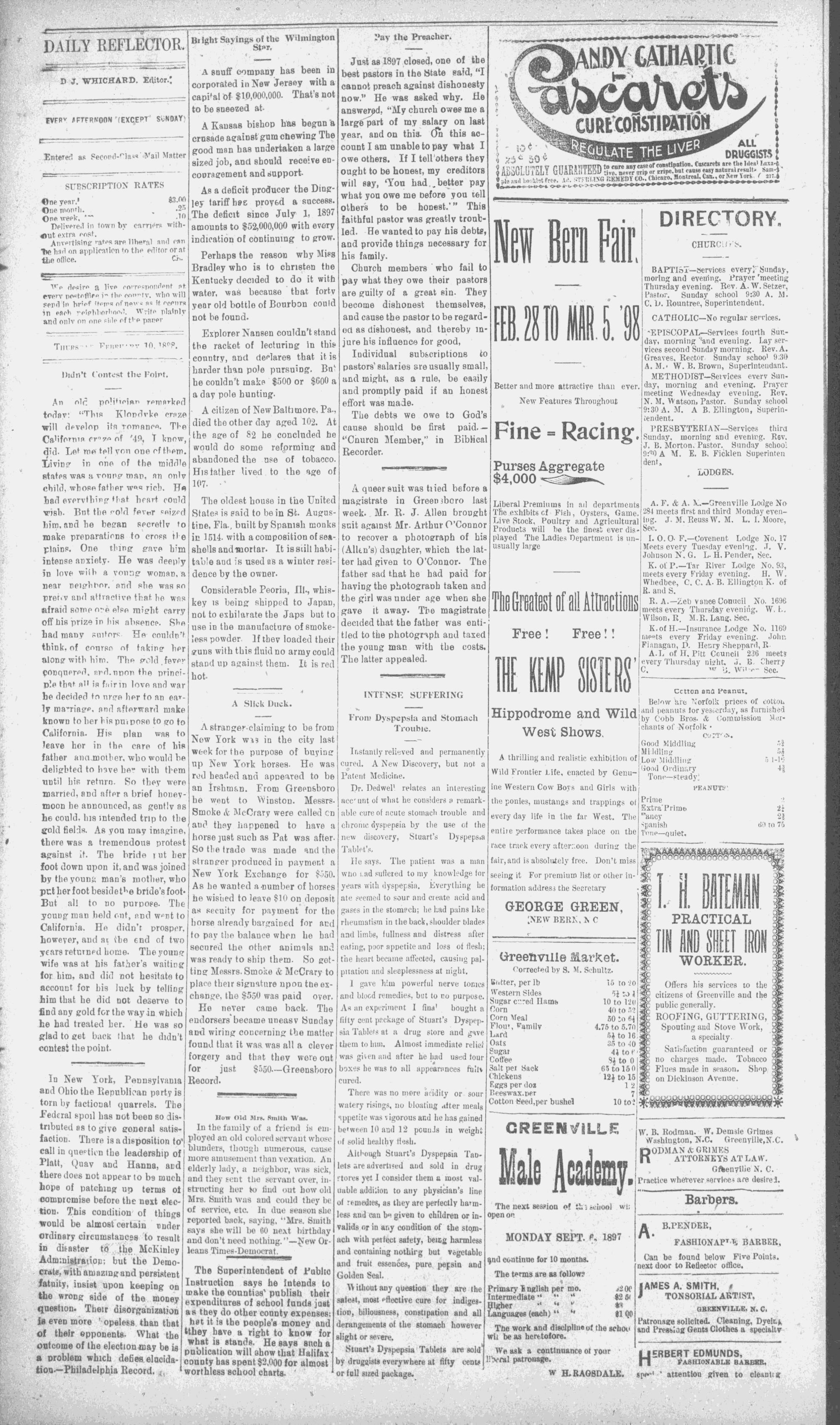 Vol. 7. ss @REENVILLE, N. C., THURSDAY, FEBRUARY, 10, 1898. No 078
