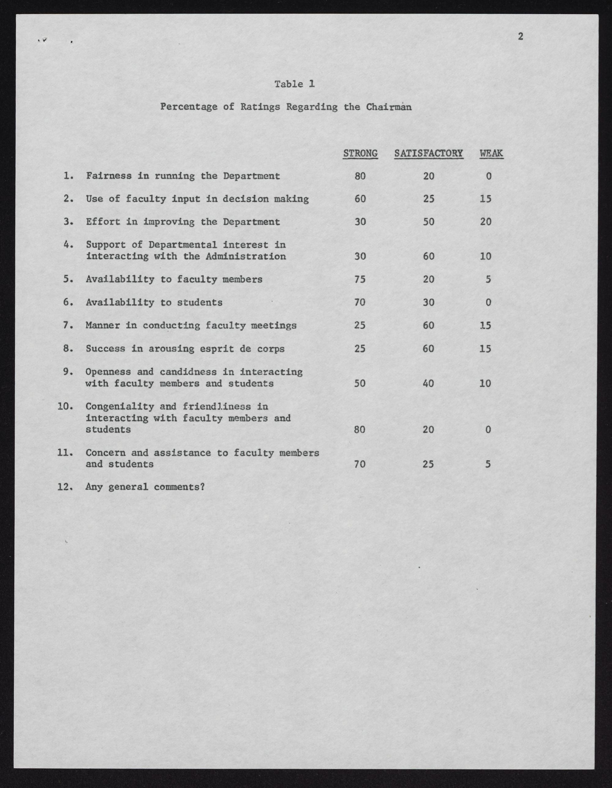 chairman. Most notably, over 70% of the faculty feel that he is strong on