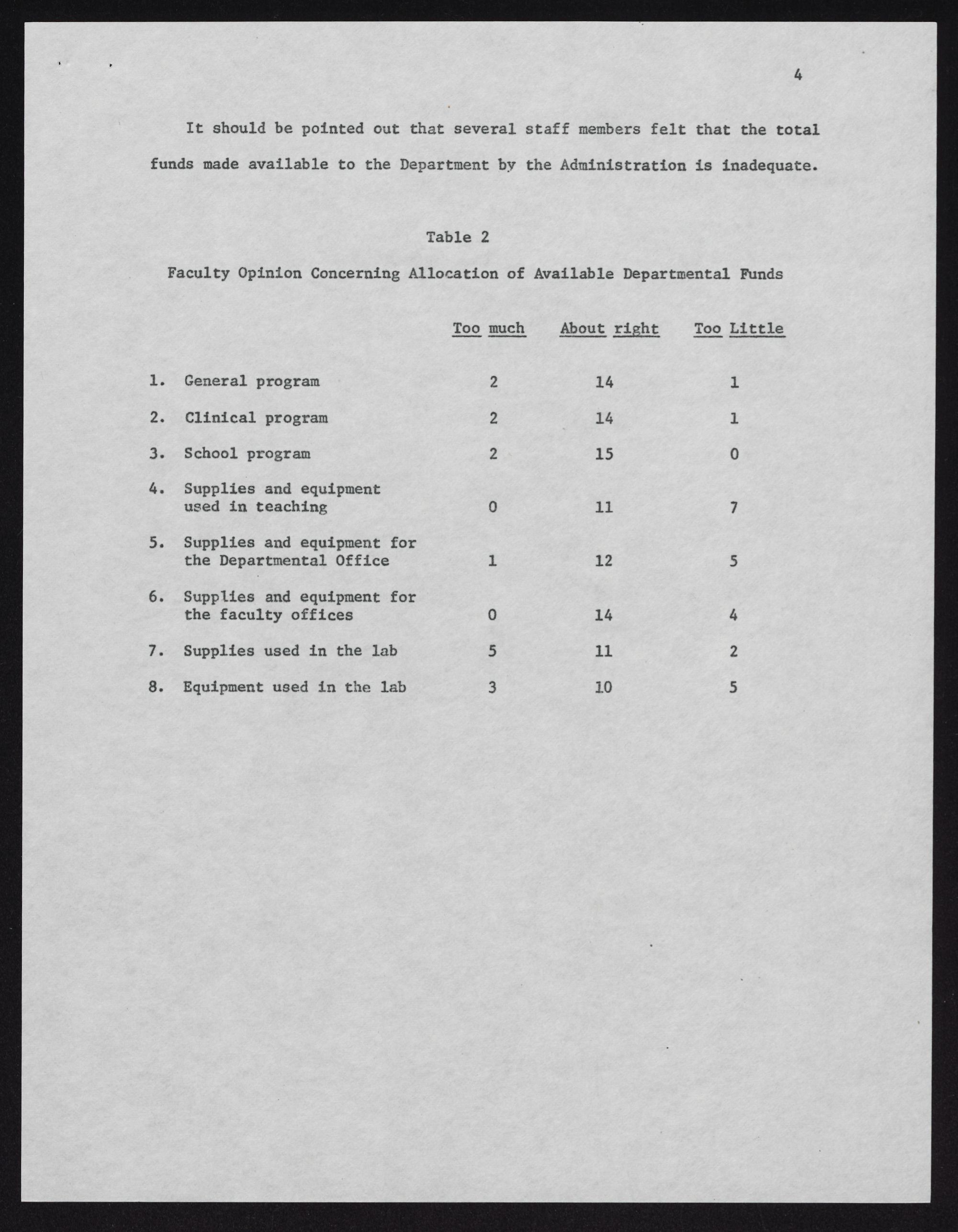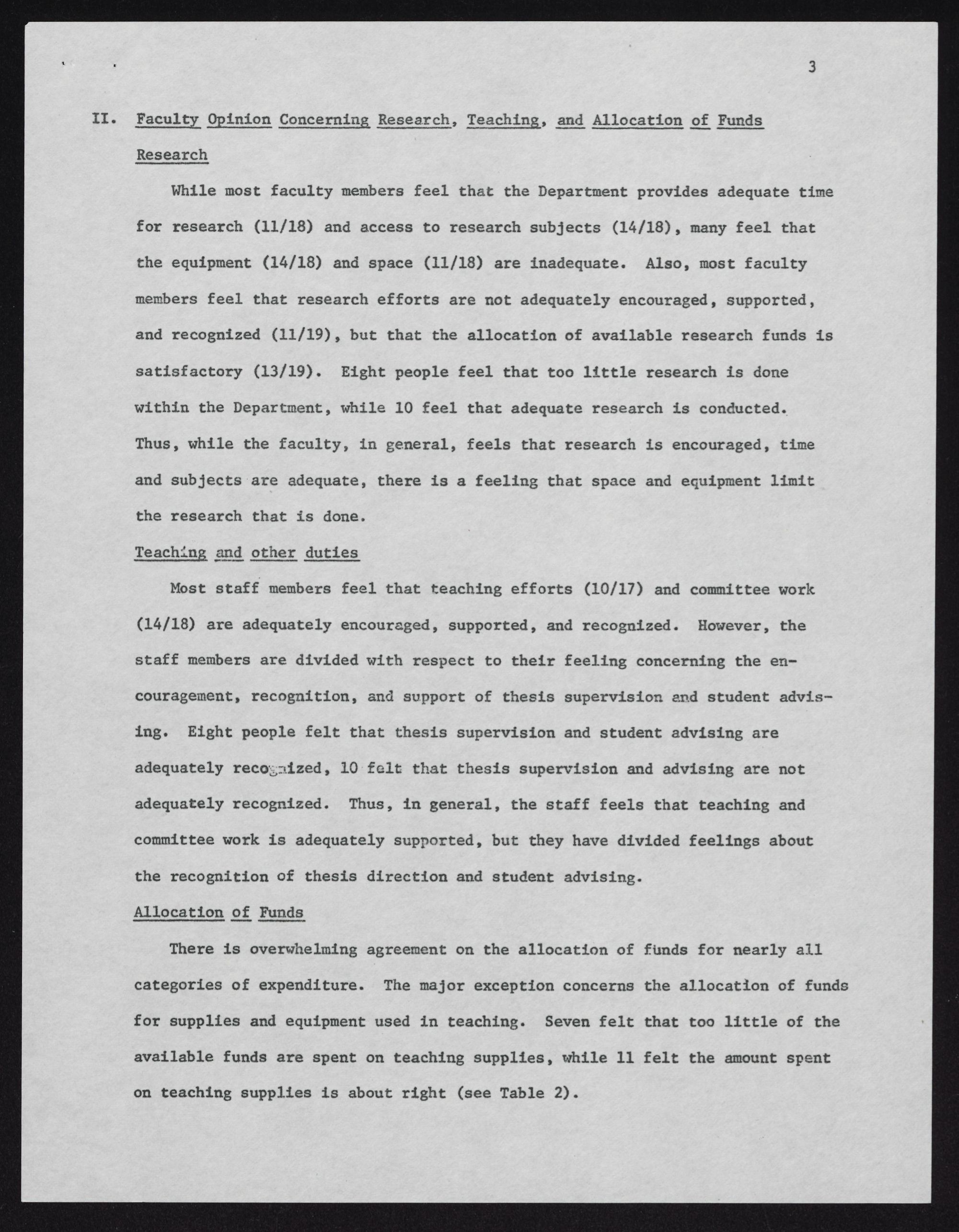 Chairman; II, Faculty Opinion Concerning Research, Teaching, and Allocation of