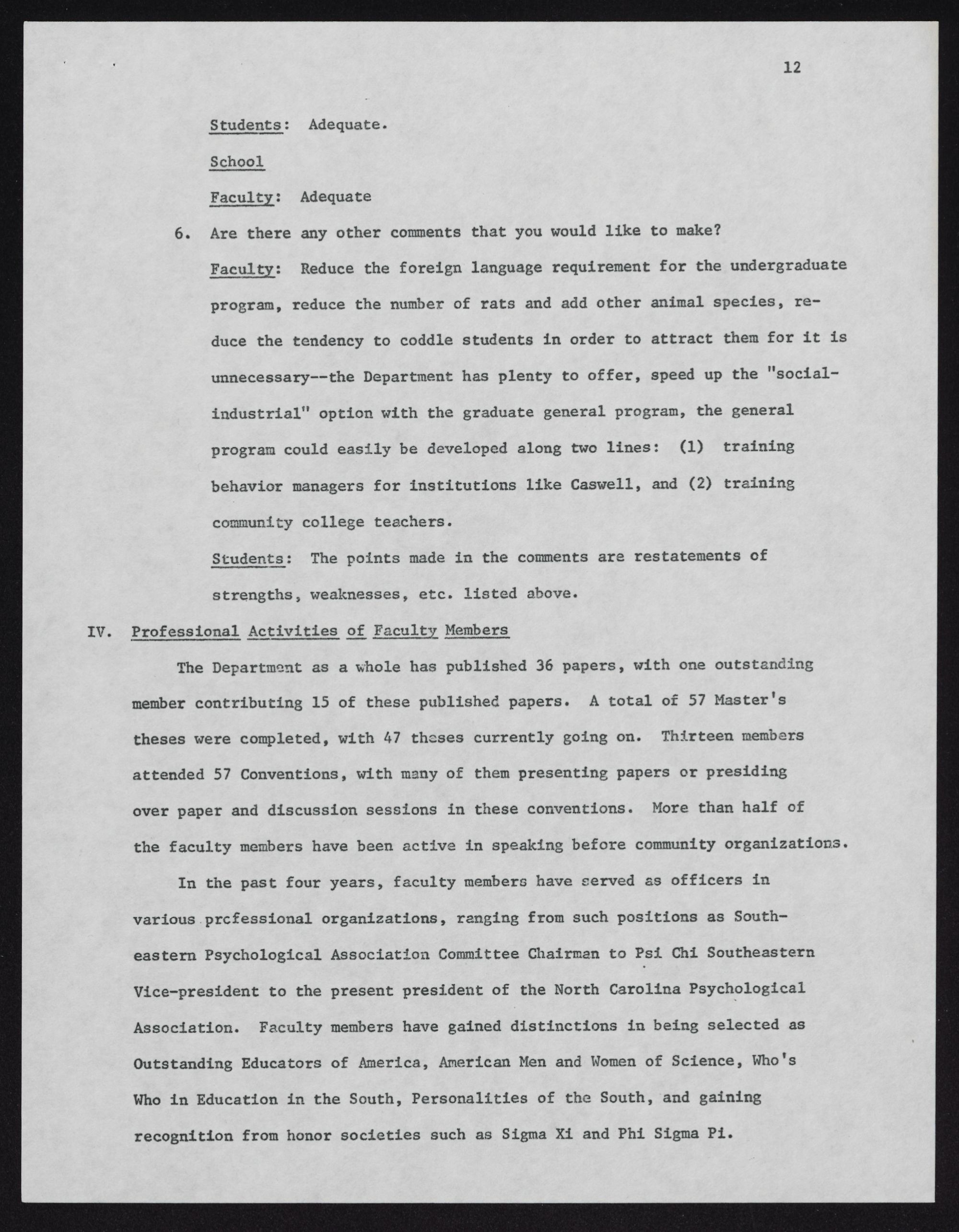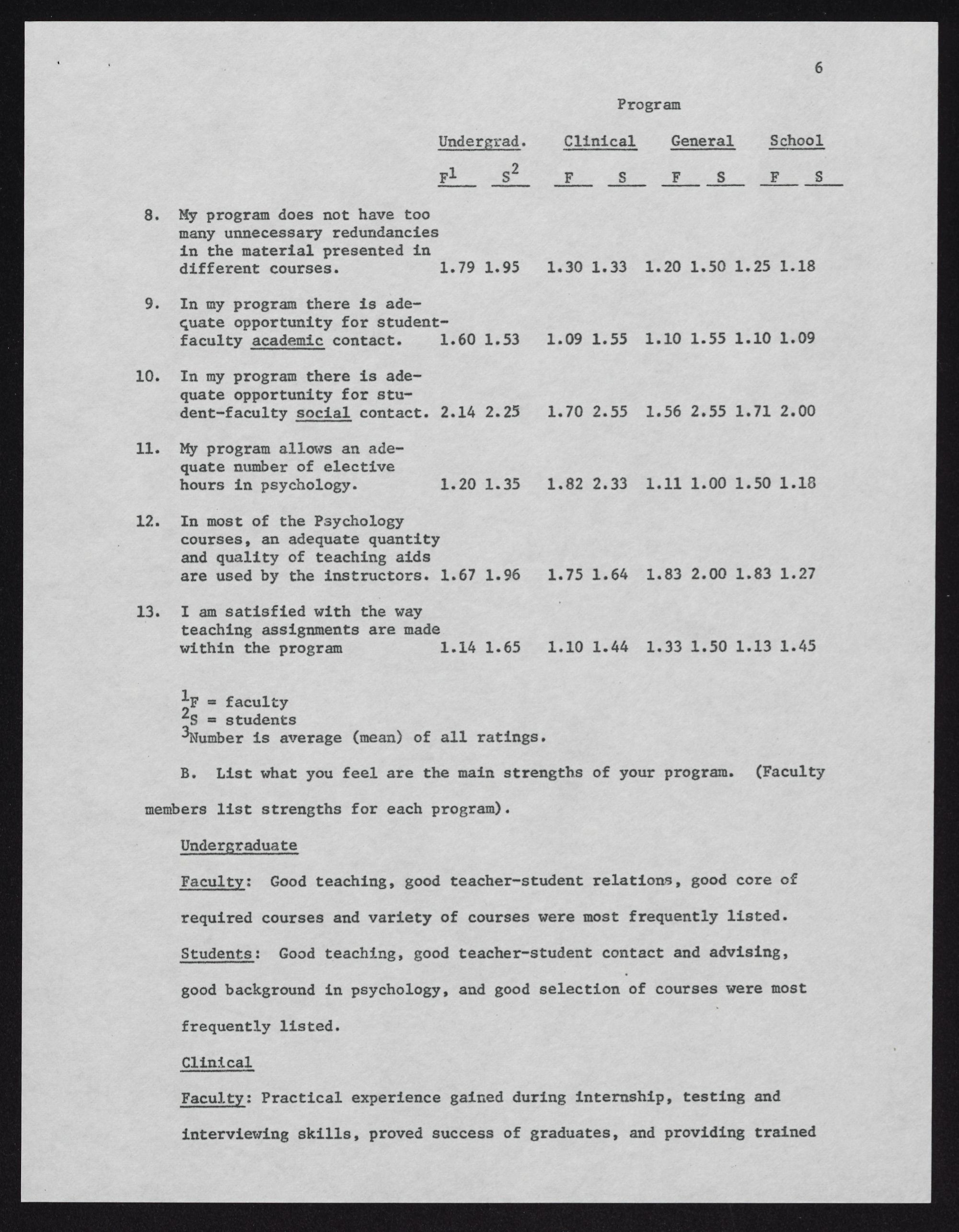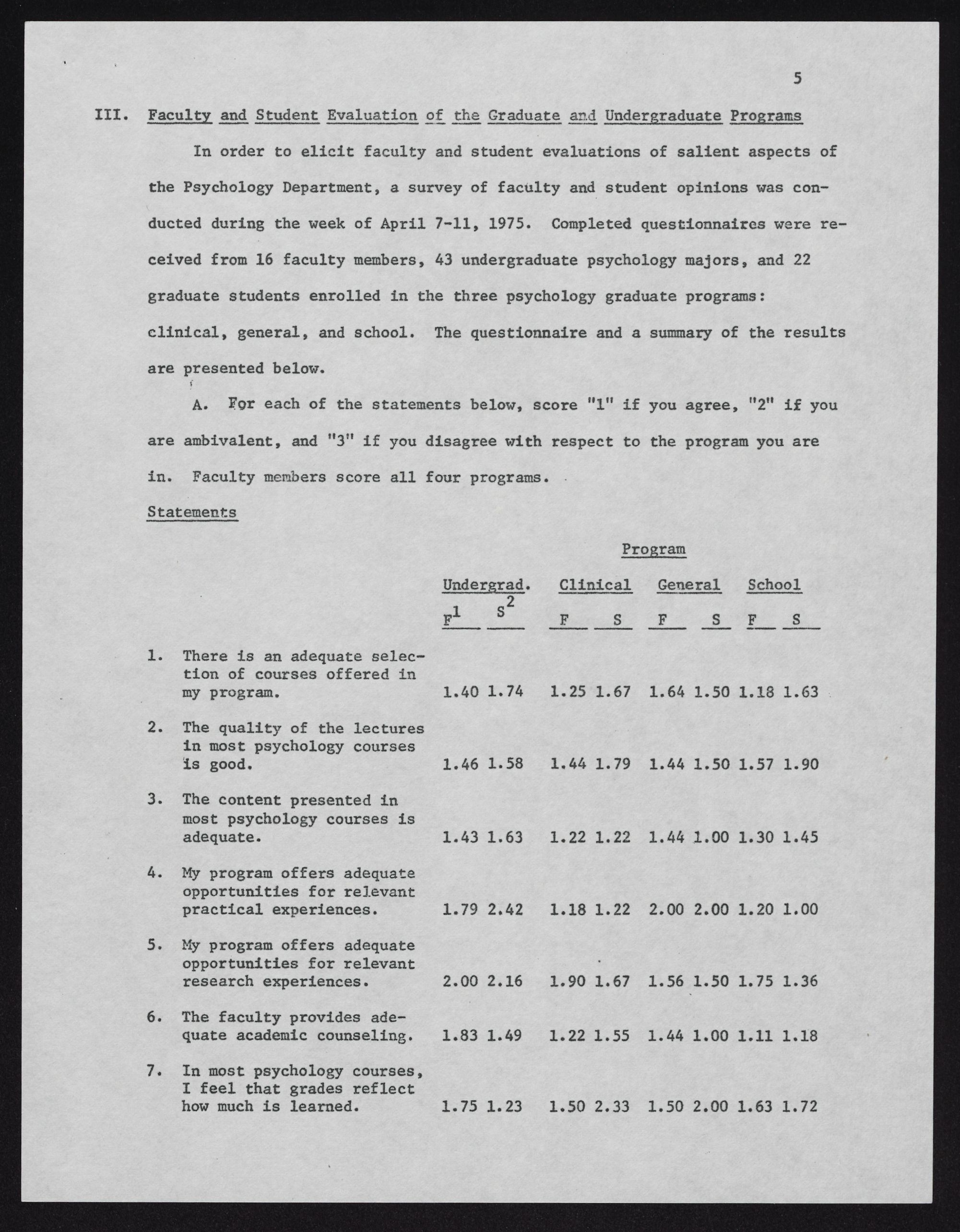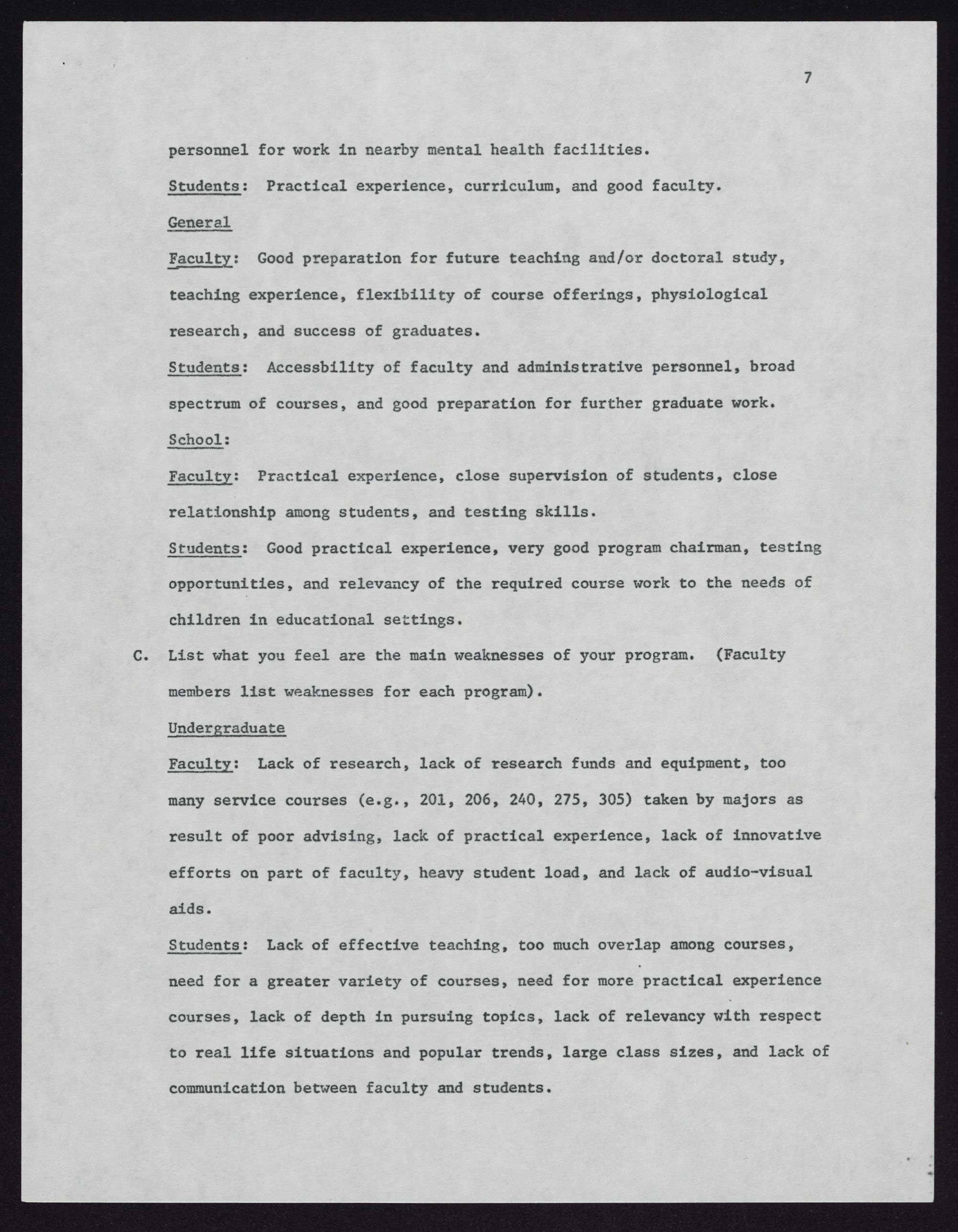 Funds; III, Faculty and Student Evaluation of the Graduate and Undergraduate