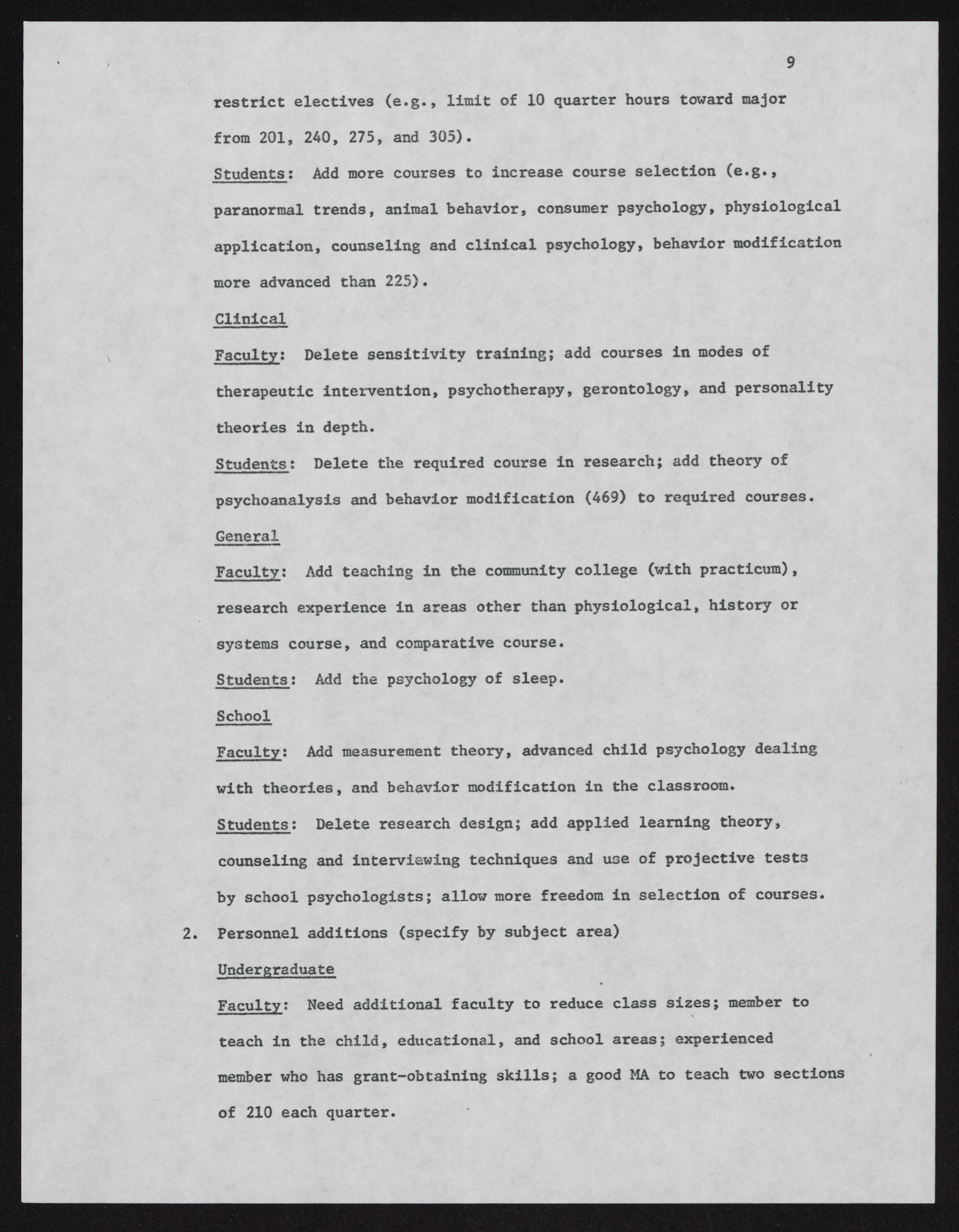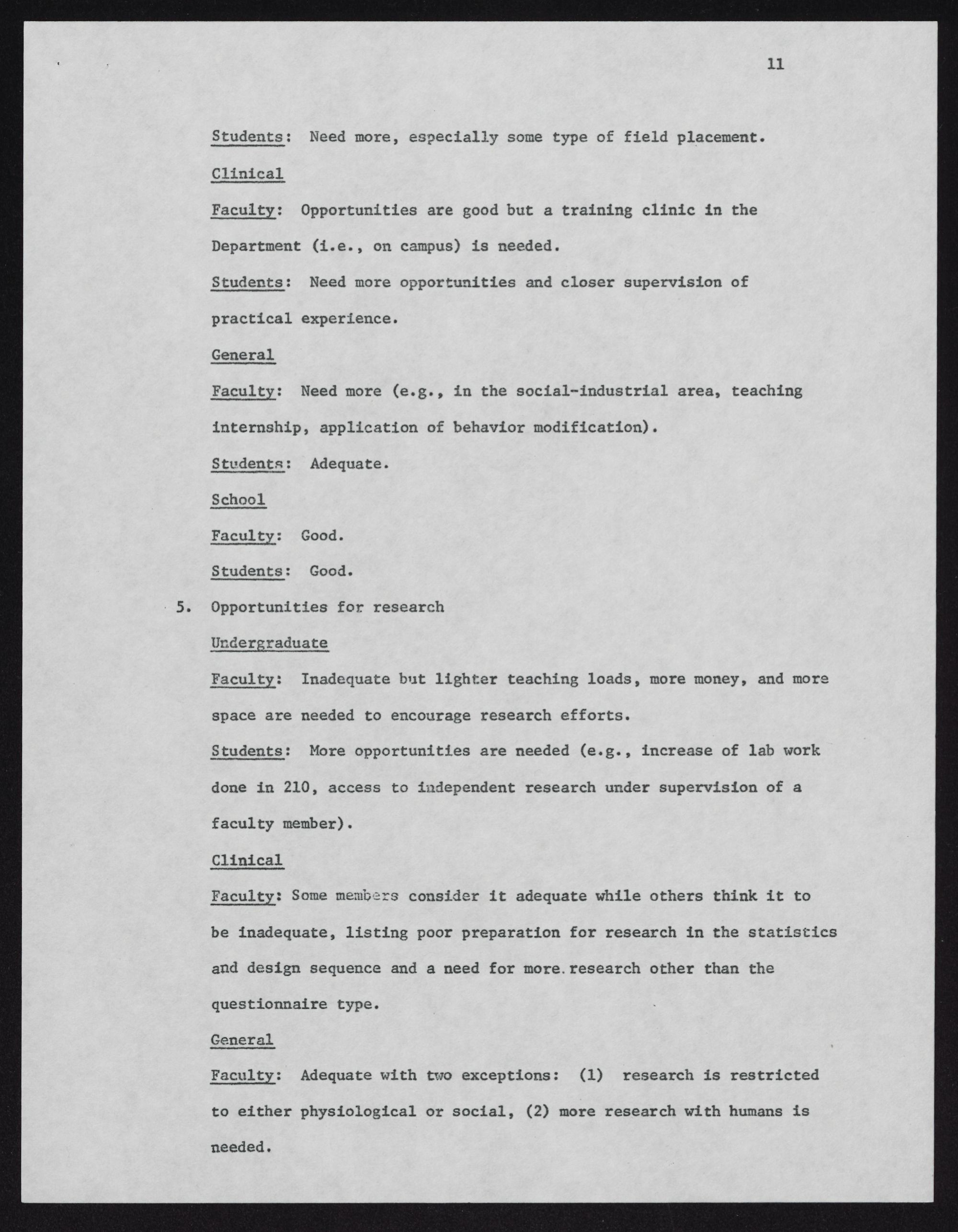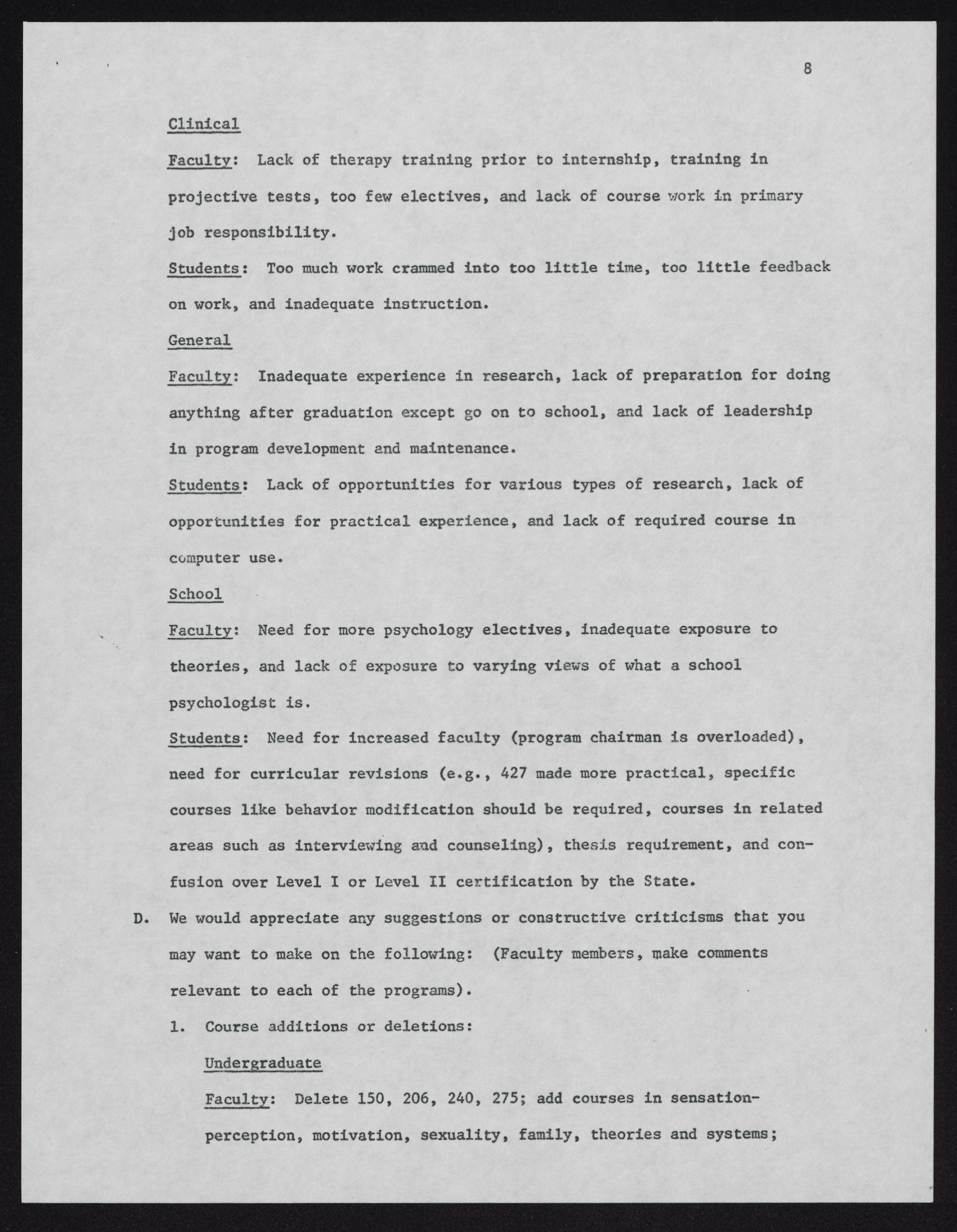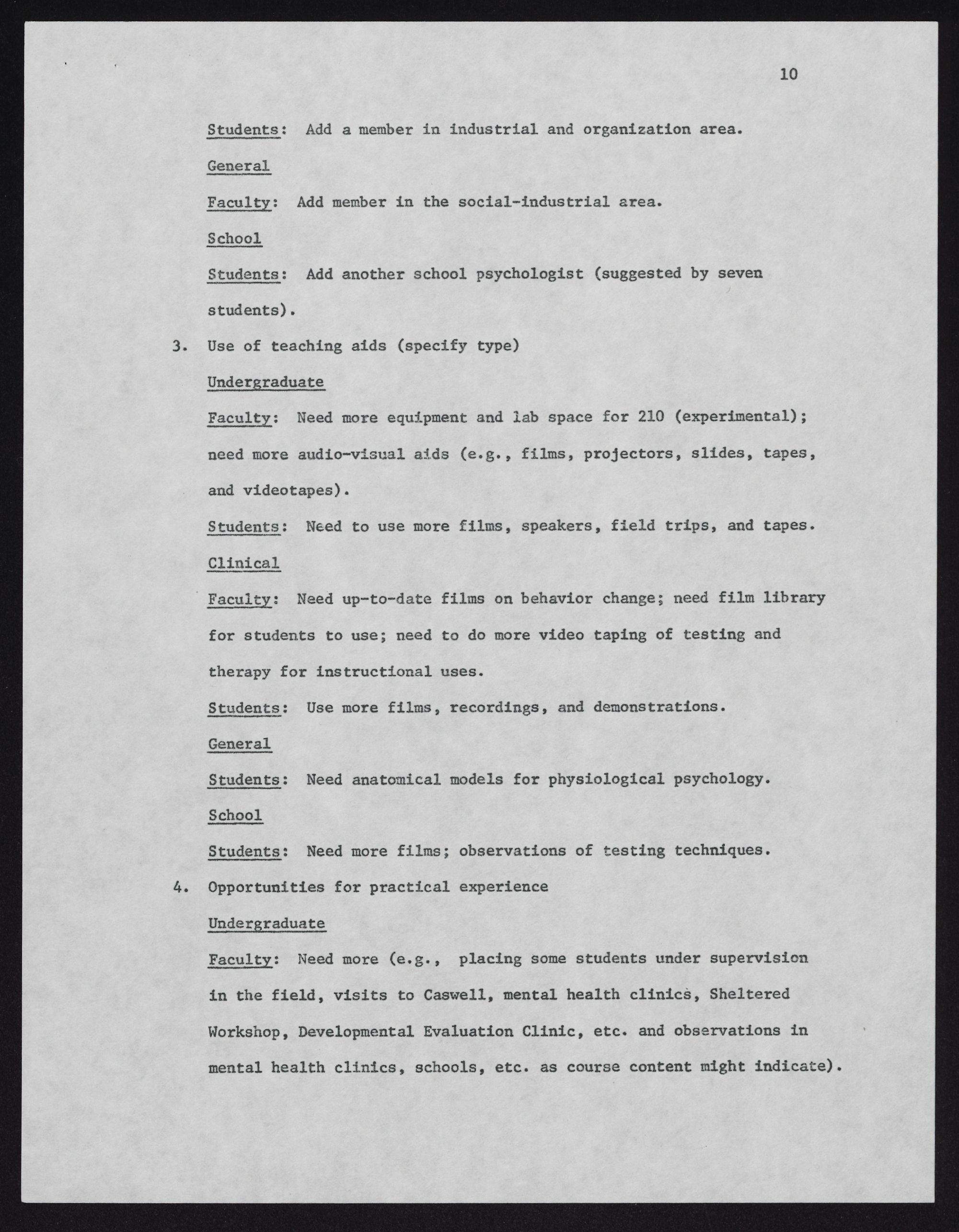 Funds; III, Faculty and Student Evaluation of the Graduate and Undergraduate