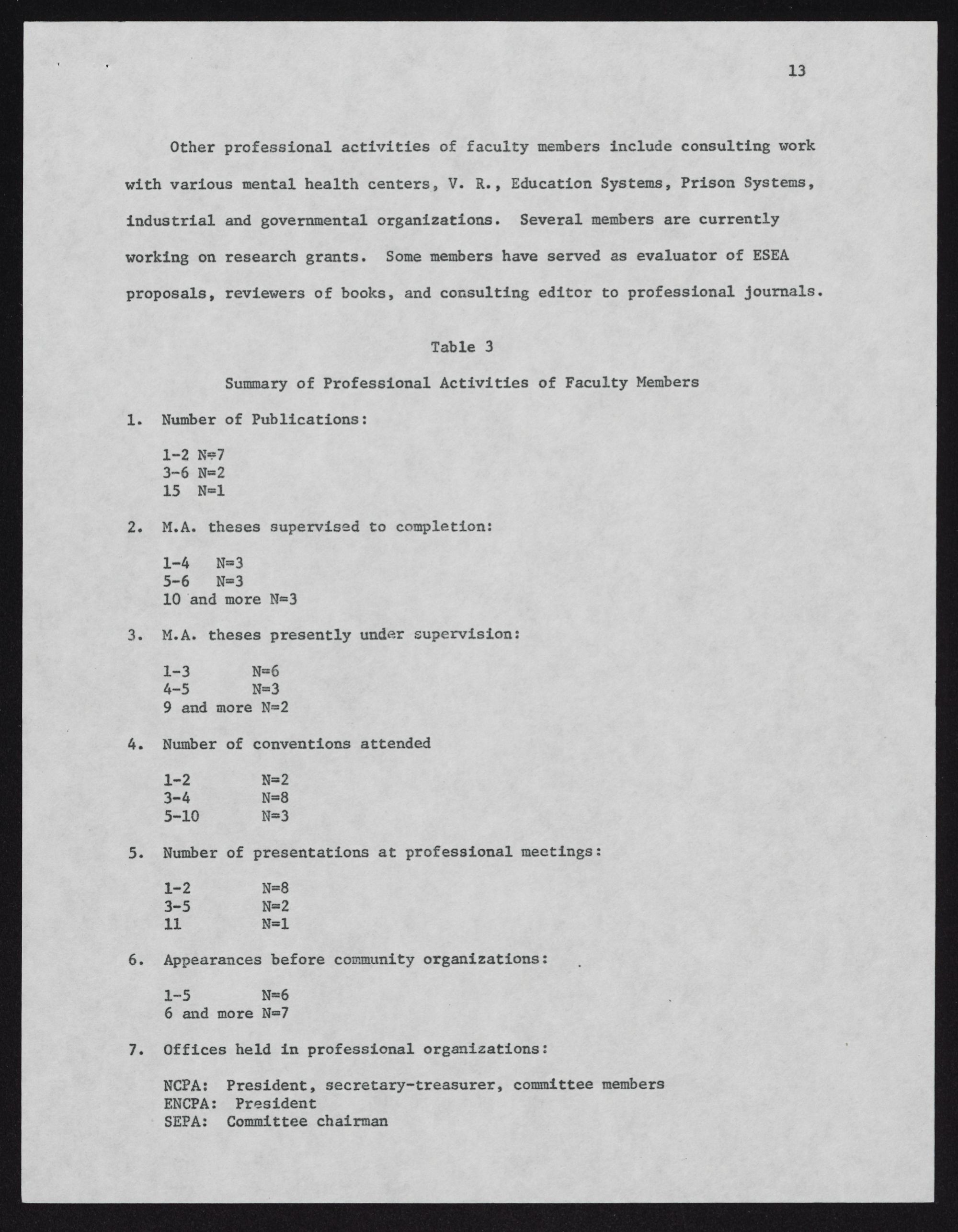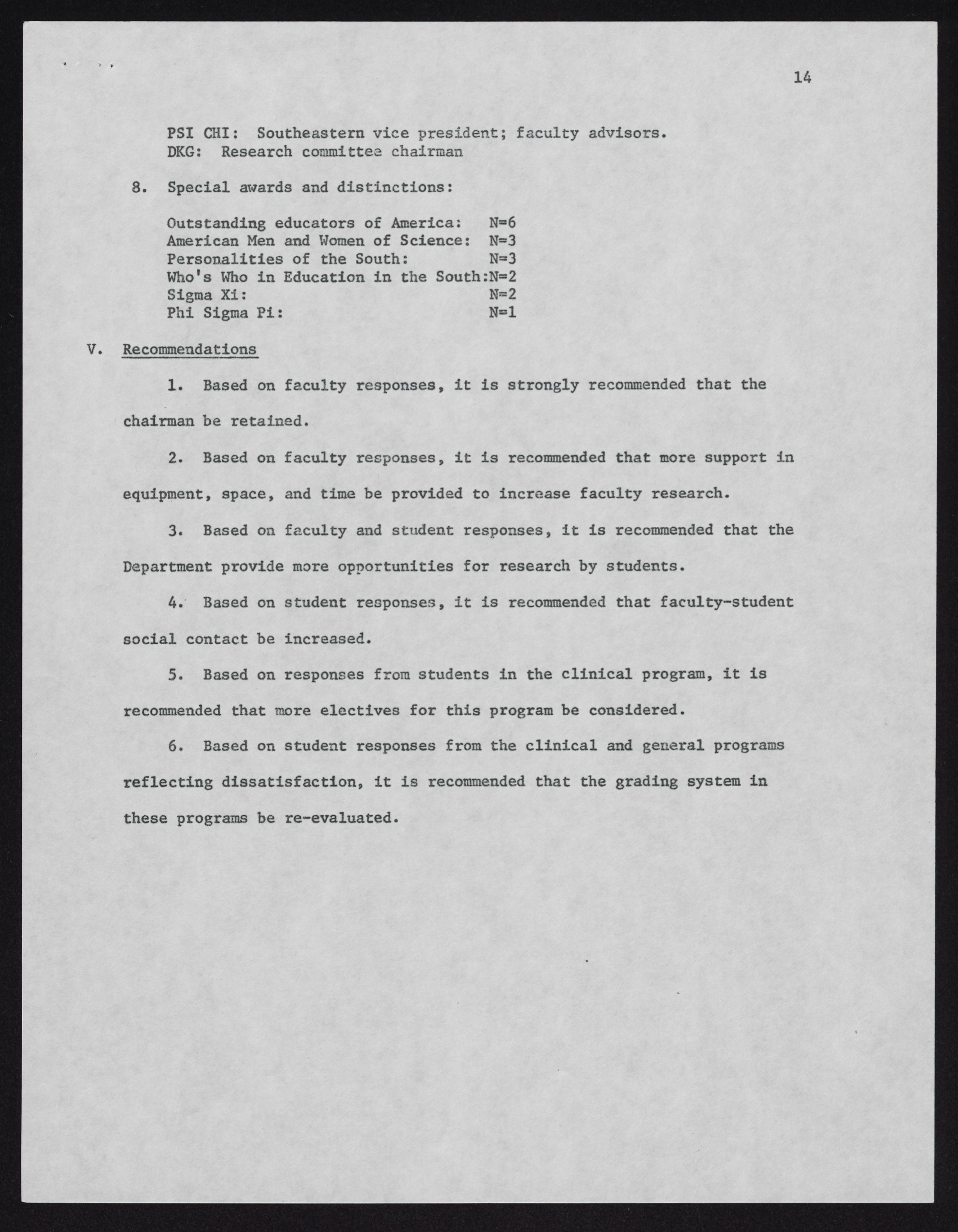 Programs; IV, Professional Activities of Faculty Members; and V, Recommendations.