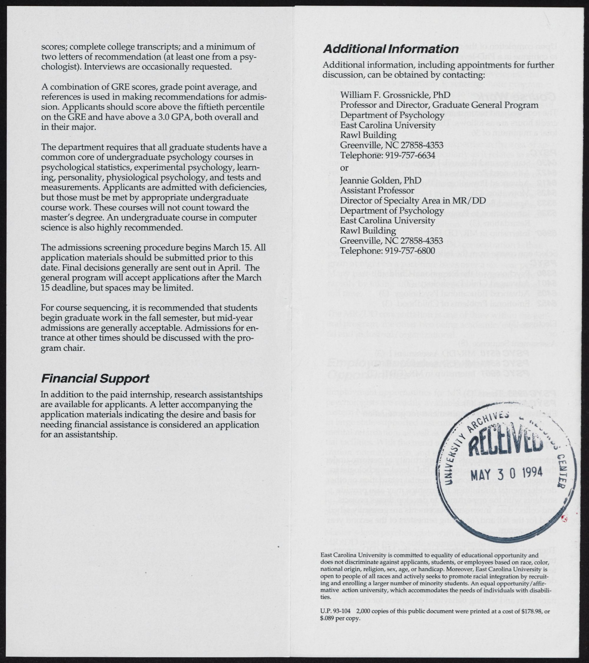 national origin, religion, sex, age, or handicap. Moreover, East Carolina University is