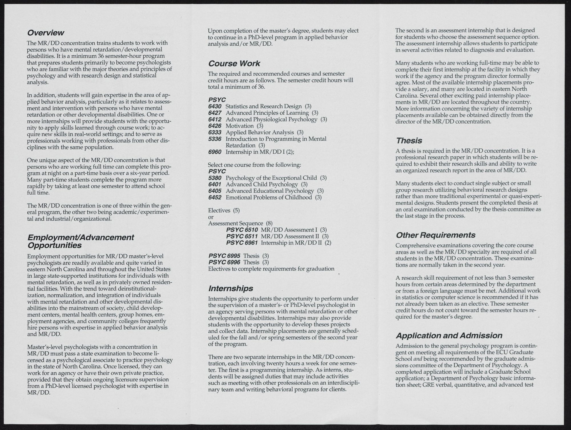 General Graduate Psychology Program, Mental Retardation/Development Disabilities Concentration