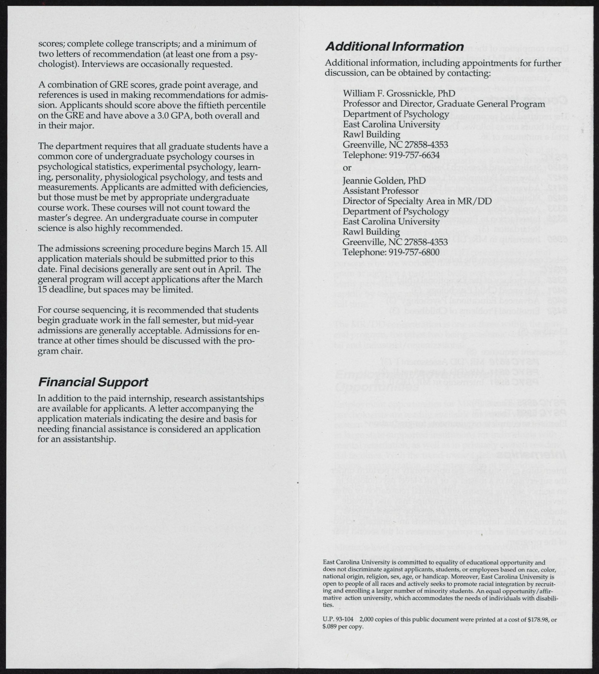 Admission to the general psychology program is contin-