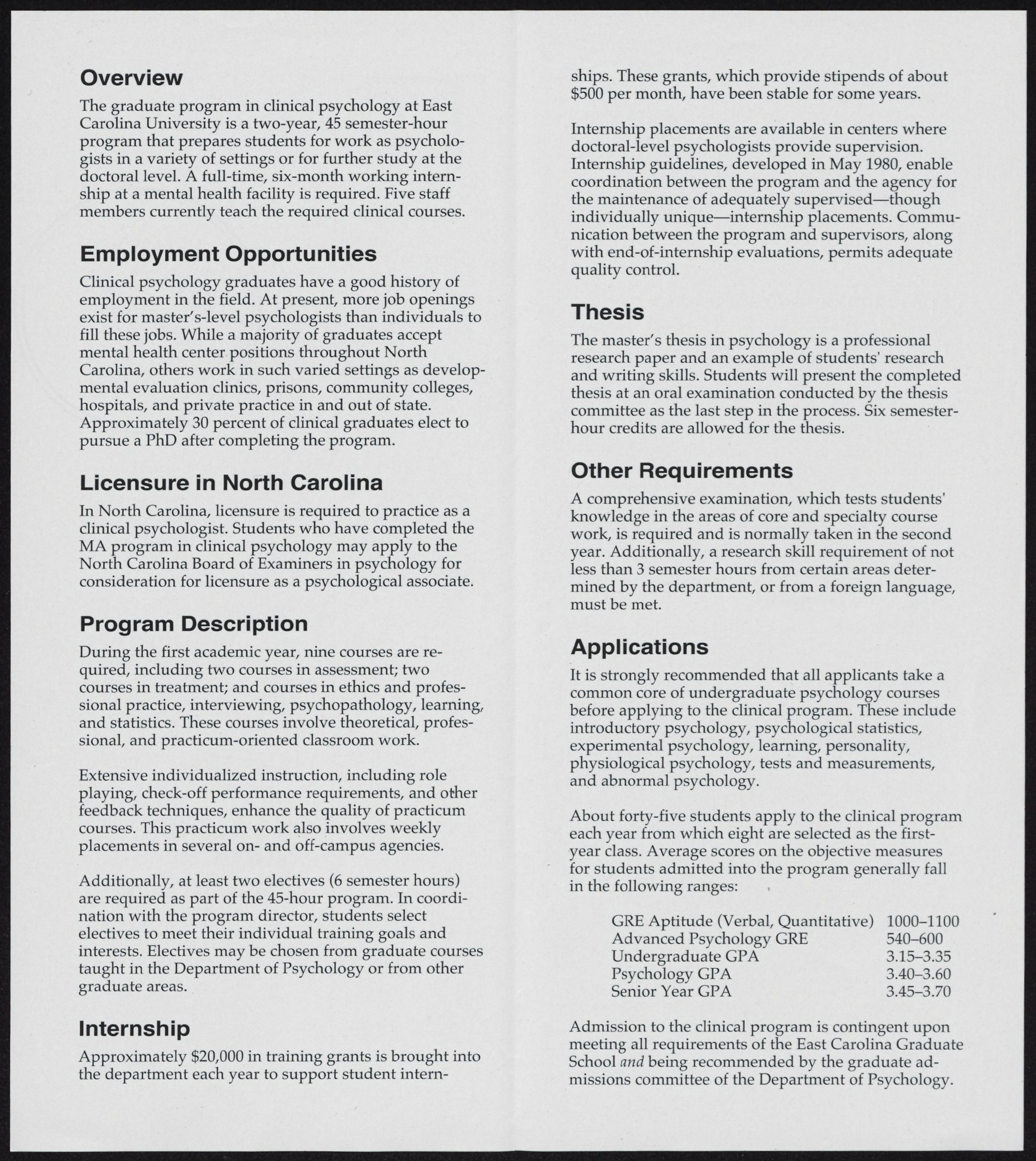 About forty-five students apply to the clinical program