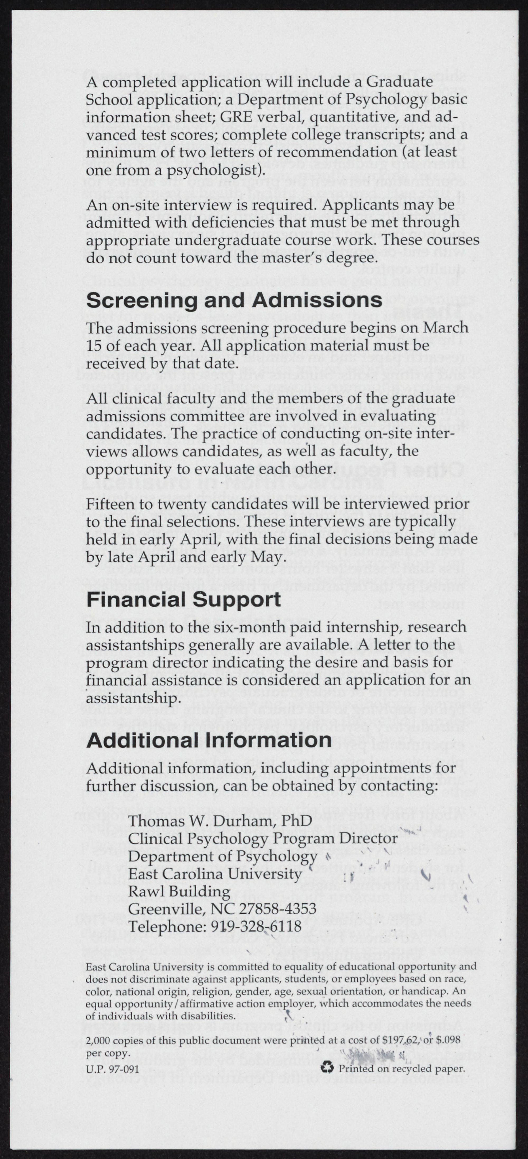 assistantships generally are available. A letter to the