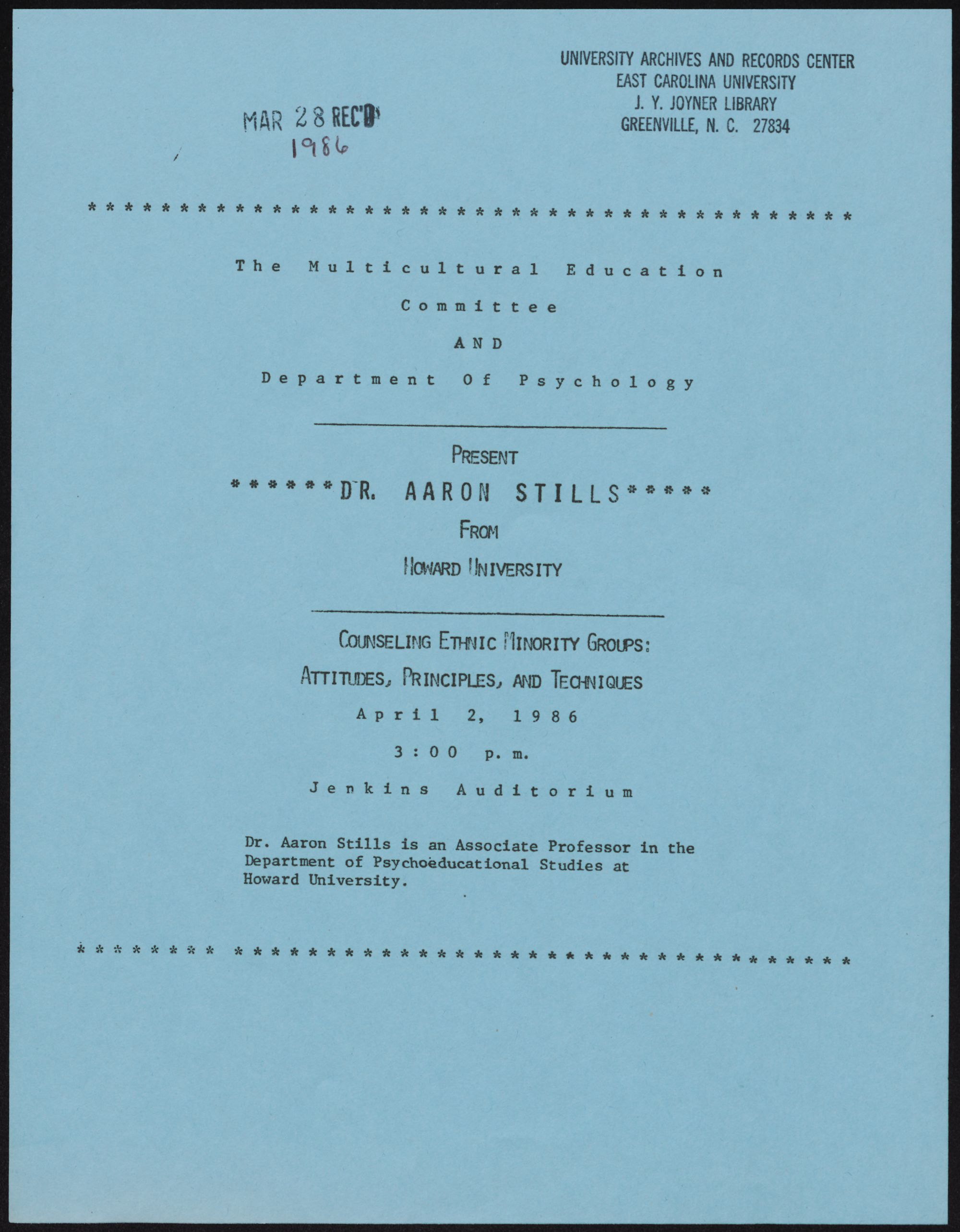 MAR 28 RECO GREENVILLE, N.C. 27834