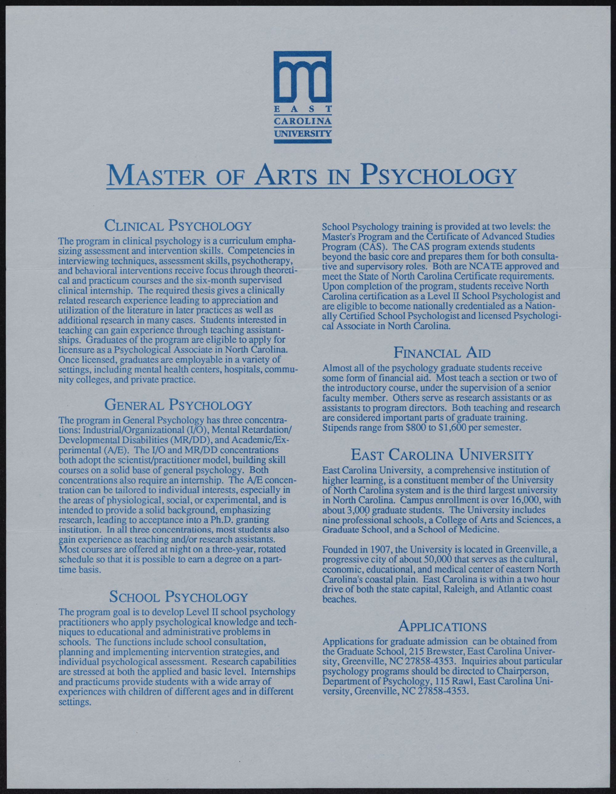 the Graduate School, 215 Brewster, East Carolina Univer-