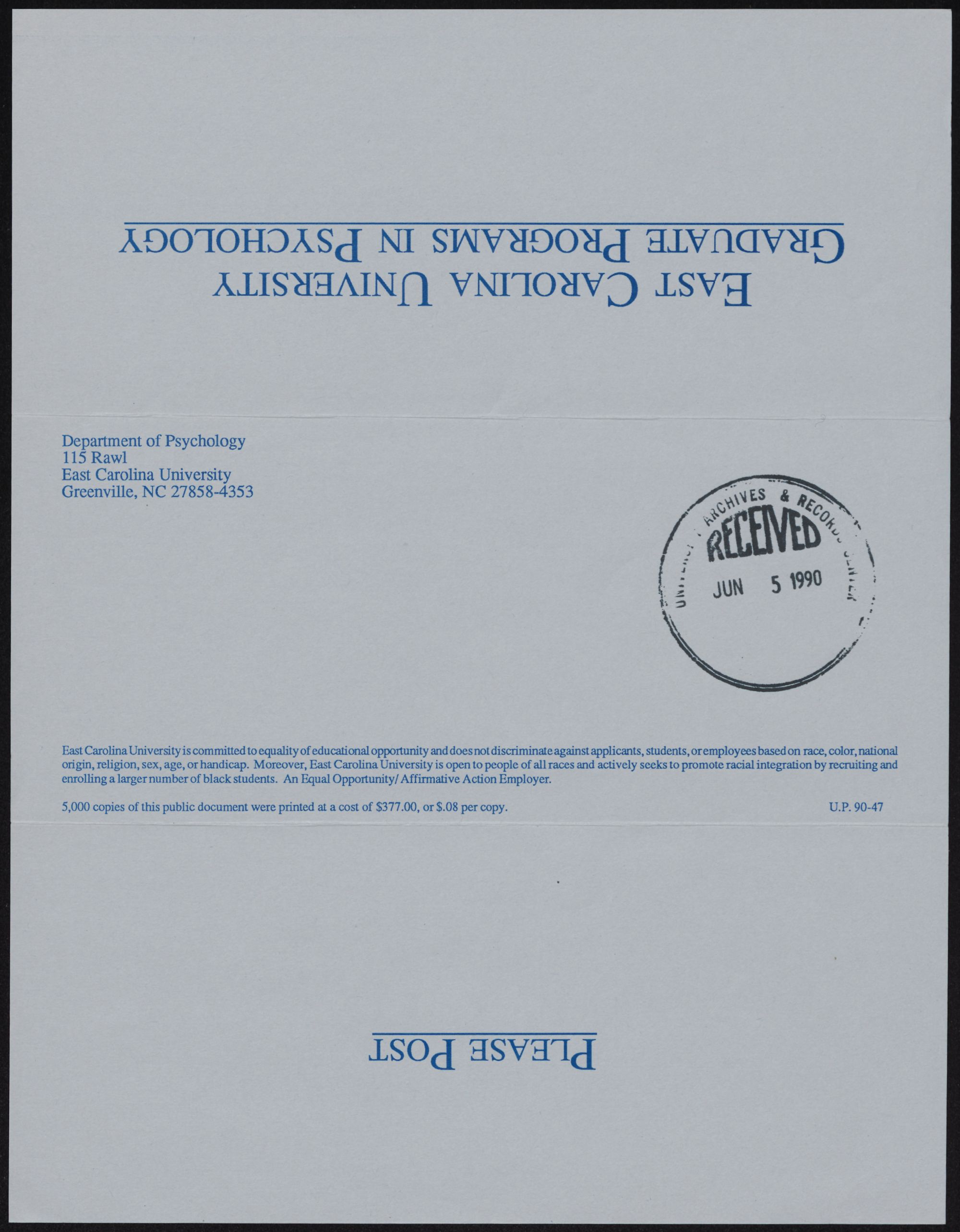 Department of Psychology, 115 Rawl, East Carolina Uni-