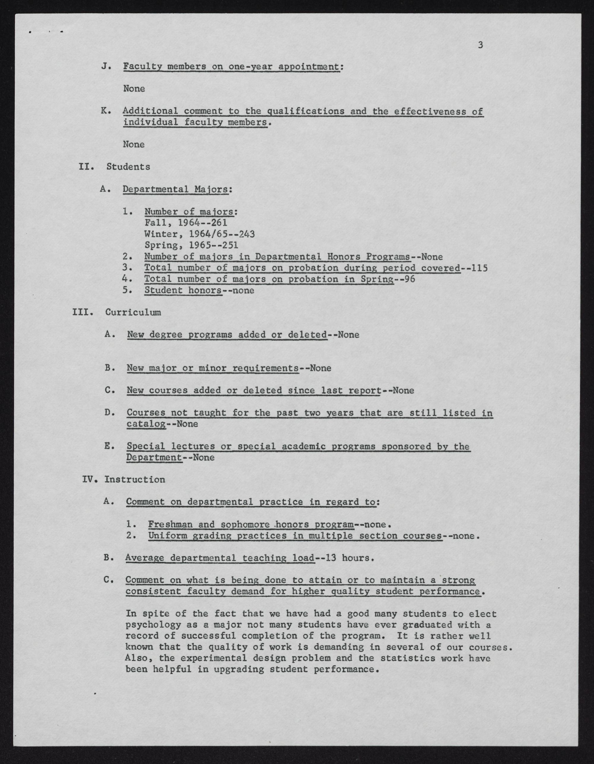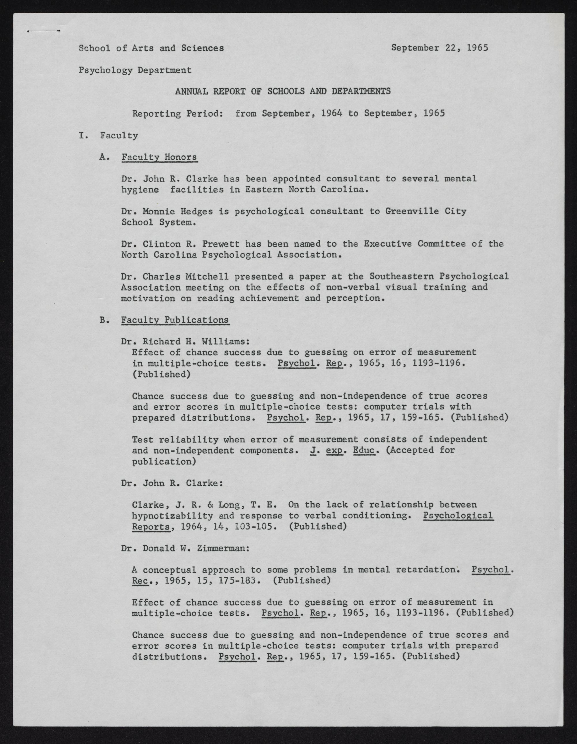 Annual Reports from the Records of the Department of Psychology (UA25-11) - 1964-1976