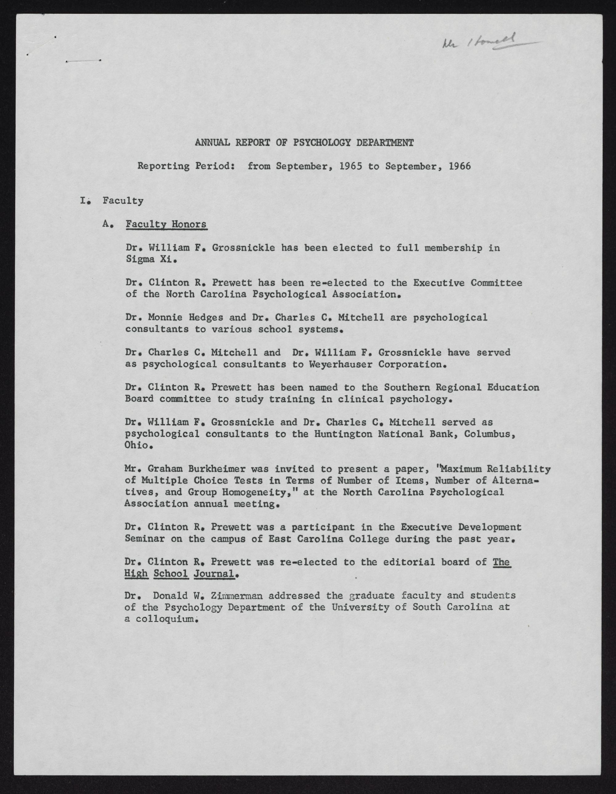 ANNUAL REPORT OF PSYCHOLOGY DEPARTMENT