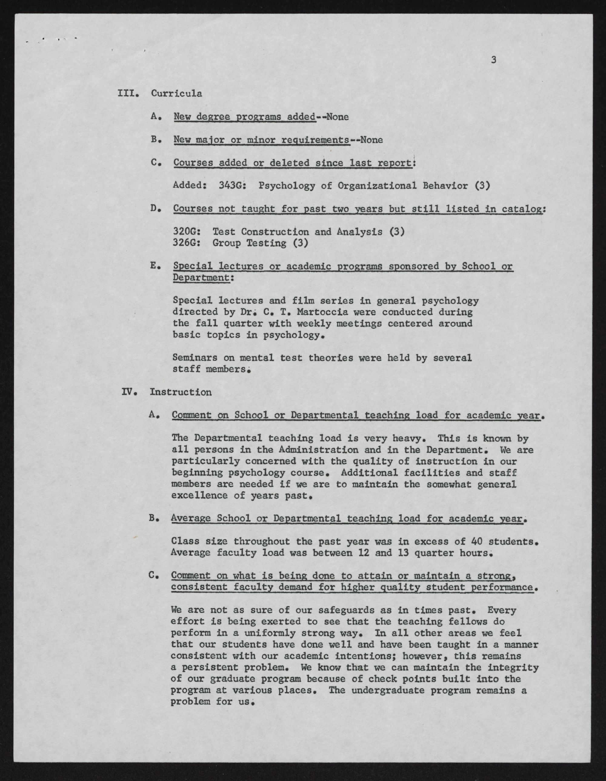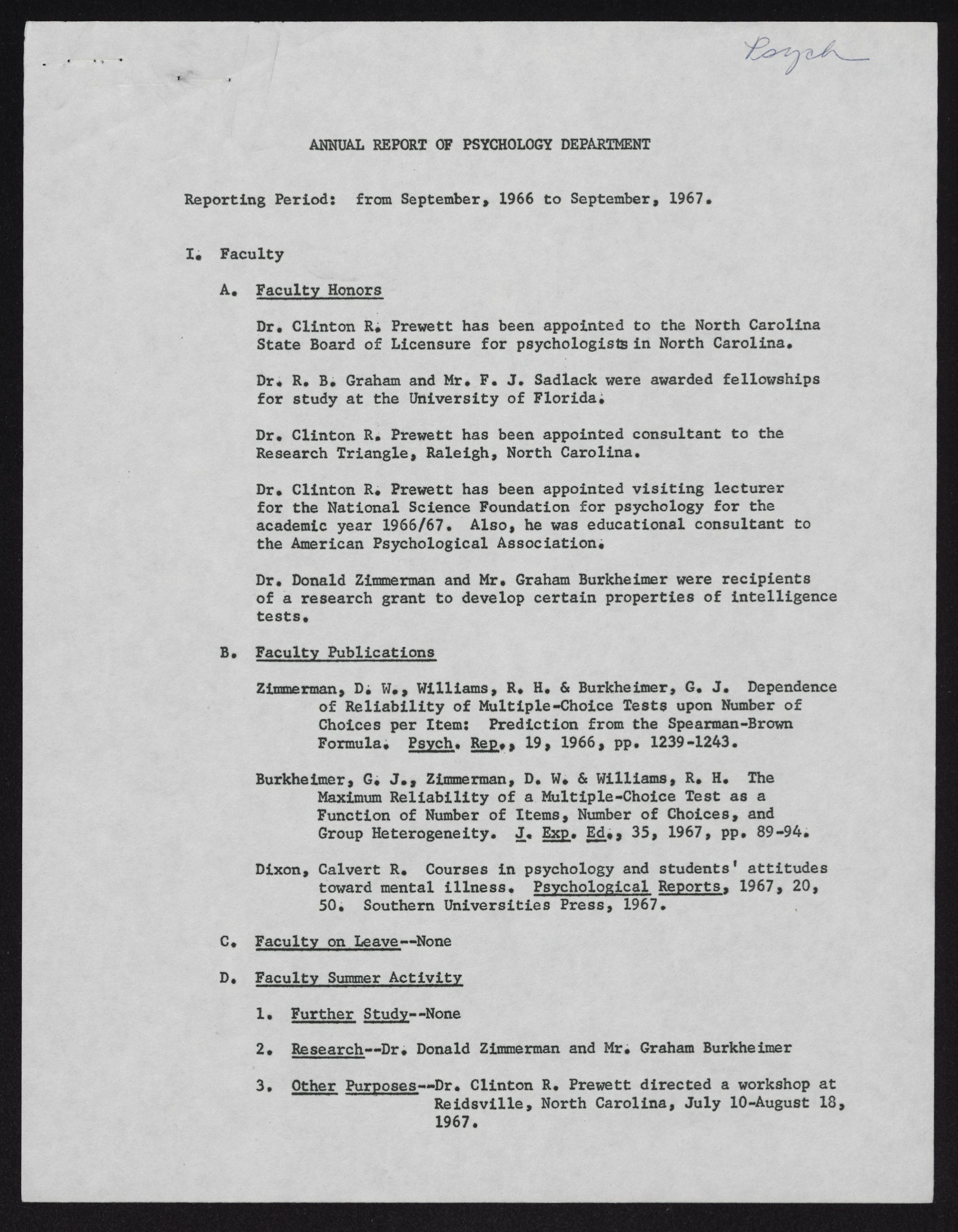 ANNUAL REPORT OF PSYCHOLOGY DEPARTMENT