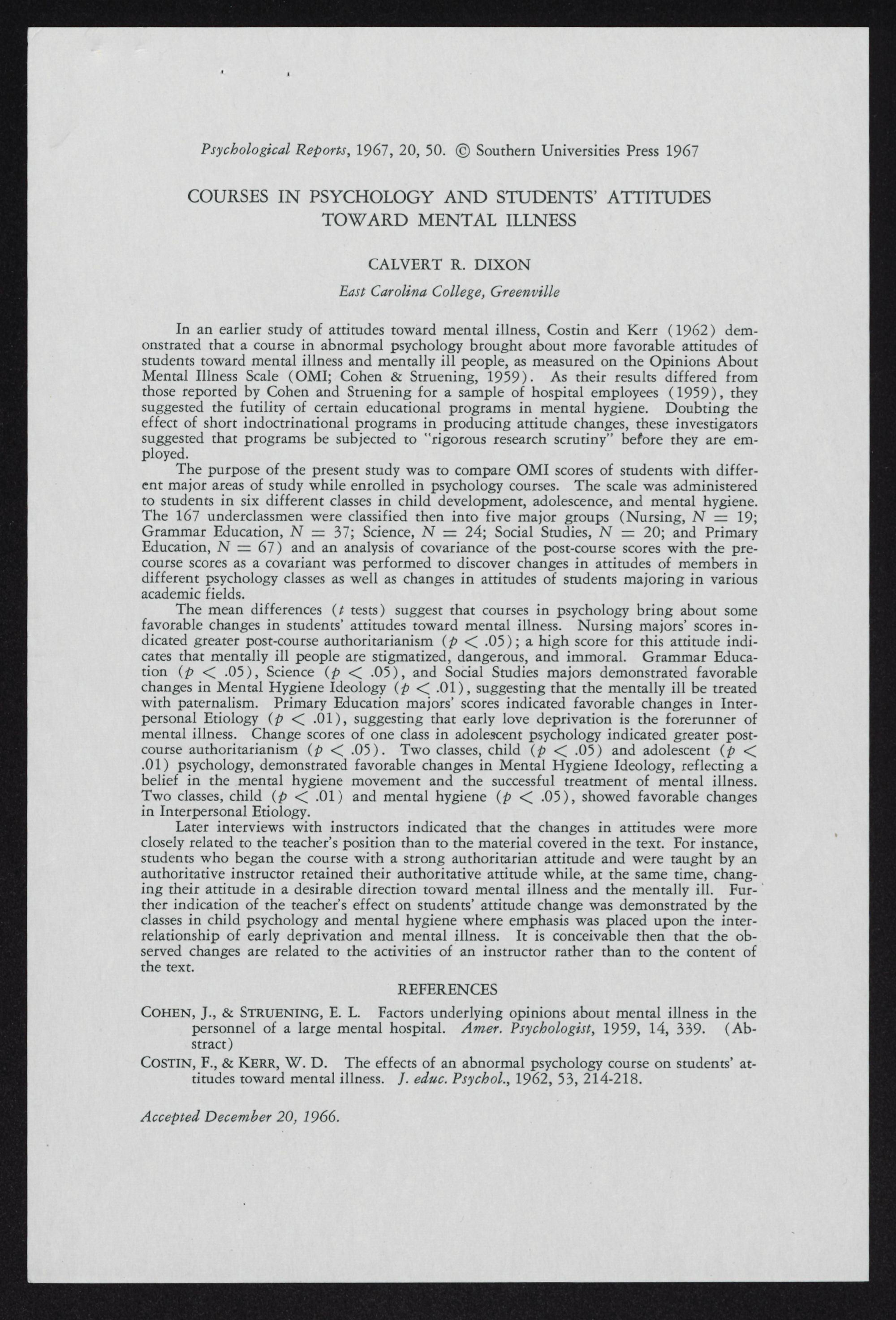 titudes toward mental illness. J. educ. Psychol., 1962, 53, 214-218.