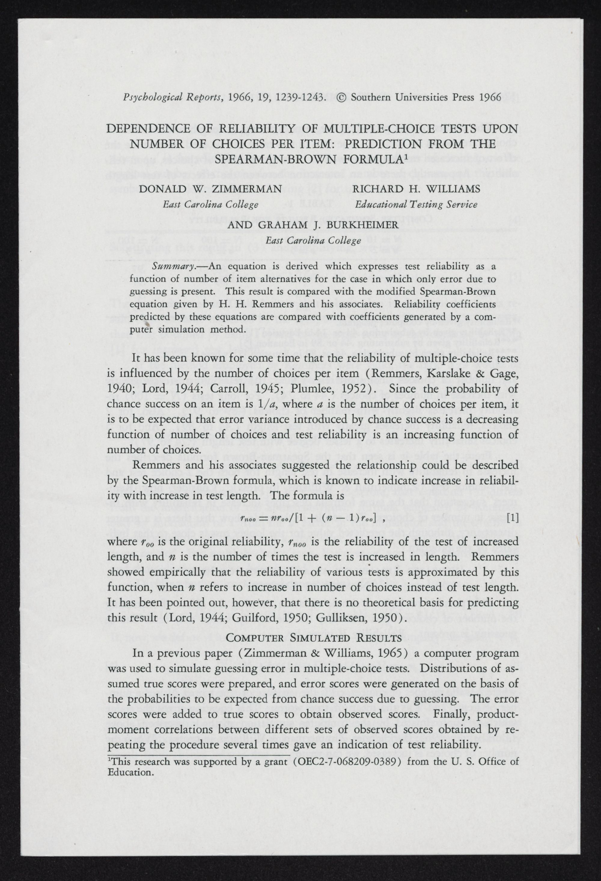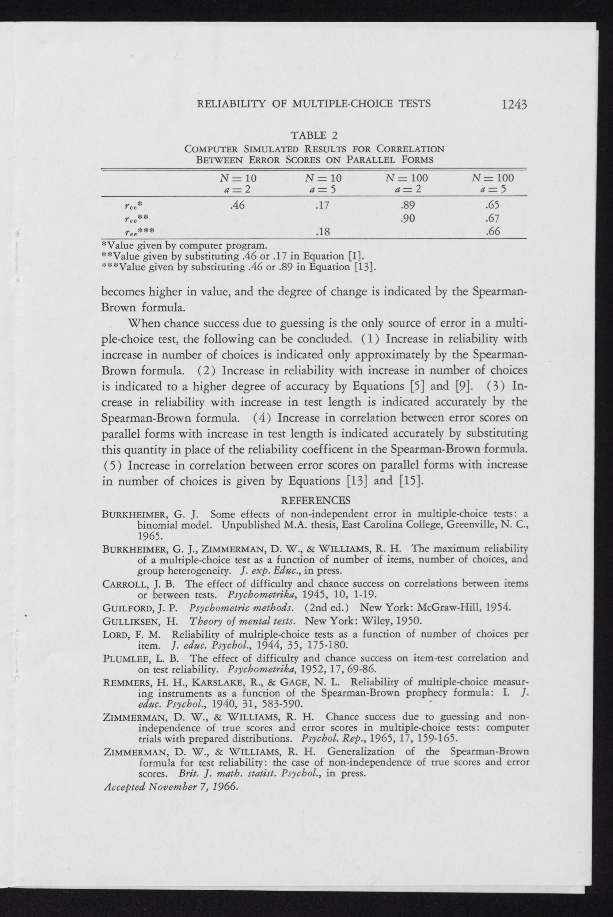 ZIMMERMAN, D. W., & WILLIAMS, R. H. Chance success due to guessing and non-