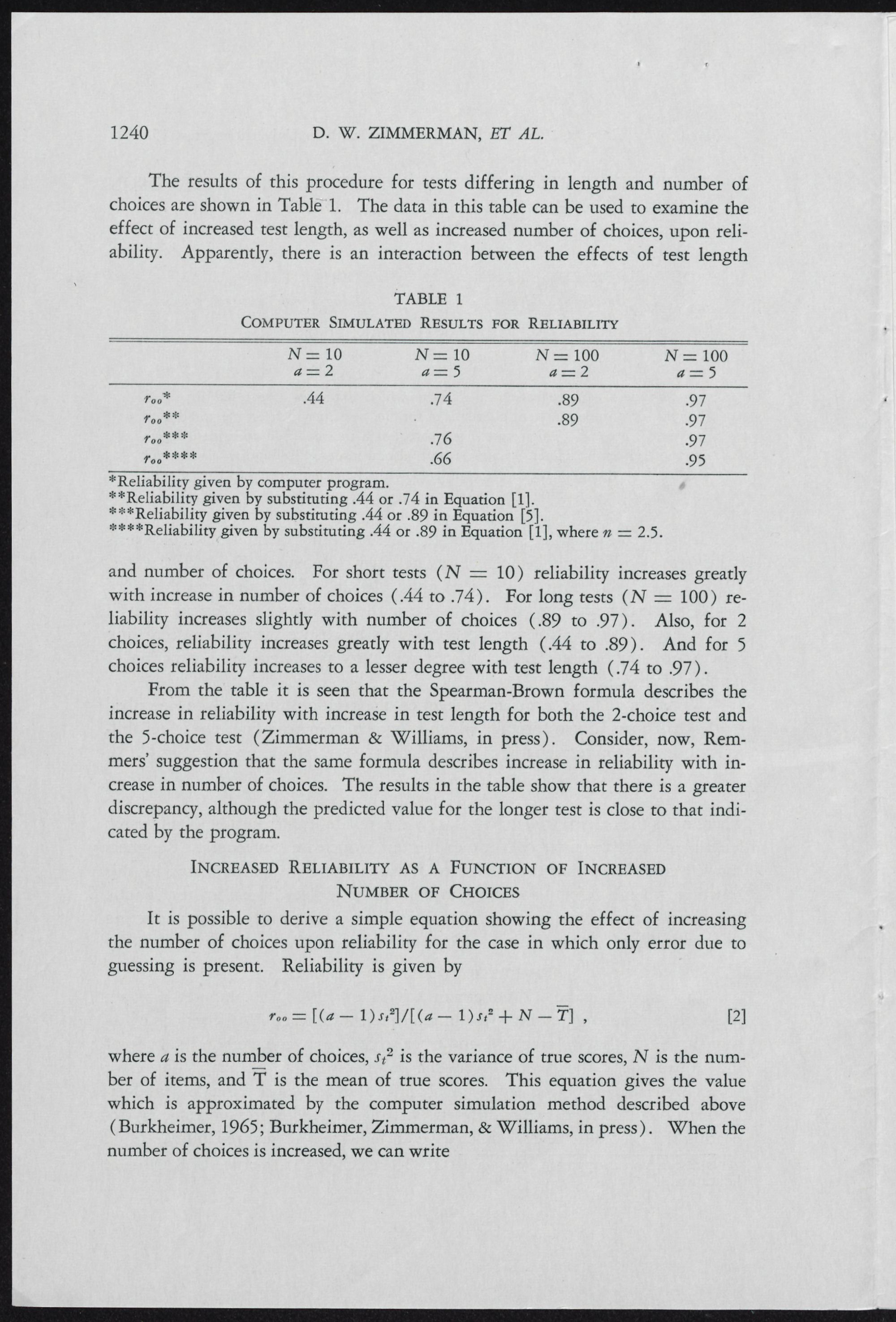 BURKHEIMER, G. J., ZIMMERMAN, D. W., & WILLIAMS, R. H. The maximum reliability