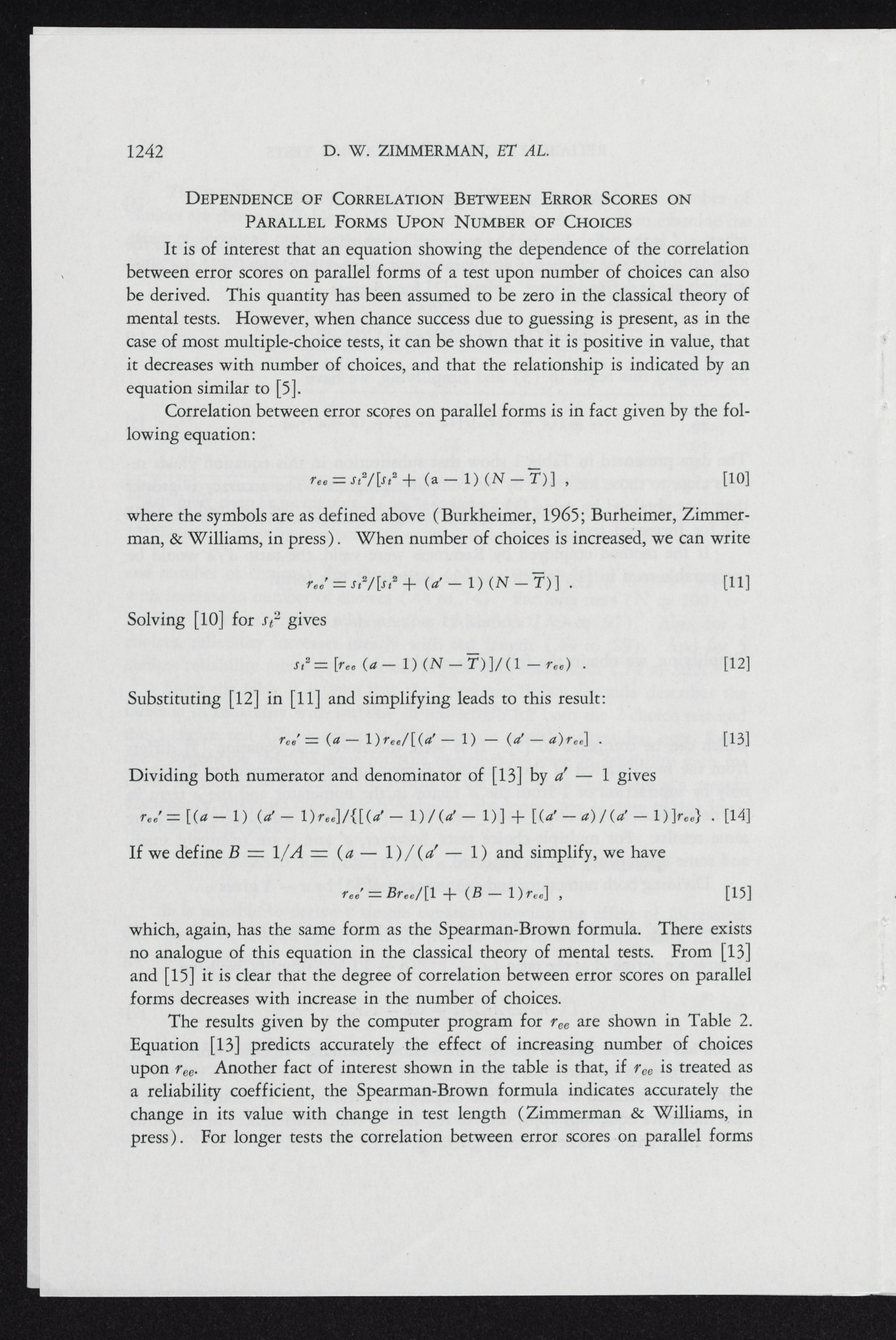 ZIMMERMAN, D. W., & WILLIAMS, R. H. Generalization of the Spearman-Brown