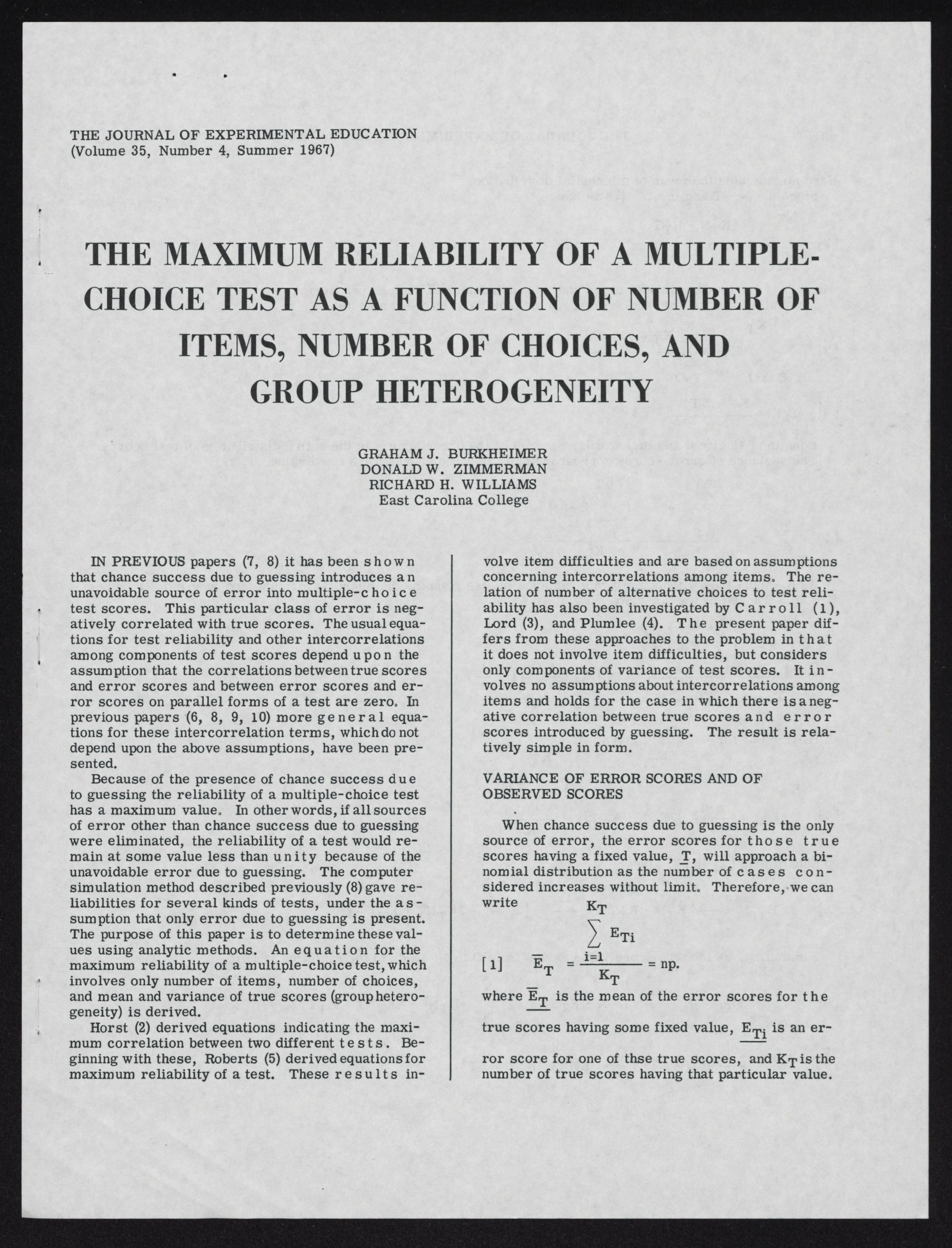 3. Lord, F. M., ~~Reliability of Multiple-Choice