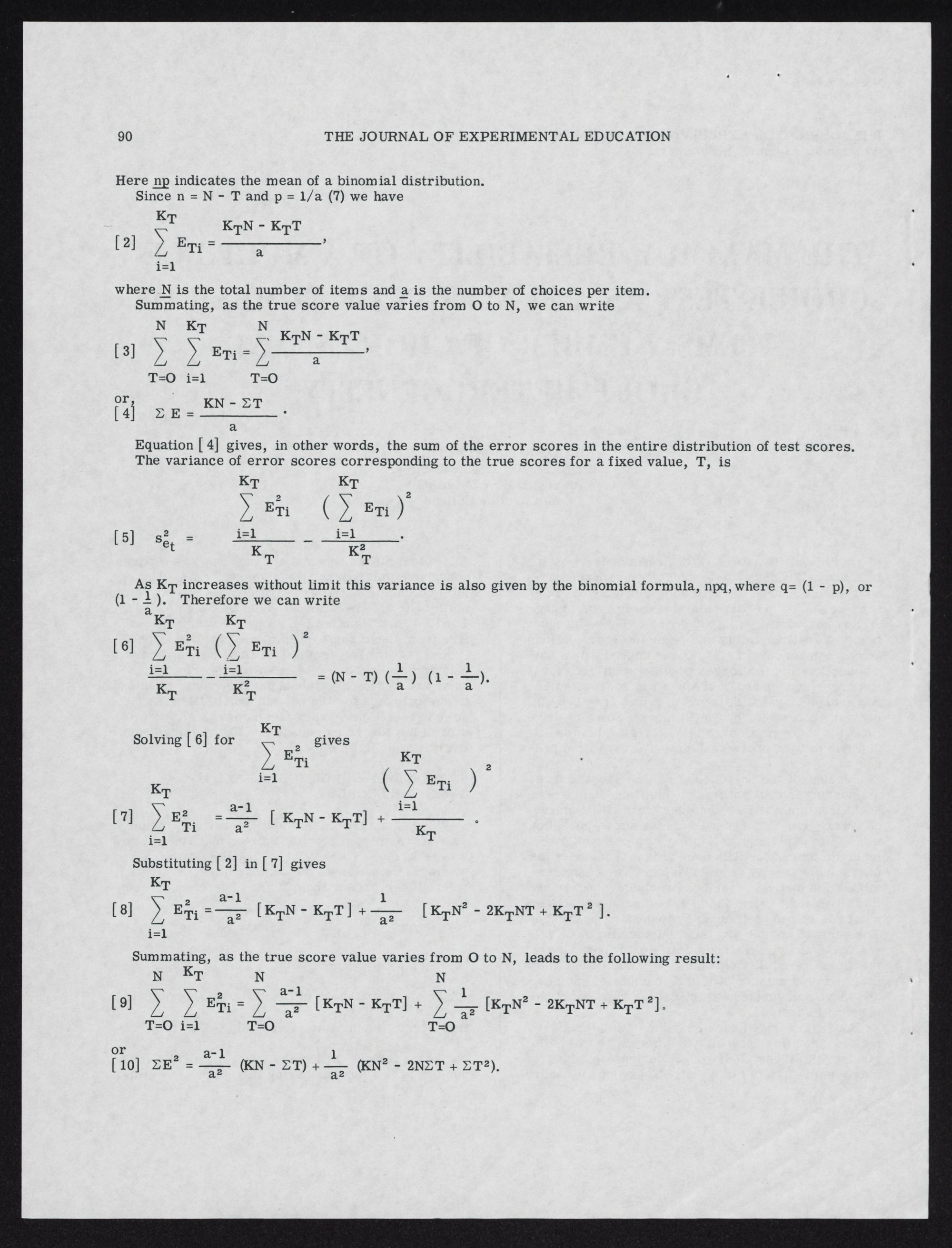 Equation [ 4] gives, in other words, the sum of the error scores in the entire distribution of test scores