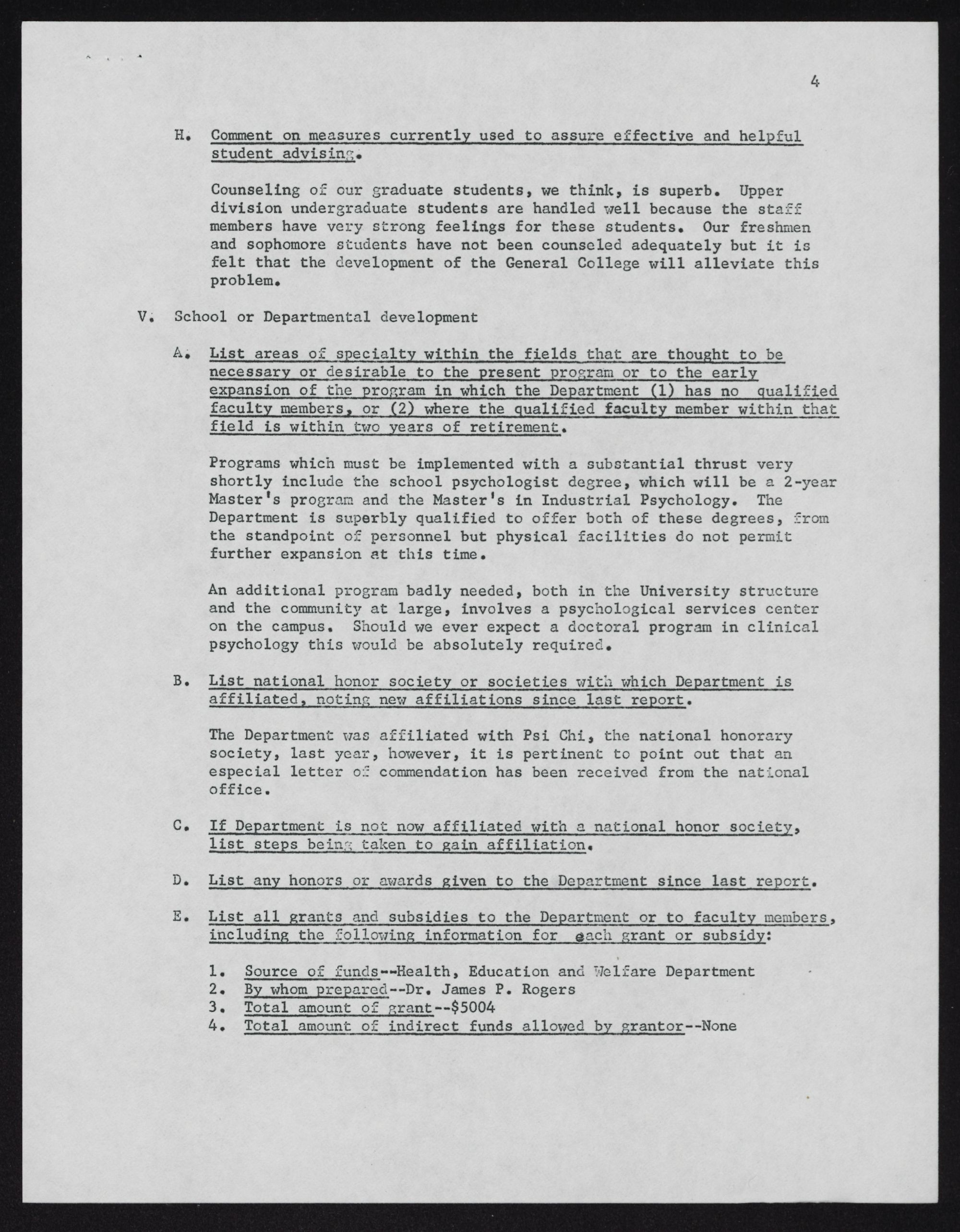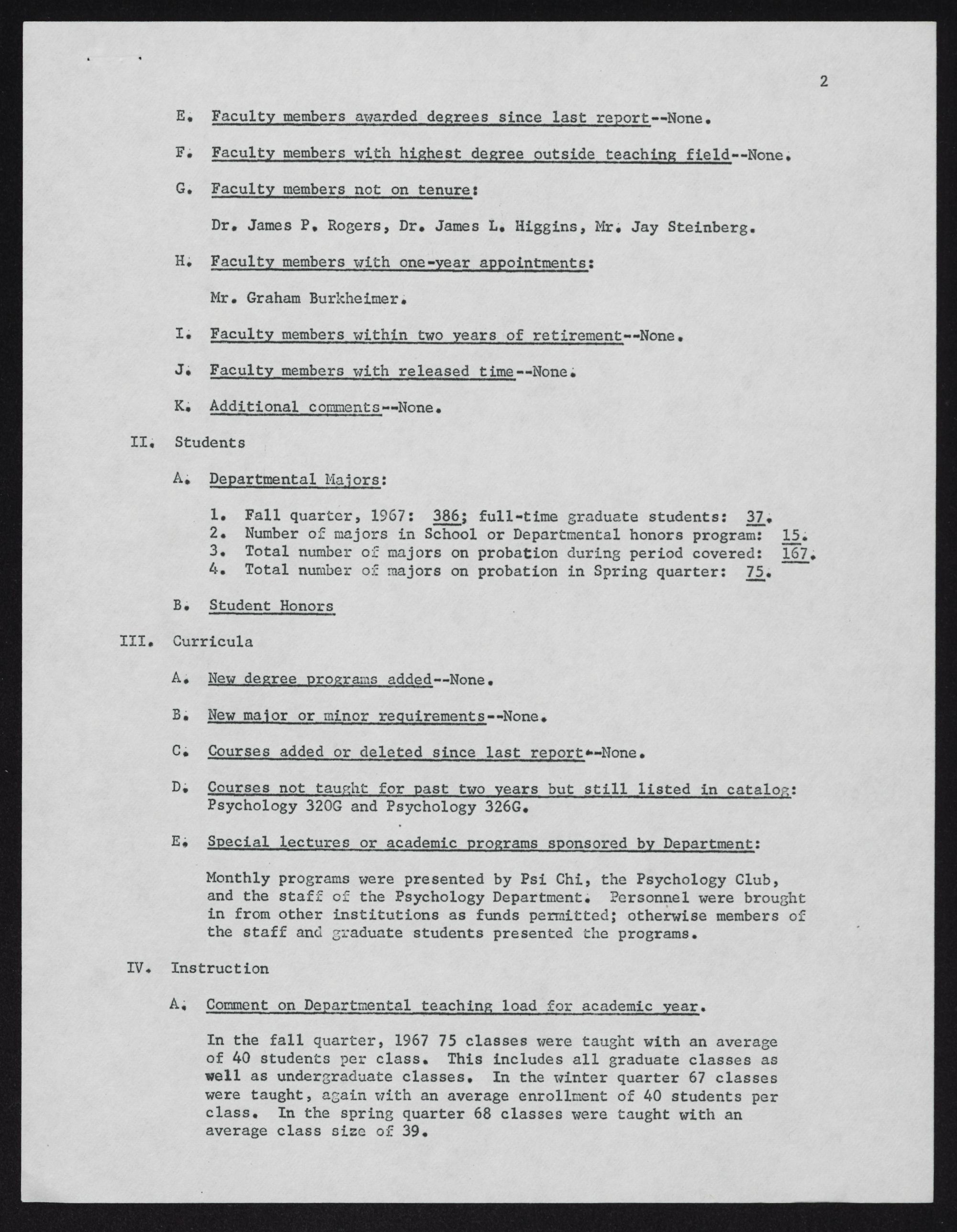 The Department was affiliated with Psi Chi, the national honorary