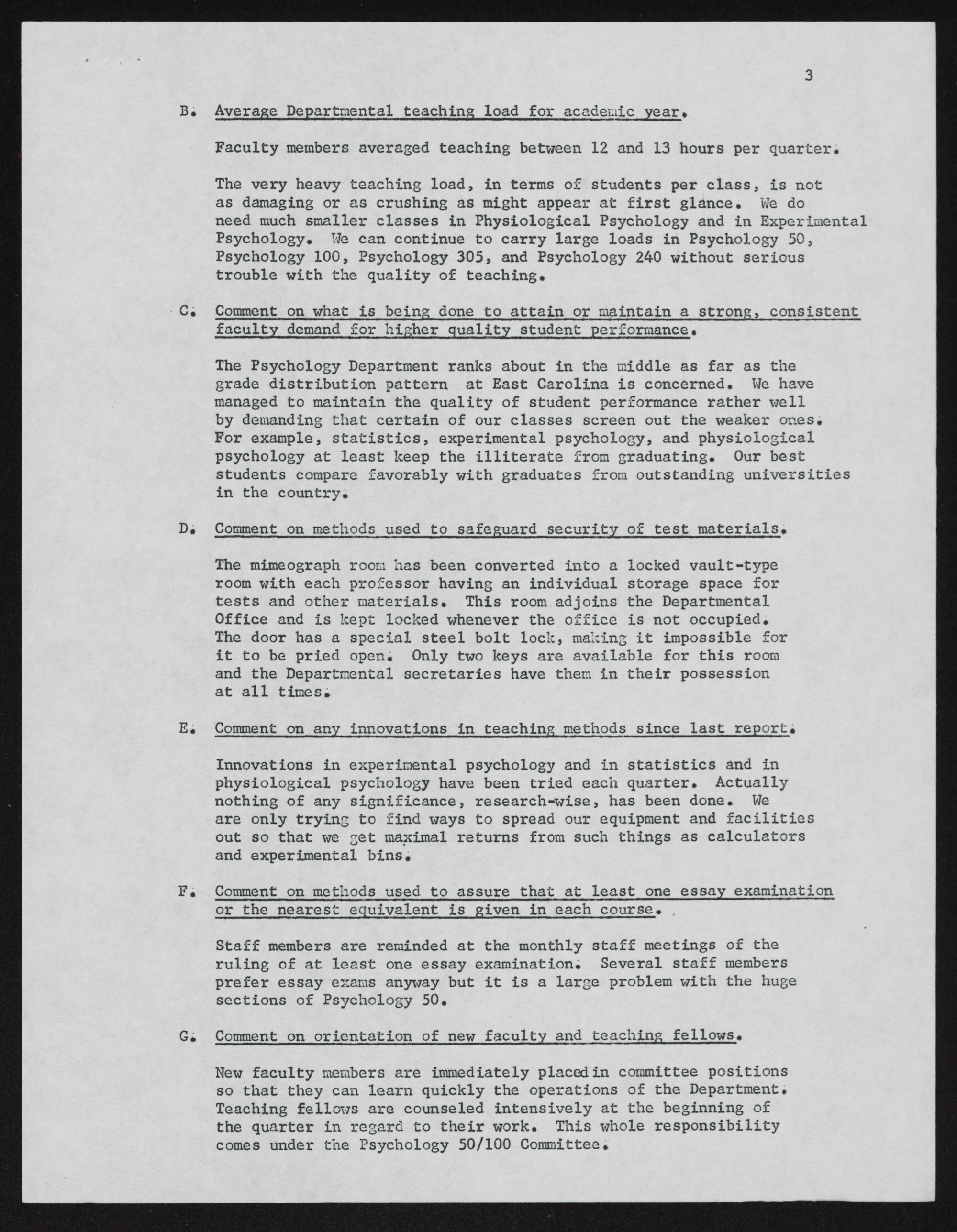 A. Comment on Departmental teaching load for academic year.