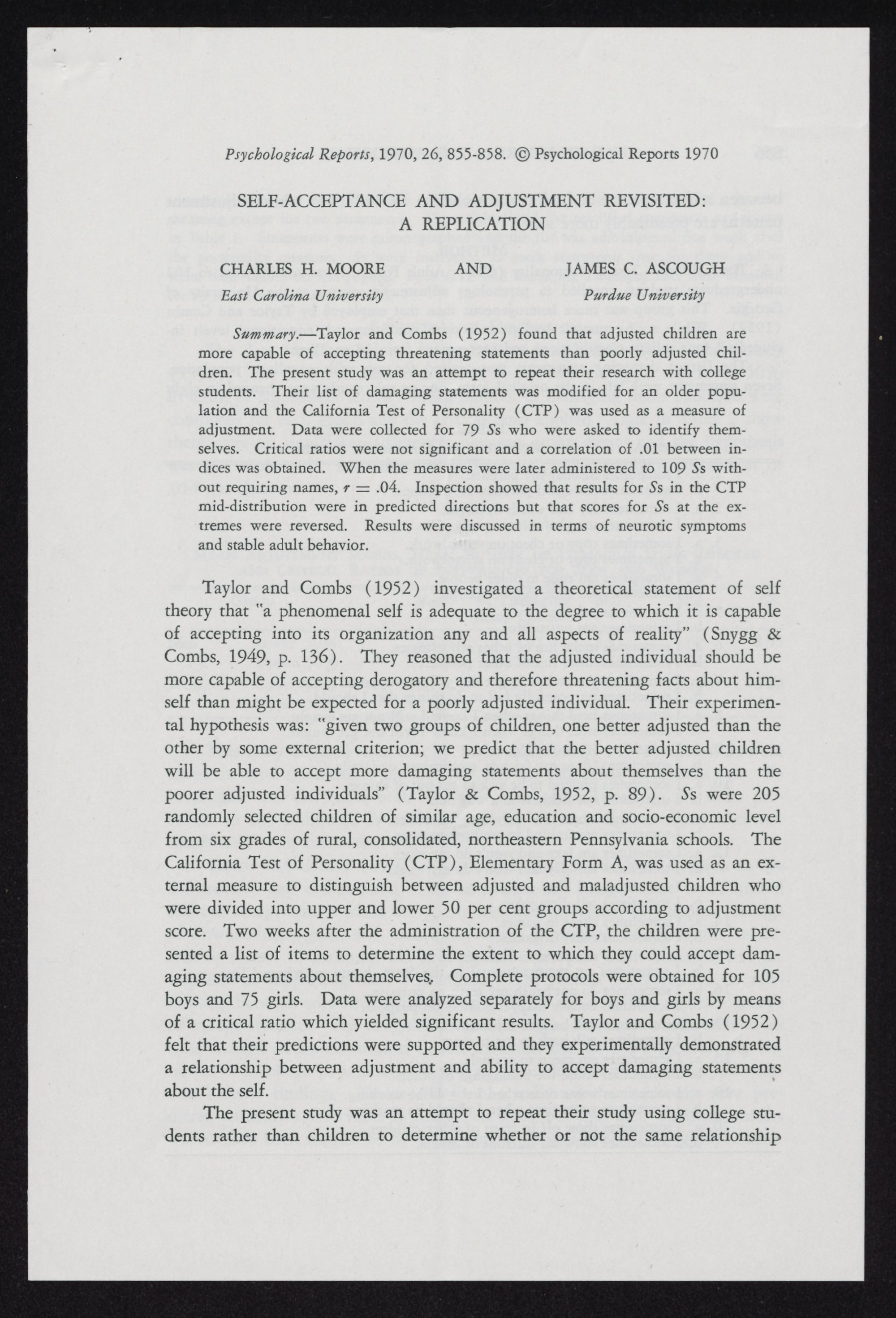 SELF-ACCEPTANCE AND ADJUSTMENT 857