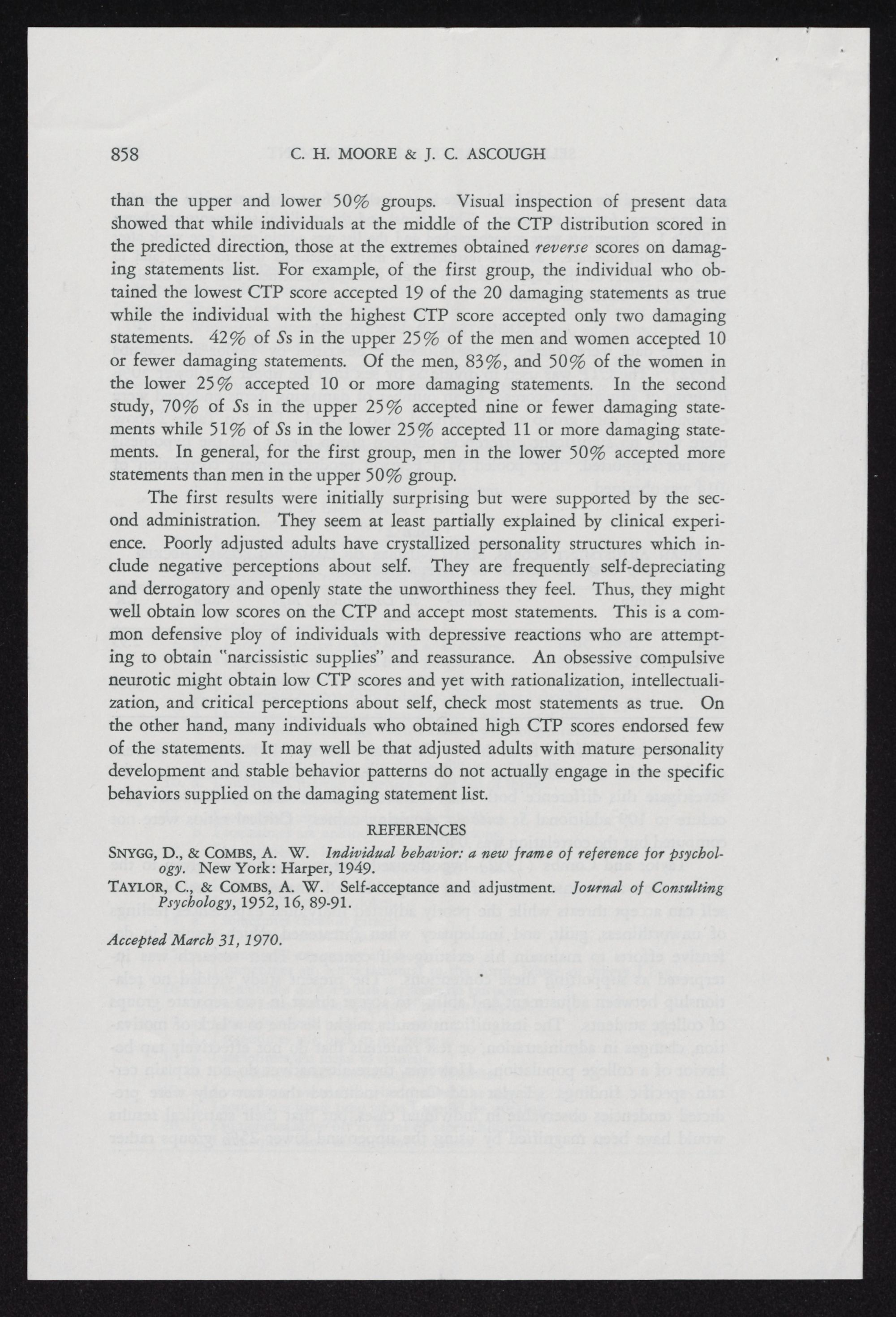 poorer adjusted individuals? (~Taylor & Combs, 1952, p. 89). Ss were 205