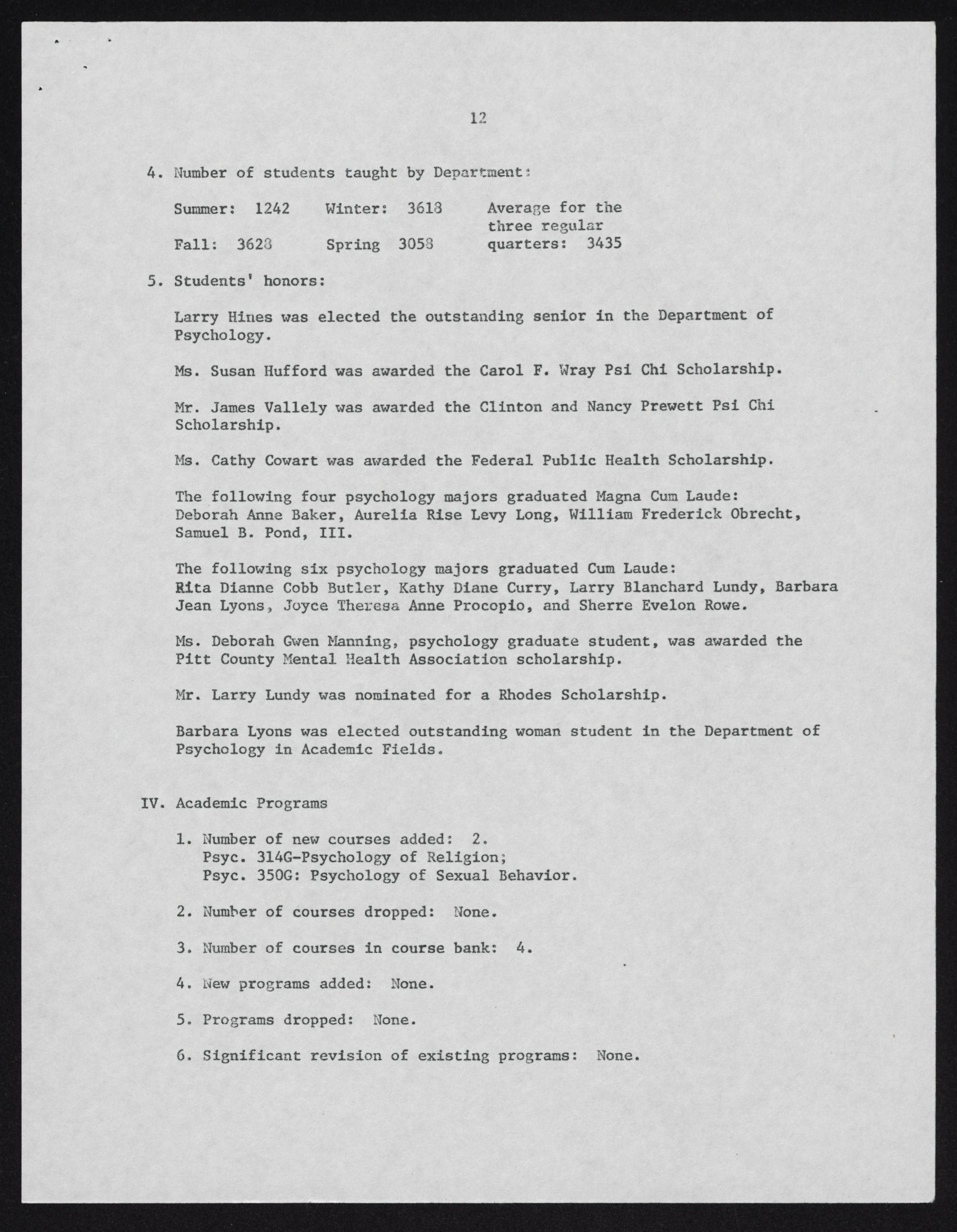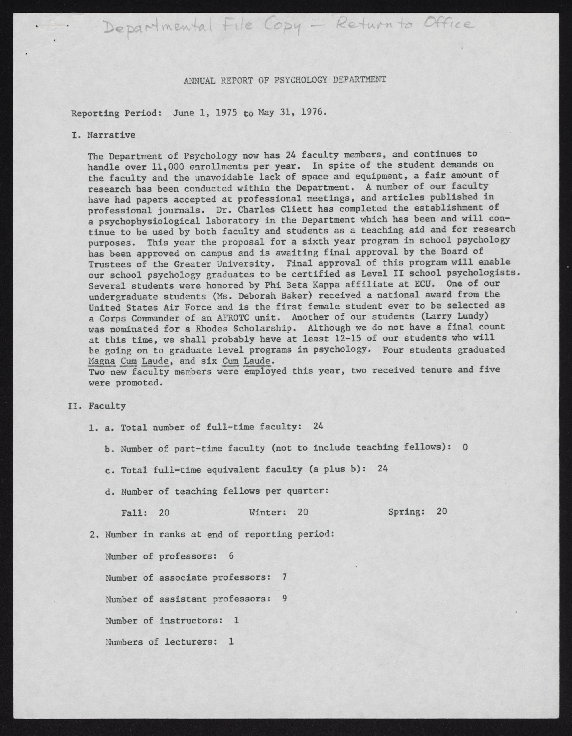 ANNUAL REPORT OF PSYCHOLOGY DEPARTMENT
