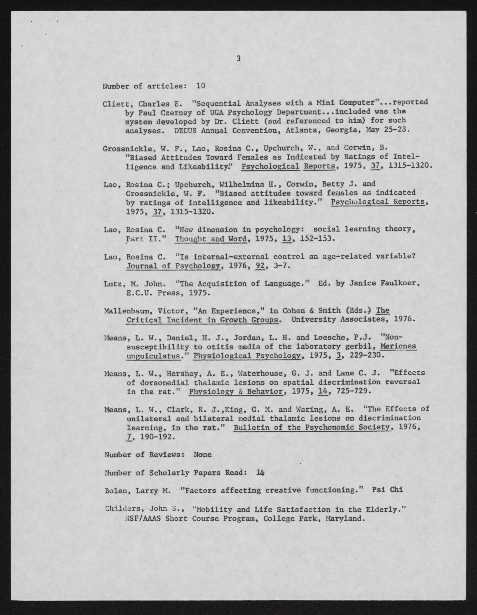 Means, L. W., Clark, R. J.,King, G. M. and Waring, A. E. "The Effects of