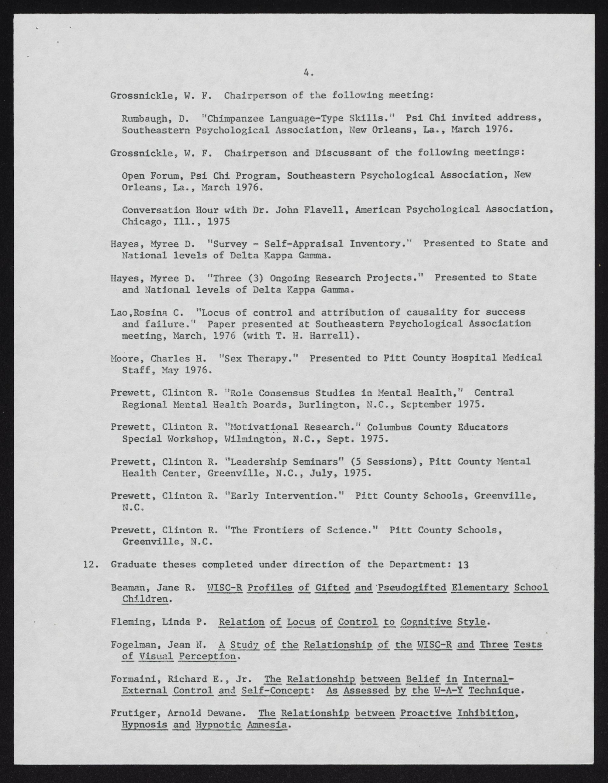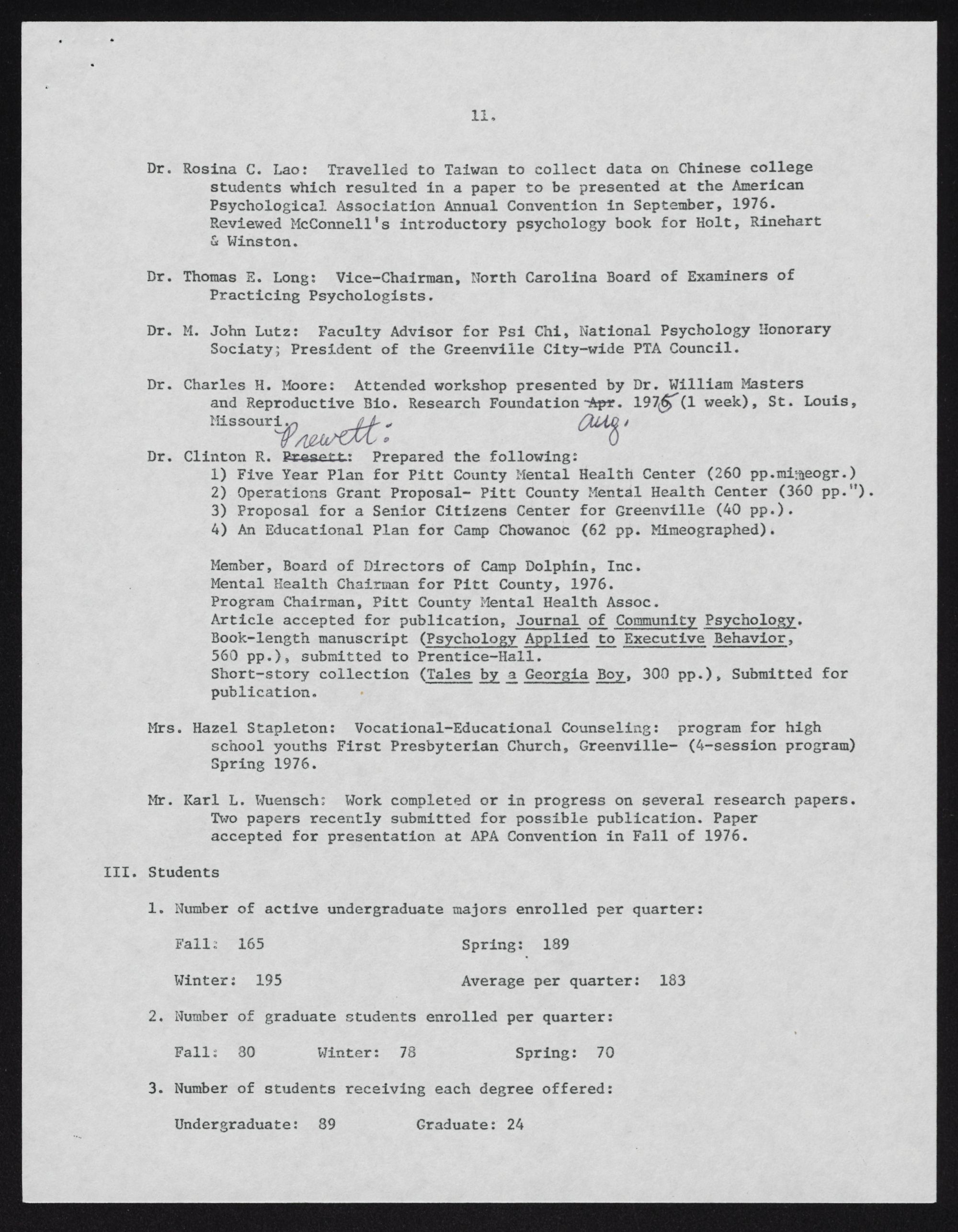 Larry M. Bolen, Ed.D., Assistant Professor; Karl Wuensch, M.4., Instructor.