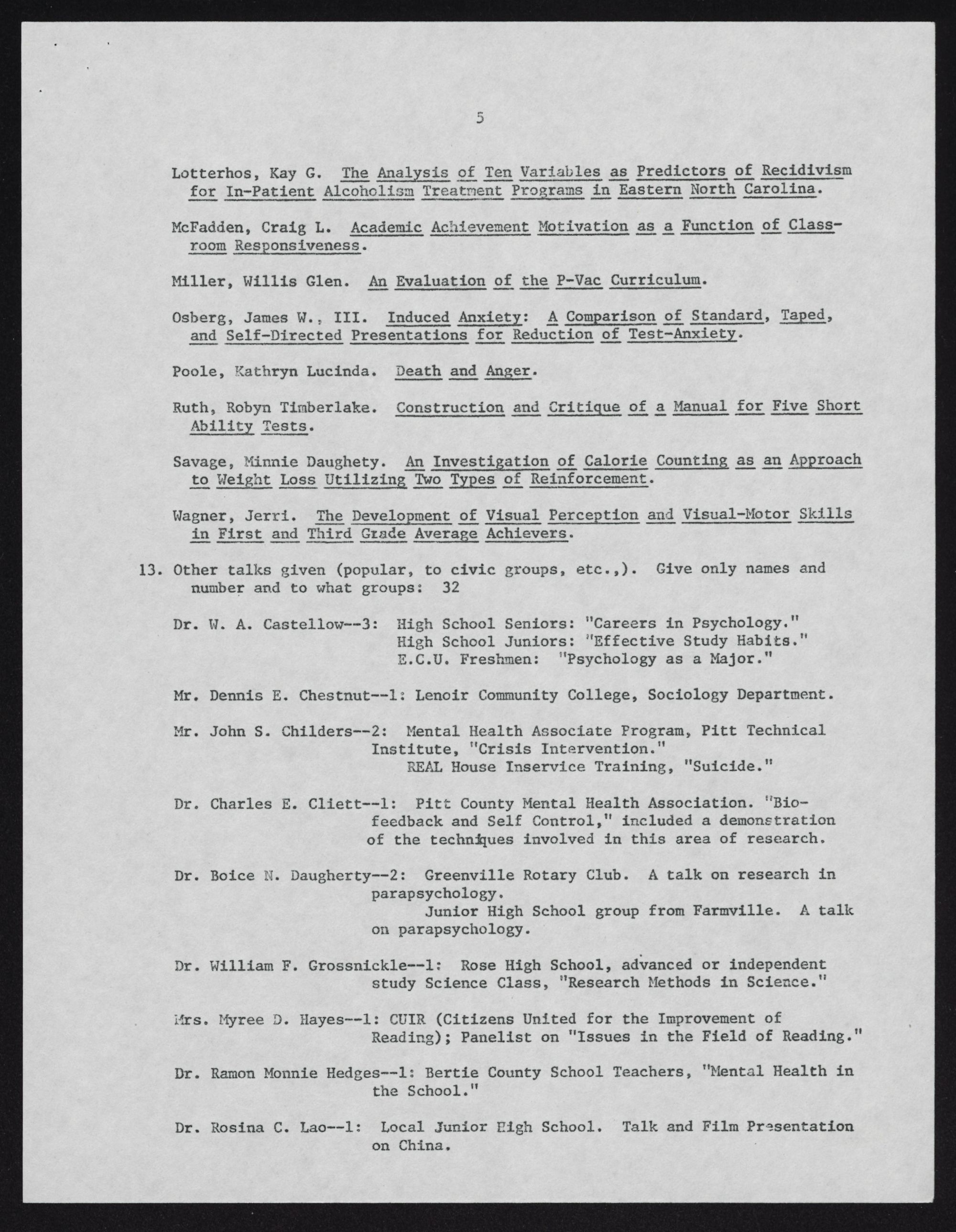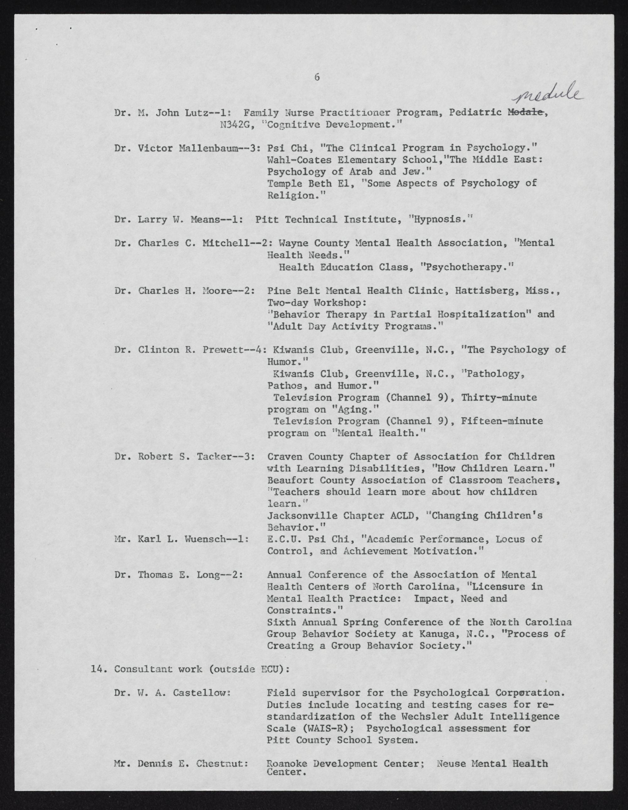 Mr. Karl L. Wuensch: Work completed or in progress on several research papers.