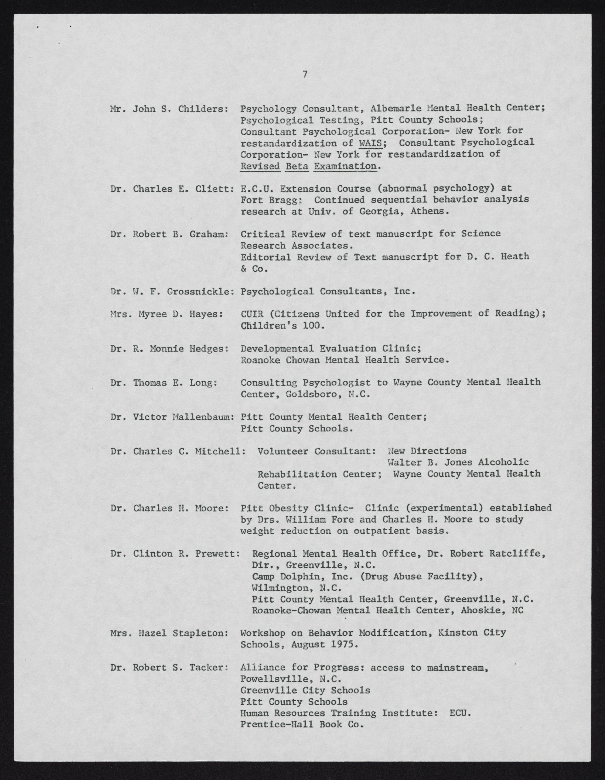 John S. Childers-~Establishment of S.A.G.E. in North Carolina. N. C.