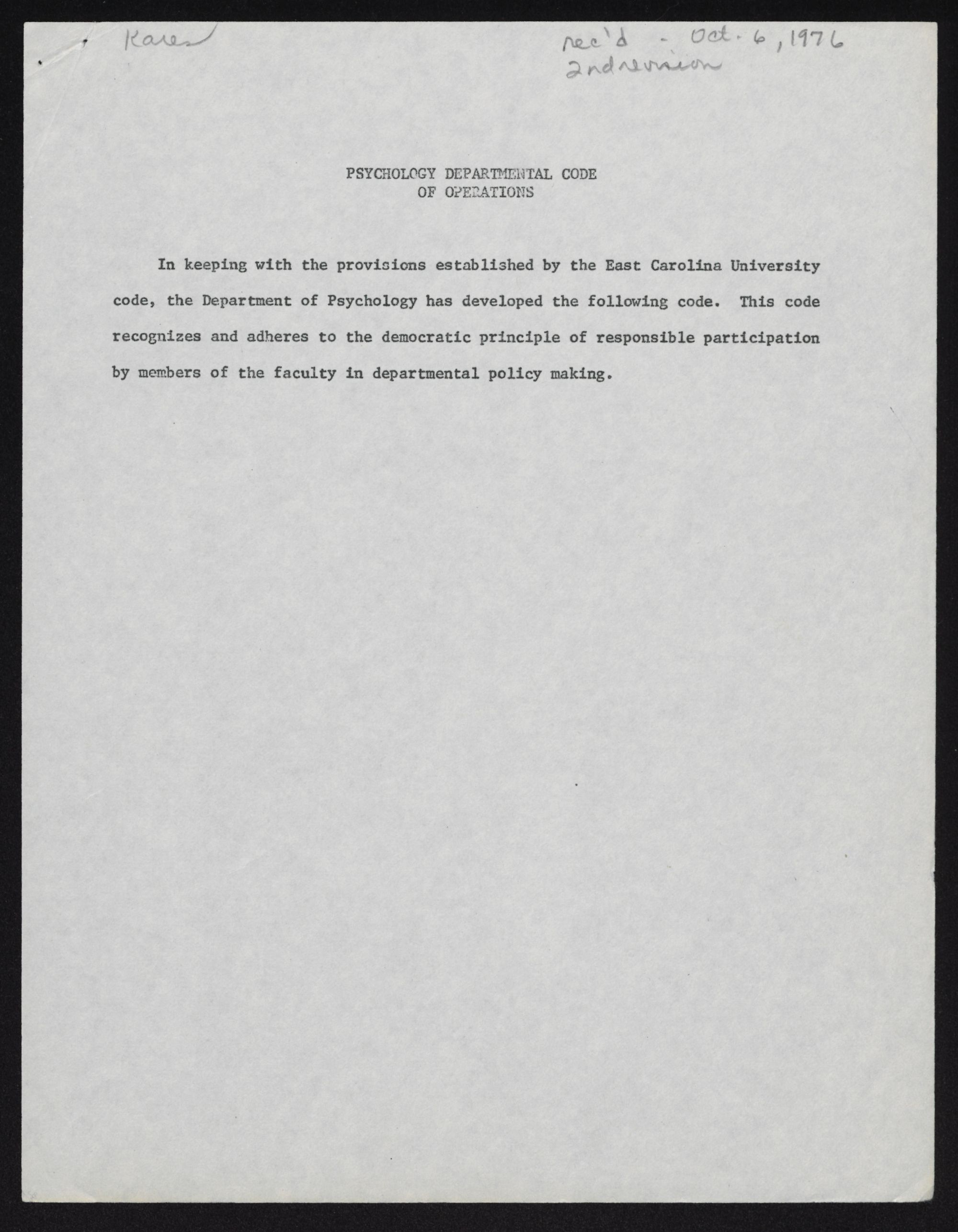 Psychology Department Code of Operations (PDCO) shall be an instrument constructed