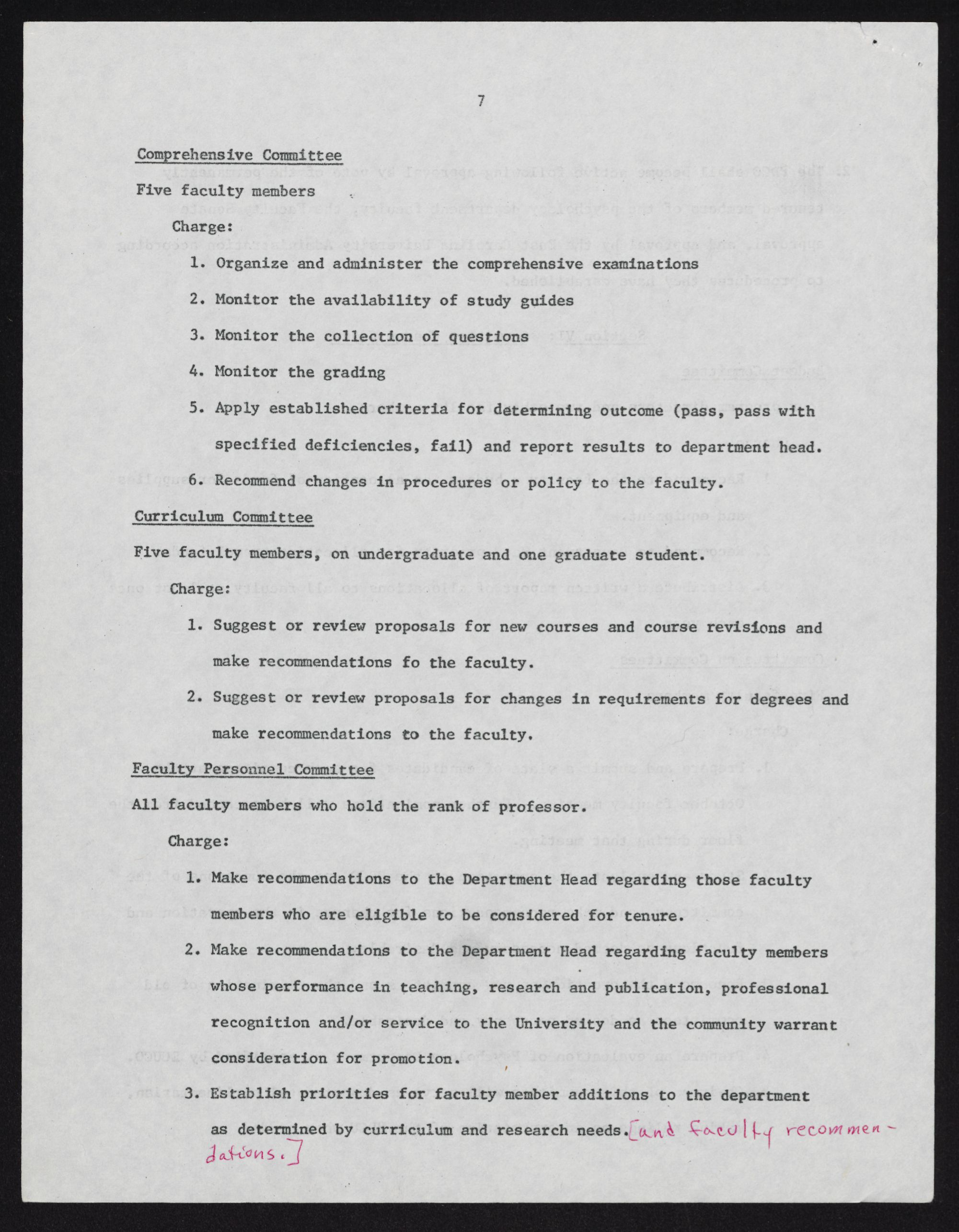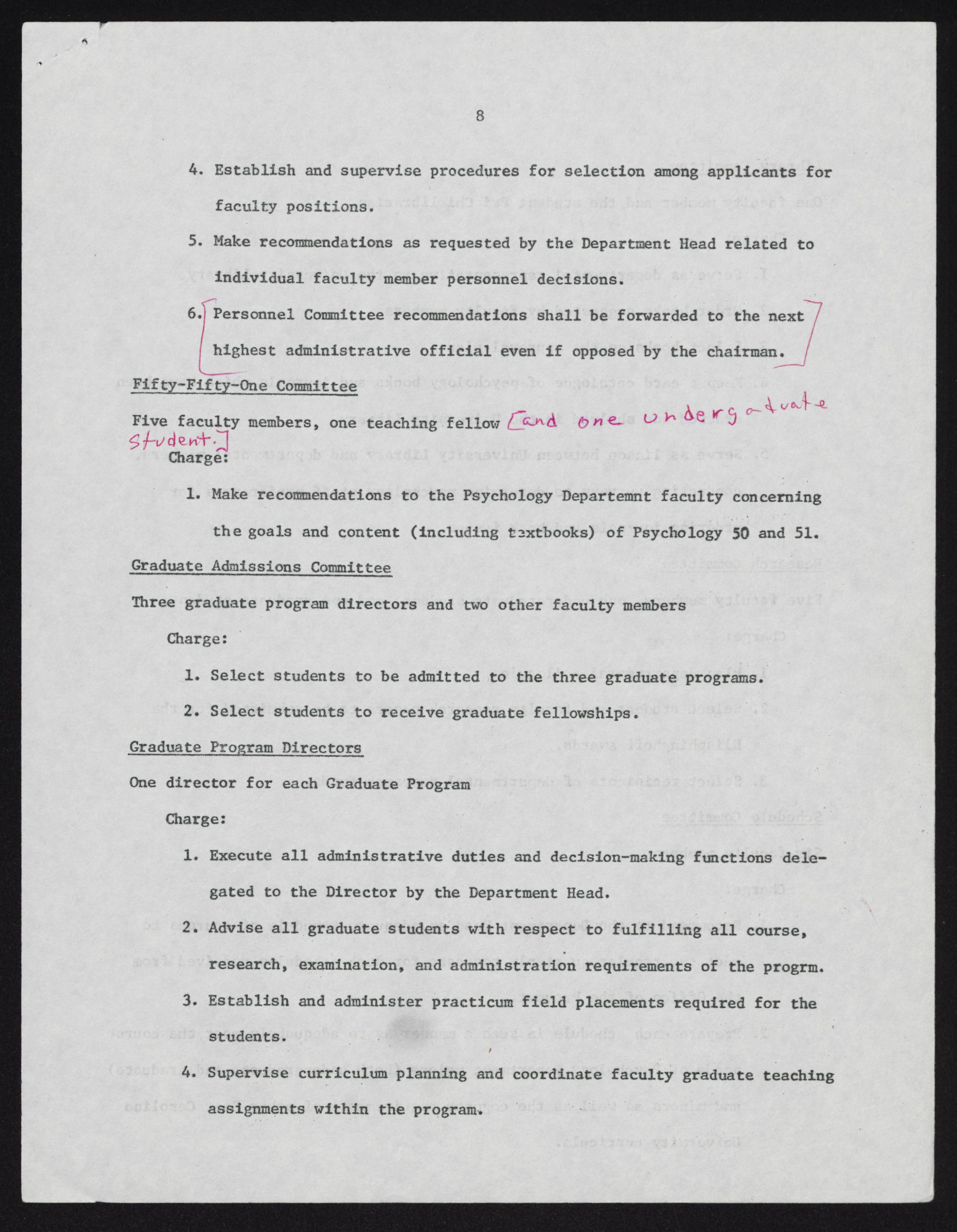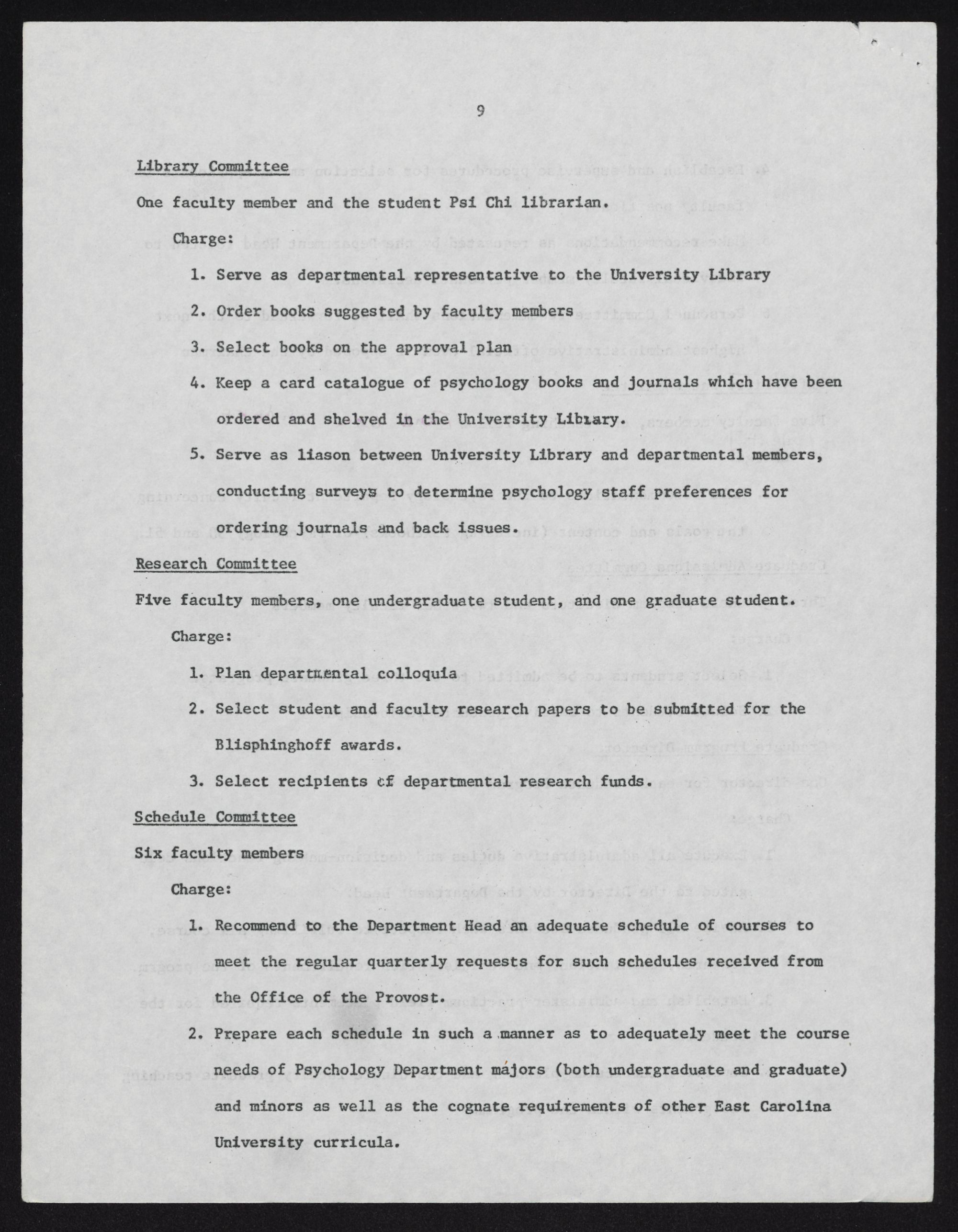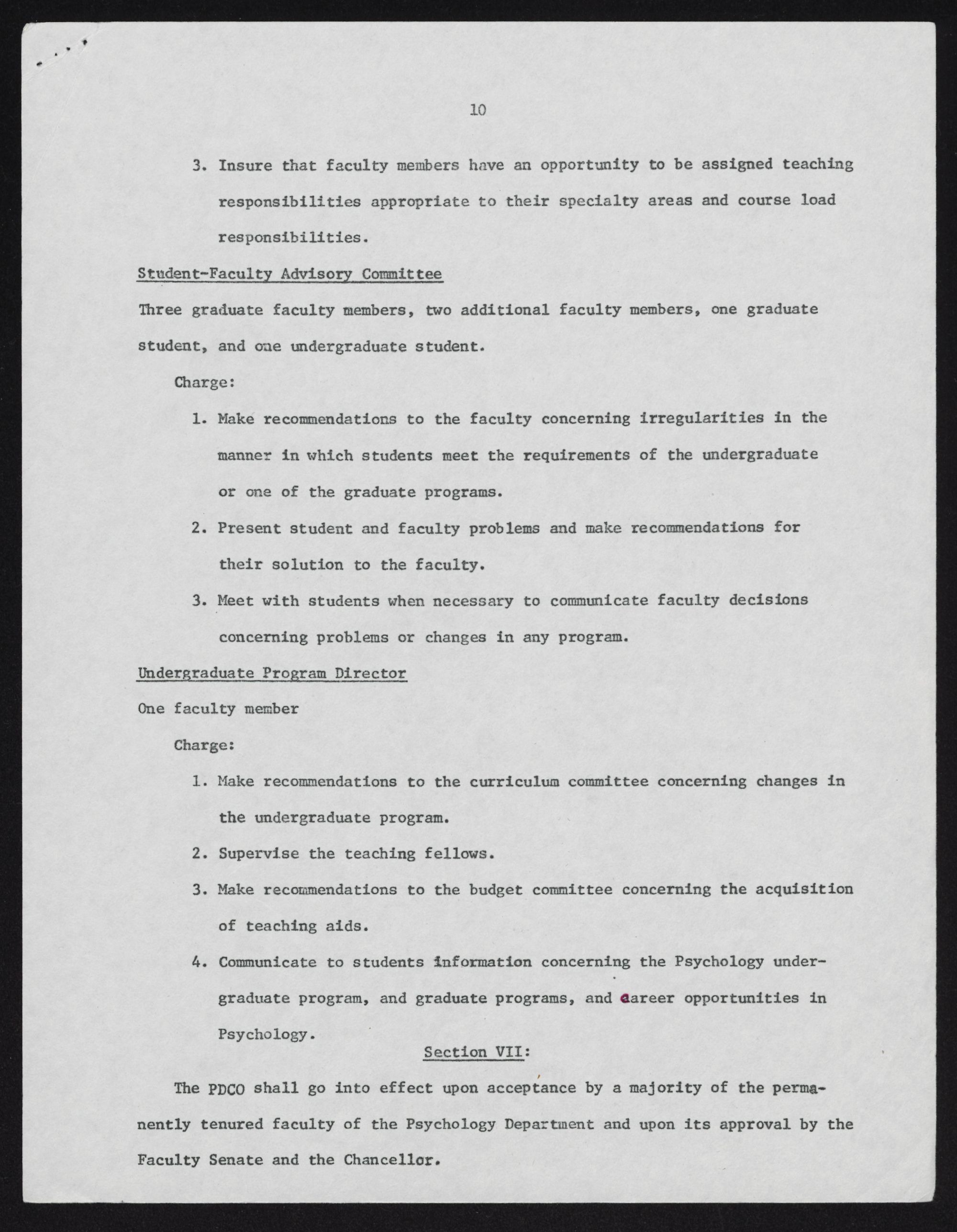 1. Make recommendations to the Psychology Departemnt faculty concerning