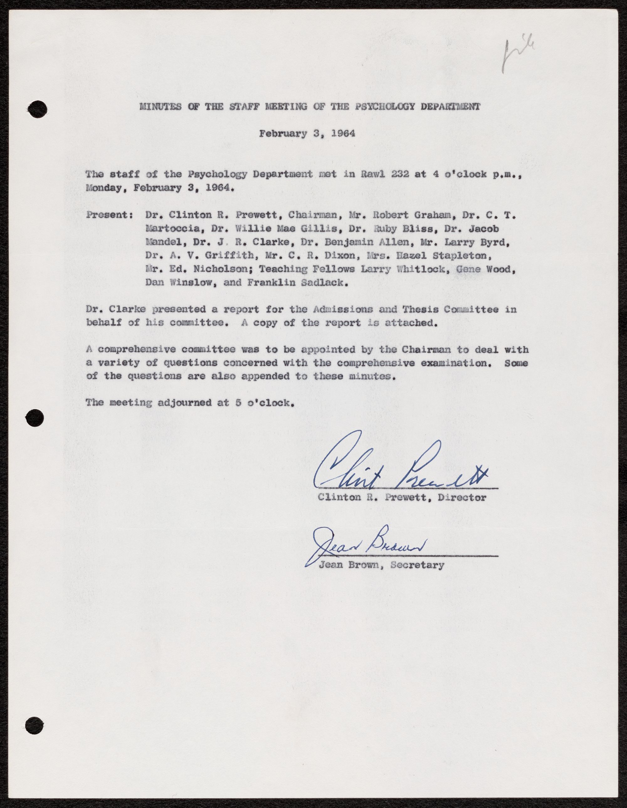 MINUTES OF THE STAFF MEETING OF THE PSYCHOLOGY DEPARTMENT