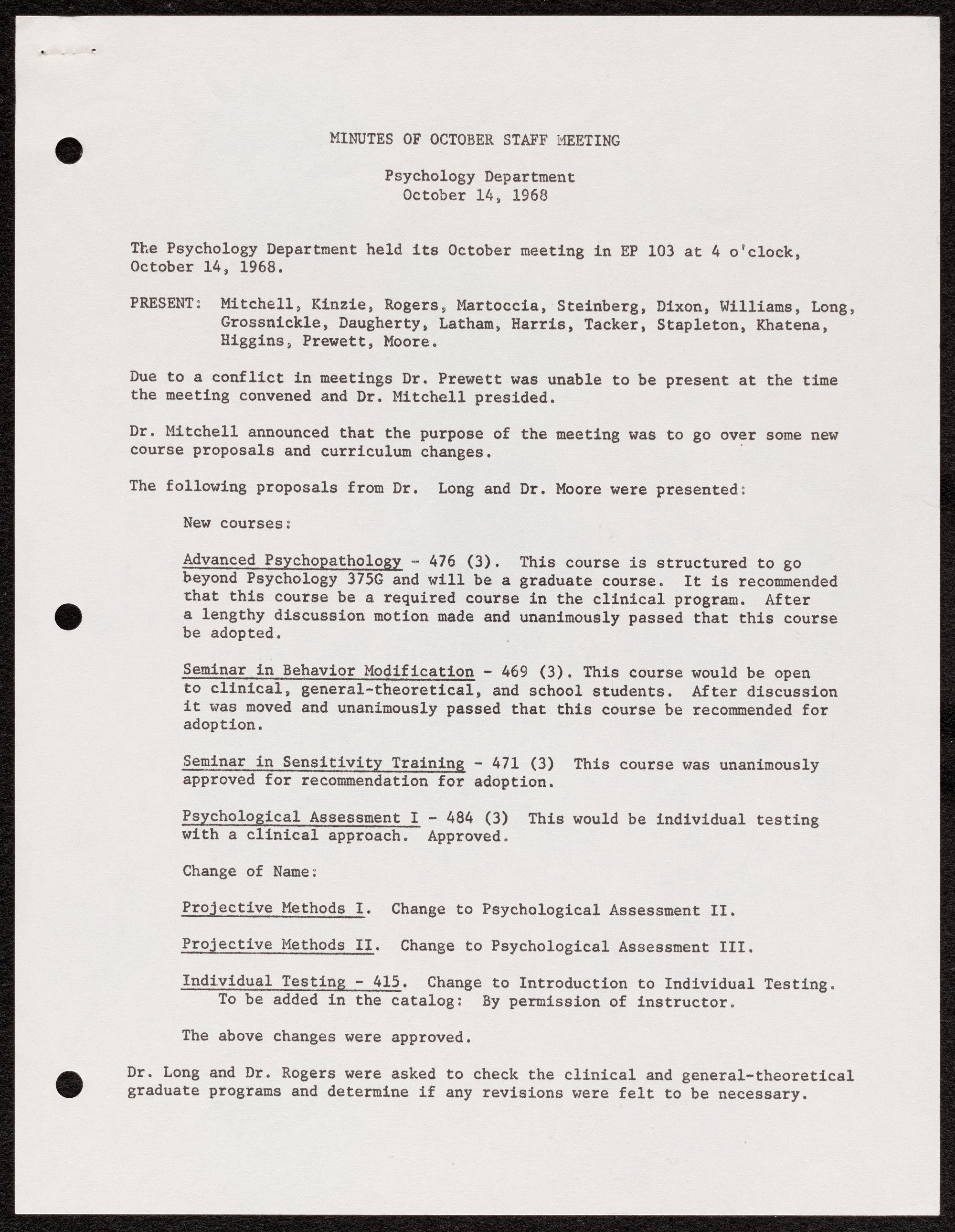 Dr. Mitchell announced that the purpose of the meeting was to go over some new