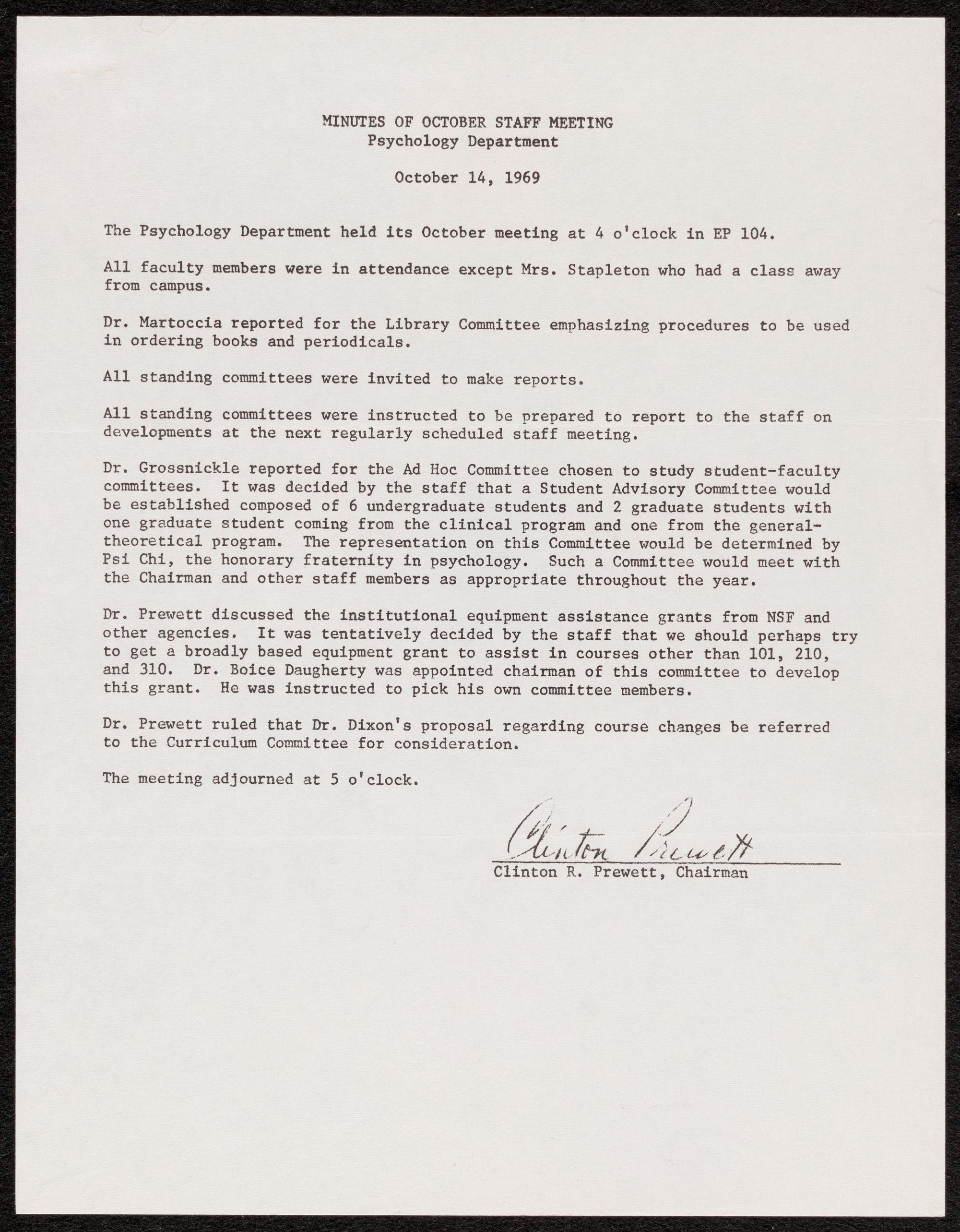 The Psychology Department held its October meeting at 4 o'clock in EP 104.