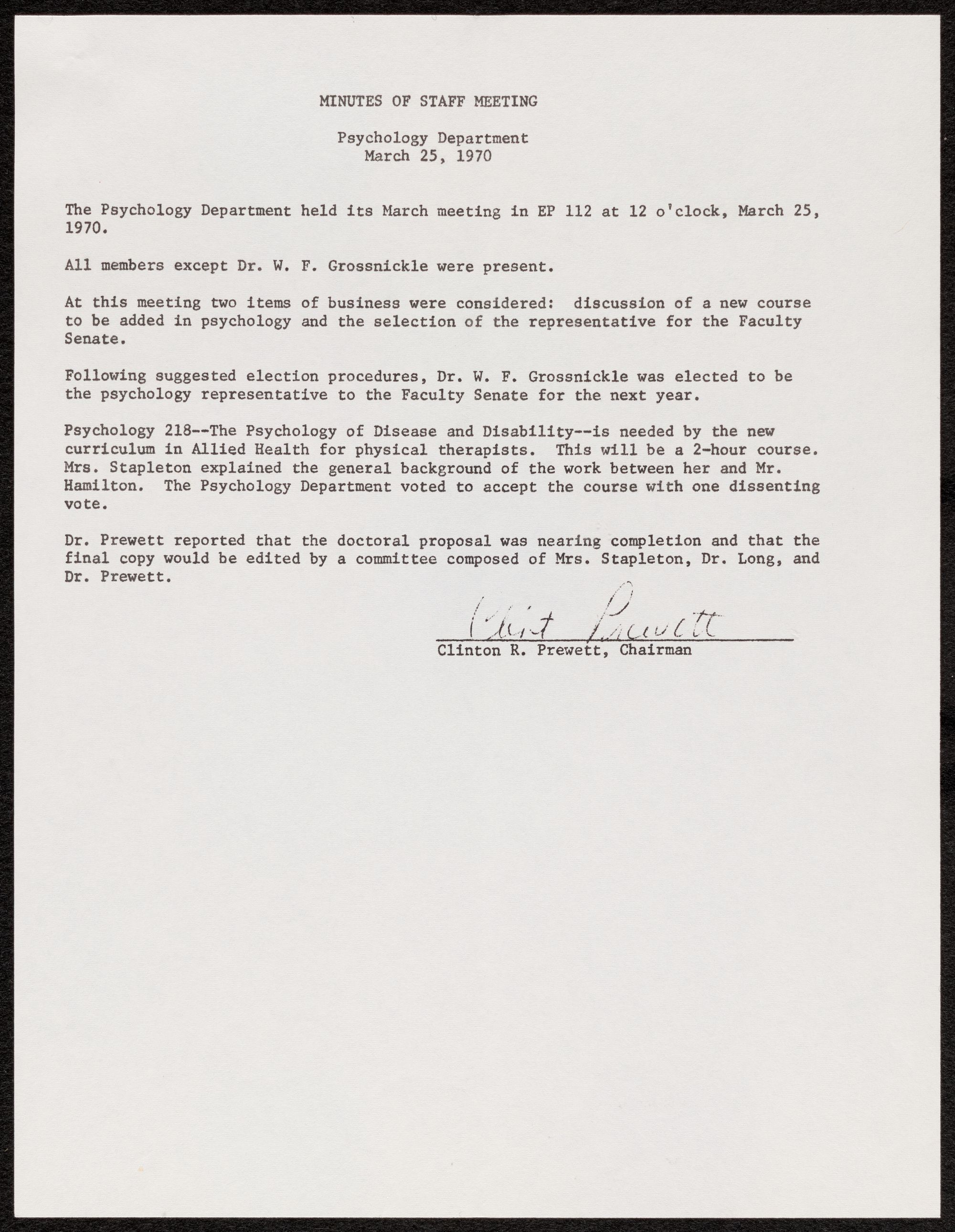 The Psychology Department held its March meeting in EP 112 at 12 o'clock, March 25,