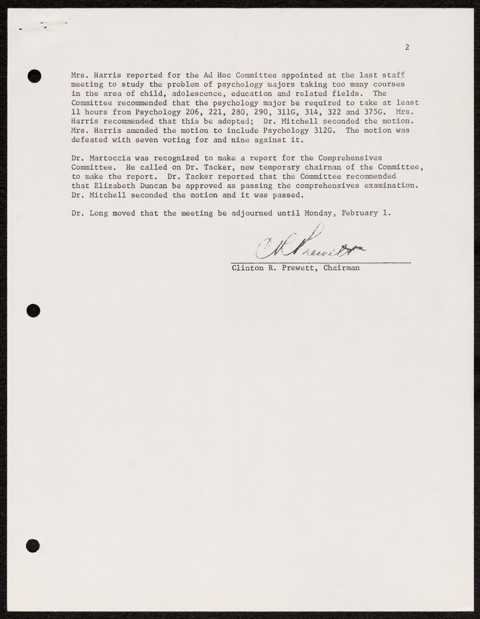 Dr. Long moved that the meeting be adjourned until Monday, February l.